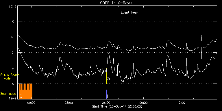 EIS Observation timeline overlay to GOES-Xray curve Code 1" 2" 40" 266" EIS Observations list for this event: STUDY ACRONYM ID DATE OBSERVED DESCRIPTION NOAA# TARGET 0 HH_Flare_raster_v6 | 43374 | 2014/10/20 23:03:14 | Flare study | | Flare TIMELINE ID DATE OBSERVED FITS FILE XCEN (+W/-E) YCEN (+N/-S) DUR ----------------------------------------------------------------------------------------------------------------- 43374 | 2014/10/20 23:03:14.000 | eis_l0_20141020_230314.fits.gz | -551.84 | -298.32 | 3m31s 43374 | 2014/10/20 23:06:48.000 | eis_l0_20141020_230648.fits.gz | -551.53 | -298.63 | 3m31s 43374 | 2014/10/20 23:10:22.000 | eis_l0_20141020_231022.fits.gz | -551.07 | -298.32 | 3m32s 43374 | 2014/10/20 23:13:57.000 | eis_l0_20141020_231357.fits.gz | -550.61 | -298.55 | 3m30s 43374 | 2014/10/20 23:17:30.000 | eis_l0_20141020_231730.fits.gz | -550.22 | -298.48 | 3m32s 43374 | 2014/10/20 23:21:04.000 | eis_l0_20141020_232104.fits.gz | -549.76 | -298.55 | 3m31s 43374 | 2014/10/20 23:24:38.000 | eis_l0_20141020_232438.fits.gz | -549.37 | -298.55 | 3m32s 43374 | 2014/10/20 23:28:13.000 | eis_l0_20141020_232813.fits.gz | -548.83 | -298.55 | 3m31s 43374 | 2014/10/20 23:31:47.000 | eis_l0_20141020_233147.fits.gz | -548.44 | -298.79 | 3m31s 43374 | 2014/10/20 23:35:21.000 | eis_l0_20141020_233521.fits.gz | -547.98 | -298.55 | 3m31s 43374 | 2014/10/20 23:38:55.000 | eis_l0_20141020_233855.fits.gz | -547.59 | -298.79 | 3m31s 43374 | 2014/10/20 23:42:29.000 | eis_l0_20141020_234229.fits.gz | -547.21 | -298.79 | 3m32s 43374 | 2014/10/20 23:46:03.000 | eis_l0_20141020_234603.fits.gz | -546.67 | -298.79 | 3m32s 43374 | 2014/10/20 23:49:38.000 | eis_l0_20141020_234938.fits.gz | -546.20 | -298.79 | 3m31s 43374 | 2014/10/20 23:53:12.000 | eis_l0_20141020_235312.fits.gz | -545.82 | -298.86 | 3m32s 43374 | 2014/10/20 23:56:47.000 | eis_l0_20141020_235647.fits.gz | -545.43 | -298.94 | 3m31s 43374 | 2014/10/21 00:00:20.000 | eis_l0_20141021_000020.fits.gz | -545.04 | -298.71 | 3m32s 1 PRY_slot_contextLITE | 43341 | 2014/10/21 05:58:50 | alignment | 2193 | Active Region TIMELINE ID DATE OBSERVED FITS FILE XCEN (+W/-E) YCEN (+N/-S) DUR ----------------------------------------------------------------------------------------------------------------- 43341 | 2014/10/21 05:58:50.000 | eis_l0_20141021_055850.fits.gz | -24.28 | -4.27 | 2m56s 2 Alignment_266 | 43342 | 2014/10/21 06:02:05 | alignment | | Quiet Sun TIMELINE ID DATE OBSERVED FITS FILE XCEN (+W/-E) YCEN (+N/-S) DUR ----------------------------------------------------------------------------------------------------------------- 43342 | 2014/10/21 06:02:05.000 | eis_l0_20141021_060205.fits.gz | -141.80 | -4.35 | 1m22s 3 XRT_synop_AIA | 43343 | 2014/10/21 06:04:39 | alignment | | Quiet Sun TIMELINE ID DATE OBSERVED FITS FILE XCEN (+W/-E) YCEN (+N/-S) DUR ----------------------------------------------------------------------------------------------------------------- 43343 | 2014/10/21 06:04:39.000 | eis_l0_20141021_060439.fits.gz | -141.72 | -4.50 | 10s : Check study information : Download file : View thumbnails For this event, also check for: