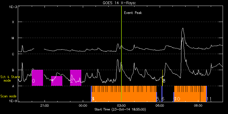 EIS Observation timeline overlay to GOES-Xray curve Code 1" 2" 40" 266" EIS Observations list for this event: STUDY ACRONYM ID DATE OBSERVED DESCRIPTION NOAA# TARGET 0 HPW002_QS_SAS_060m | 43409 | 2014/10/23 20:00:34 | EIS pole observation (north) | | Quiet Sun TIMELINE ID DATE OBSERVED FITS FILE XCEN (+W/-E) YCEN (+N/-S) DUR ----------------------------------------------------------------------------------------------------------------- 43409 | 2014/10/23 20:00:34.000 | eis_l0_20141023_200034.fits.gz | -9.88 | 1147.71 | 51m34s 1 HPW002_QS_SAS_060m | 43410 | 2014/10/23 21:30:14 | EIS pole observation (disc center) | | Quiet Sun TIMELINE ID DATE OBSERVED FITS FILE XCEN (+W/-E) YCEN (+N/-S) DUR ----------------------------------------------------------------------------------------------------------------- 43410 | 2014/10/23 21:30:14.000 | eis_l0_20141023_213014.fits.gz | -9.88 | 801.97 | 51m33s 2 HPW002_QS_SAS_060m | 43411 | 2014/10/23 23:00:13 | EIS pole observation (south) | | Quiet Sun TIMELINE ID DATE OBSERVED FITS FILE XCEN (+W/-E) YCEN (+N/-S) DUR ----------------------------------------------------------------------------------------------------------------- 43411 | 2014/10/23 23:00:13.000 | eis_l0_20141023_230013.fits.gz | -9.72 | -941.59 | 51m34s 3 PRY_slot_context_v3 | 43433 | 2014/10/24 00:37:33 | Flare study | 2192 | Active Region TIMELINE ID DATE OBSERVED FITS FILE XCEN (+W/-E) YCEN (+N/-S) DUR ----------------------------------------------------------------------------------------------------------------- 43433 | 2014/10/24 00:37:33.000 | eis_l0_20141024_003733.fits.gz | 40.96 | -341.92 | 2m57s 4 PRY_flare_2 | 43434 | 2014/10/24 00:40:55 | Flare study | 2192 | Flare TIMELINE ID DATE OBSERVED FITS FILE XCEN (+W/-E) YCEN (+N/-S) DUR ----------------------------------------------------------------------------------------------------------------- 43434 | 2014/10/24 00:40:55.000 | eis_l0_20141024_004055.fits.gz | 54.00 | -311.84 | 1m45s 43434 | 2014/10/24 00:42:43.000 | eis_l0_20141024_004243.fits.gz | 54.31 | -311.92 | 1m46s 43434 | 2014/10/24 00:44:31.000 | eis_l0_20141024_004431.fits.gz | 54.54 | -312.07 | 1m45s 43434 | 2014/10/24 00:46:19.000 | eis_l0_20141024_004619.fits.gz | 54.85 | -312.15 | 1m45s 43434 | 2014/10/24 00:48:07.000 | eis_l0_20141024_004807.fits.gz | 55.08 | -311.92 | 1m45s 43434 | 2014/10/24 00:49:55.000 | eis_l0_20141024_004955.fits.gz | 55.31 | -312.07 | 1m46s 43434 | 2014/10/24 00:51:43.000 | eis_l0_20141024_005143.fits.gz | 55.70 | -312.15 | 1m46s 43434 | 2014/10/24 00:53:32.000 | eis_l0_20141024_005332.fits.gz | 55.85 | -312.07 | 1m45s 43434 | 2014/10/24 00:55:20.000 | eis_l0_20141024_005520.fits.gz | 56.08 | -311.84 | 1m45s 43434 | 2014/10/24 00:57:08.000 | eis_l0_20141024_005708.fits.gz | 56.39 | -311.99 | 1m45s 43434 | 2014/10/24 00:58:56.000 | eis_l0_20141024_005856.fits.gz | 56.70 | -312.07 | 1m45s 43434 | 2014/10/24 01:00:44.000 | eis_l0_20141024_010044.fits.gz | 56.93 | -312.15 | 1m45s 43434 | 2014/10/24 01:02:32.000 | eis_l0_20141024_010232.fits.gz | 57.24 | -311.99 | 1m45s 43434 | 2014/10/24 01:04:20.000 | eis_l0_20141024_010420.fits.gz | 57.47 | -311.92 | 1m45s 43434 | 2014/10/24 01:06:08.000 | eis_l0_20141024_010608.fits.gz | 57.78 | -312.15 | 1m45s 43434 | 2014/10/24 01:07:56.000 | eis_l0_20141024_010756.fits.gz | 58.09 | -311.92 | 1m45s 43434 | 2014/10/24 01:09:44.000 | eis_l0_20141024_010944.fits.gz | 58.25 | -311.99 | 1m45s 43434 | 2014/10/24 01:11:32.000 | eis_l0_20141024_011132.fits.gz | 58.55 | -311.92 | 1m45s 43434 | 2014/10/24 01:13:20.000 | eis_l0_20141024_011320.fits.gz | 58.86 | -311.92 | 1m45s 43434 | 2014/10/24 01:15:07.000 | eis_l0_20141024_011507.fits.gz | 59.02 | -311.84 | 1m46s 43434 | 2014/10/24 01:16:56.000 | eis_l0_20141024_011656.fits.gz | 59.33 | -311.76 | 1m45s 43434 | 2014/10/24 01:18:44.000 | eis_l0_20141024_011844.fits.gz | 59.64 | -311.76 | 1m45s 43434 | 2014/10/24 01:20:32.000 | eis_l0_20141024_012032.fits.gz | 59.87 | -311.84 | 1m45s 43434 | 2014/10/24 01:22:20.000 | eis_l0_20141024_012220.fits.gz | 60.18 | -311.99 | 1m45s 43434 | 2014/10/24 01:24:08.000 | eis_l0_20141024_012408.fits.gz | 60.41 | -311.84 | 1m46s 43434 | 2014/10/24 01:25:56.000 | eis_l0_20141024_012556.fits.gz | 60.72 | -311.99 | 1m46s 43434 | 2014/10/24 01:27:45.000 | eis_l0_20141024_012745.fits.gz | 61.03 | -312.07 | 1m44s 43434 | 2014/10/24 01:29:32.000 | eis_l0_20141024_012932.fits.gz | 61.26 | -311.99 | 1m45s 43434 | 2014/10/24 01:31:20.000 | eis_l0_20141024_013120.fits.gz | 61.49 | -311.84 | 1m45s 43434 | 2014/10/24 01:33:08.000 | eis_l0_20141024_013308.fits.gz | 61.80 | -311.84 | 1m45s 43434 | 2014/10/24 01:34:56.000 | eis_l0_20141024_013456.fits.gz | 62.03 | -311.92 | 1m45s 43434 | 2014/10/24 01:36:44.000 | eis_l0_20141024_013644.fits.gz | 62.34 | -311.84 | 1m46s 43434 | 2014/10/24 01:38:32.000 | eis_l0_20141024_013832.fits.gz | 62.65 | -311.92 | 1m46s 43434 | 2014/10/24 01:40:20.000 | eis_l0_20141024_014020.fits.gz | 62.88 | -311.99 | 1m45s 43434 | 2014/10/24 01:42:08.000 | eis_l0_20141024_014208.fits.gz | 63.11 | -311.69 | 1m45s 43434 | 2014/10/24 01:43:56.000 | eis_l0_20141024_014356.fits.gz | 63.42 | -311.84 | 1m46s 43434 | 2014/10/24 01:45:44.000 | eis_l0_20141024_014544.fits.gz | 63.65 | -311.92 | 1m46s 43434 | 2014/10/24 01:47:33.000 | eis_l0_20141024_014733.fits.gz | 63.96 | -311.76 | 1m45s 43434 | 2014/10/24 01:49:20.000 | eis_l0_20141024_014920.fits.gz | 64.19 | -311.69 | 1m45s 43434 | 2014/10/24 01:51:08.000 | eis_l0_20141024_015108.fits.gz | 64.50 | -311.92 | 1m46s 43434 | 2014/10/24 01:52:56.000 | eis_l0_20141024_015256.fits.gz | 64.66 | -311.69 | 1m46s 43434 | 2014/10/24 01:54:44.000 | eis_l0_20141024_015444.fits.gz | 65.04 | -311.84 | 1m46s 43434 | 2014/10/24 01:56:33.000 | eis_l0_20141024_015633.fits.gz | 65.27 | -311.84 | 1m45s 43434 | 2014/10/24 01:58:21.000 | eis_l0_20141024_015821.fits.gz | 65.58 | -311.84 | 1m45s 43434 | 2014/10/24 02:00:08.000 | eis_l0_20141024_020008.fits.gz | 65.82 | -311.99 | 1m46s 43434 | 2014/10/2