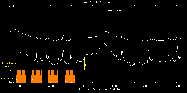 EIS Observation timeline overlay to GOES-Xray curve Code 1" 2" 40" 266" EIS Observations list for this event: STUDY ACRONYM ID DATE OBSERVED DESCRIPTION NOAA# TARGET 0 HH_Flare_raster_v6 | 43426 | 2014/10/24 23:41:12 | Flare study | | Flare TIMELINE ID DATE OBSERVED FITS FILE XCEN (+W/-E) YCEN (+N/-S) DUR ----------------------------------------------------------------------------------------------------------------- 43426 | 2014/10/24 23:41:12.000 | eis_l0_20141024_234112.fits.gz | 258.11 | -307.36 | 3m32s 43426 | 2014/10/24 23:44:47.000 | eis_l0_20141024_234447.fits.gz | 258.58 | -307.44 | 3m32s 43426 | 2014/10/24 23:48:21.000 | eis_l0_20141024_234821.fits.gz | 259.12 | -307.36 | 3m32s 43426 | 2014/10/24 23:51:56.000 | eis_l0_20141024_235156.fits.gz | 259.58 | -307.36 | 3m32s 43426 | 2014/10/24 23:55:31.000 | eis_l0_20141024_235531.fits.gz | 260.05 | -307.28 | 3m31s 43426 | 2014/10/24 23:59:05.000 | eis_l0_20141024_235905.fits.gz | 260.51 | -307.13 | 3m31s 43426 | 2014/10/25 00:02:39.000 | eis_l0_20141025_000239.fits.gz | 261.20 | -307.51 | 3m32s 43426 | 2014/10/25 00:06:13.000 | eis_l0_20141025_000613.fits.gz | 261.67 | -307.13 | 3m32s 43426 | 2014/10/25 00:09:48.000 | eis_l0_20141025_000948.fits.gz | 262.21 | -307.28 | 3m31s 43426 | 2014/10/25 00:13:22.000 | eis_l0_20141025_001322.fits.gz | 262.60 | -307.21 | 3m32s 43426 | 2014/10/25 00:16:57.000 | eis_l0_20141025_001657.fits.gz | 263.06 | -307.13 | 3m31s 43426 | 2014/10/25 00:20:31.000 | eis_l0_20141025_002031.fits.gz | 263.68 | -307.21 | 3m31s 43426 | 2014/10/25 00:24:05.000 | eis_l0_20141025_002405.fits.gz | 264.22 | -307.28 | 3m32s 43426 | 2014/10/25 00:27:40.000 | eis_l0_20141025_002740.fits.gz | 264.60 | -307.21 | 3m31s 43426 | 2014/10/25 00:31:14.000 | eis_l0_20141025_003114.fits.gz | 265.14 | -307.05 | 3m31s 43426 | 2014/10/25 00:34:48.000 | eis_l0_20141025_003448.fits.gz | 265.68 | -307.21 | 3m32s 43426 | 2014/10/25 00:38:23.000 | eis_l0_20141025_003823.fits.gz | 266.23 | -307.13 | 3m31s 1 HH_Flare_raster_v6 | 43427 | 2014/10/25 01:11:43 | Flare study | | Flare TIMELINE ID DATE OBSERVED FITS FILE XCEN (+W/-E) YCEN (+N/-S) DUR ----------------------------------------------------------------------------------------------------------------- 43427 | 2014/10/25 01:11:43.000 | eis_l0_20141025_011143.fits.gz | 270.94 | -306.82 | 3m31s 43427 | 2014/10/25 01:15:17.000 | eis_l0_20141025_011517.fits.gz | 271.48 | -306.82 | 3m32s 43427 | 2014/10/25 01:18:51.000 | eis_l0_20141025_011851.fits.gz | 271.94 | -306.90 | 3m31s 43427 | 2014/10/25 01:22:25.000 | eis_l0_20141025_012225.fits.gz | 272.56 | -306.82 | 3m32s 43427 | 2014/10/25 01:26:00.000 | eis_l0_20141025_012600.fits.gz | 272.95 | -306.74 | 3m31s 43427 | 2014/10/25 01:29:34.000 | eis_l0_20141025_012934.fits.gz | 273.56 | -306.82 | 3m32s 43427 | 2014/10/25 01:33:08.000 | eis_l0_20141025_013308.fits.gz | 274.03 | -306.90 | 3m31s 43427 | 2014/10/25 01:36:42.000 | eis_l0_20141025_013642.fits.gz | 274.49 | -307.05 | 3m32s 43427 | 2014/10/25 01:40:16.000 | eis_l0_20141025_014016.fits.gz | 274.95 | -306.67 | 3m32s 43427 | 2014/10/25 01:43:51.000 | eis_l0_20141025_014351.fits.gz | 275.49 | -306.82 | 3m31s 43427 | 2014/10/25 01:47:25.000 | eis_l0_20141025_014725.fits.gz | 276.04 | -306.90 | 3m32s 43427 | 2014/10/25 01:51:00.000 | eis_l0_20141025_015100.fits.gz | 276.50 | -306.74 | 3m31s 43427 | 2014/10/25 01:54:34.000 | eis_l0_20141025_015434.fits.gz | 277.04 | -306.67 | 3m32s 43427 | 2014/10/25 01:58:09.000 | eis_l0_20141025_015809.fits.gz | 277.58 | -306.67 | 3m31s 43427 | 2014/10/25 02:01:43.000 | eis_l0_20141025_020143.fits.gz | 278.12 | -306.74 | 3m31s 43427 | 2014/10/25 02:05:17.000 | eis_l0_20141025_020517.fits.gz | 278.66 | -306.67 | 3m31s 43427 | 2014/10/25 02:08:51.000 | eis_l0_20141025_020851.fits.gz | 279.05 | -306.59 | 3m32s 2 HH_Flare_raster_v6 | 43428 | 2014/10/25 02:48:12 | Flare study | | Flare TIMELINE ID DATE OBSERVED FITS FILE XCEN (+W/-E) YCEN (+N/-S) DUR ----------------------------------------------------------------------------------------------------------------- 43428 | 2014/10/25 02:48:12.000 | eis_l0_20141025_024812.fits.gz | 276.70 | -306.51 | 3m32s 43428 | 2014/10/25 02:51:47.000 | eis_l0_20141025_025147.fits.gz | 277.16 | -306.20 | 3m31s 43428 | 2014/10/25 02:55:21.000 | eis_l0_20141025_025521.fits.gz | 277.70 | -306.43 | 3m31s 43428 | 2014/10/25 02:58:54.000 | eis_l0_20141025_025854.fits.gz | 278.17 | -306.28 | 3m31s 43428 | 2014/10/25 03:02:28.000 | eis_l0_20141025_030228.fits.gz | 278.71 | -306.20 | 3m32s 43428 | 2014/10/25 03:06:03.000 | eis_l0_20141025_030603.fits.gz | 279.33 | -306.36 | 3m31s 43428 | 2014/10/25 03:09:37.000 | eis_l0_20141025_030937.fits.gz | 279.79 | -306.20 | 3m31s 43428 | 2014/10/25 03:13:11.000 | eis_l0_20141025_031311.fits.gz | 280.18 | -306.20 | 3m32s 43428 | 2014/10/25 03:16:46.000 | eis_l0_20141025_031646.fits.gz | 280.72 | -306.28 | 3m31s 43428 | 2014/10/25 03:20:20.000 | eis_l0_20141025_032020.fits.gz | 281.26 | -306.43 | 3m31s 43428 | 2014/10/25 03:23:54.000 | eis_l0_20141025_032354.fits.gz | 281.72 | -306.28 | 3m31s 43428 | 2014/10/25 03:27:28.000 | eis_l0_20141025_032728.fits.gz | 282.26 | -306.28 | 3m31s 43428 | 2014/10/25 03:31:02.000 | eis_l0_20141025_033102.fits.gz | 282.73 | -306.12 | 3m31s 43428 | 2014/10/25 03:34:36.000 | eis_l0_20141025_033436.fits.gz | 283.27 | -306.05 | 3m32s 43428 | 2014/10/25 03:38:11.000 | eis_l0_20141025_033811.fits.gz | 283.81 | -306.28 | 3m31s 3 HH_Flare_raster_v6 | 43429 | 2014/10/25 04:25:42 | Flare study | | Flare TIMELINE ID DATE OBSERVED FITS FILE XCEN (+W/-E) YCEN (+N/-S) DUR ----------------------------------------------------------------------------------------------------------------- 43429 | 2014/10/25 04:25:42.000 | eis_l0_20141025_042542.fits.gz | 298.44 | -305.89 | 3m32s 43429 | 2014/10/25 04:29:16.000 | eis_l0_20141025_042916.fits.gz | 298.90 | -305.89 | 3m32s 43429 | 2014/10/25 04:32:51.000 | eis_l0_20141025_043251.fits.gz | 299.44 | -305.89 | 3m32s 43429 | 2014/10/25 04:36:26.00