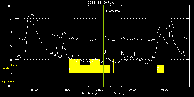EIS Observation timeline overlay to GOES-Xray curve Code 1" 2" 40" 266" EIS Observations list for this event: STUDY ACRONYM ID DATE OBSERVED DESCRIPTION NOAA# TARGET 0 Flare266_Hunter02 | 43477 | 2014/10/27 18:13:33 | Major Flare Watch observation | 2192 | Flare TIMELINE ID DATE OBSERVED FITS FILE XCEN (+W/-E) YCEN (+N/-S) DUR ----------------------------------------------------------------------------------------------------------------- 43477 | 2014/10/27 18:13:33.000 | eis_l0_20141027_181333.fits.gz | 616.43 | -300.53 | 55m49s 43477 | 2014/10/27 19:09:49.000 | eis_l0_20141027_190949.fits.gz | 621.22 | -299.91 | 55m49s 43477 | 2014/10/27 20:06:05.000 | eis_l0_20141027_200605.fits.gz | 626.16 | -299.29 | 55m50s 43477 | 2014/10/27 21:02:21.000 | eis_l0_20141027_210221.fits.gz | 631.03 | -298.68 | 55m50s 1 Flare266_Hunter02 | 43478 | 2014/10/27 22:14:02 | Major Flare Watch observation | 2192 | Flare TIMELINE ID DATE OBSERVED FITS FILE XCEN (+W/-E) YCEN (+N/-S) DUR ----------------------------------------------------------------------------------------------------------------- 43478 | 2014/10/27 22:14:02.000 | eis_l0_20141027_221402.fits.gz | 637.13 | -297.98 | 5m20s 2 Flare266_Hunter02 | 43479 | 2014/10/28 02:15:12 | Major Flare Watch observation | | Flare TIMELINE ID DATE OBSERVED FITS FILE XCEN (+W/-E) YCEN (+N/-S) DUR ----------------------------------------------------------------------------------------------------------------- 43479 | 2014/10/28 02:15:12.000 | eis_l0_20141028_021512.fits.gz | 656.98 | -295.35 | 39m : Check study information : Download file : View thumbnails For this event, also check for: