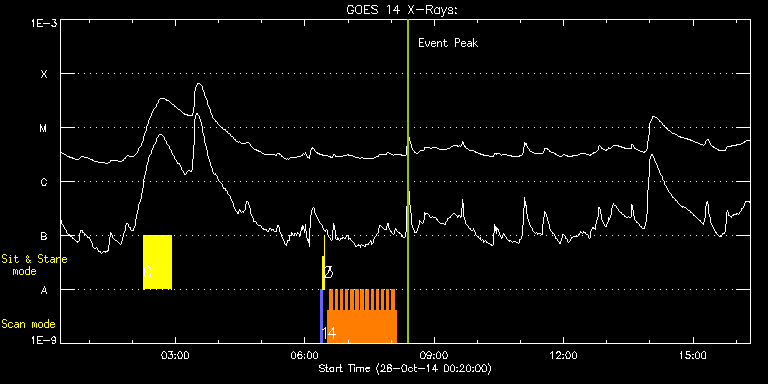 EIS Observation timeline overlay to GOES-Xray curve Code 1" 2" 40" 266" EIS Observations list for this event: STUDY ACRONYM ID DATE OBSERVED DESCRIPTION NOAA# TARGET 0 Flare266_Hunter02 | 43479 | 2014/10/28 02:15:12 | Major Flare Watch observation | | Flare TIMELINE ID DATE OBSERVED FITS FILE XCEN (+W/-E) YCEN (+N/-S) DUR ----------------------------------------------------------------------------------------------------------------- 43479 | 2014/10/28 02:15:12.000 | eis_l0_20141028_021512.fits.gz | 656.98 | -295.35 | 39m 1 PRY_slot_contextLITE | 43443 | 2014/10/28 06:21:18 | alignment | 2195 | Active Region TIMELINE ID DATE OBSERVED FITS FILE XCEN (+W/-E) YCEN (+N/-S) DUR ----------------------------------------------------------------------------------------------------------------- 43443 | 2014/10/28 06:21:18.000 | eis_l0_20141028_062118.fits.gz | -25.02 | -3.58 | 2m57s 2 Alignment_266 | 43444 | 2014/10/28 06:24:33 | alignment | 2195 | Quiet Sun TIMELINE ID DATE OBSERVED FITS FILE XCEN (+W/-E) YCEN (+N/-S) DUR ----------------------------------------------------------------------------------------------------------------- 43444 | 2014/10/28 06:24:33.000 | eis_l0_20141028_062433.fits.gz | -142.47 | -3.50 | 1m22s 3 XRT_synop_AIA | 43445 | 2014/10/28 06:27:07 | alignment | 2195 | Quiet Sun TIMELINE ID DATE OBSERVED FITS FILE XCEN (+W/-E) YCEN (+N/-S) DUR ----------------------------------------------------------------------------------------------------------------- 43445 | 2014/10/28 06:27:07.000 | eis_l0_20141028_062707.fits.gz | -142.47 | -3.35 | 10s 4 HH_Flare_raster_v6 | 43481 | 2014/10/28 06:31:19 | Major Flare Watch observation | 2192 | Flare TIMELINE ID DATE OBSERVED FITS FILE XCEN (+W/-E) YCEN (+N/-S) DUR ----------------------------------------------------------------------------------------------------------------- 43481 | 2014/10/28 06:31:19.000 | eis_l0_20141028_063119.fits.gz | 820.93 | -280.34 | 3m31s 43481 | 2014/10/28 06:34:53.000 | eis_l0_20141028_063453.fits.gz | 821.16 | -280.26 | 3m31s 43481 | 2014/10/28 06:38:27.000 | eis_l0_20141028_063827.fits.gz | 821.31 | -280.19 | 3m31s 43481 | 2014/10/28 06:42:01.000 | eis_l0_20141028_064201.fits.gz | 821.62 | -280.19 | 3m32s 43481 | 2014/10/28 06:45:36.000 | eis_l0_20141028_064536.fits.gz | 821.93 | -280.26 | 3m31s 43481 | 2014/10/28 06:49:10.000 | eis_l0_20141028_064910.fits.gz | 822.16 | -280.19 | 3m31s 43481 | 2014/10/28 06:52:44.000 | eis_l0_20141028_065244.fits.gz | 822.47 | -280.03 | 3m32s 43481 | 2014/10/28 06:56:18.000 | eis_l0_20141028_065618.fits.gz | 822.62 | -280.03 | 3m32s 43481 | 2014/10/28 06:59:53.000 | eis_l0_20141028_065953.fits.gz | 823.01 | -280.03 | 3m31s 43481 | 2014/10/28 07:03:27.000 | eis_l0_20141028_070327.fits.gz | 823.24 | -279.95 | 3m32s 43481 | 2014/10/28 07:07:01.000 | eis_l0_20141028_070701.fits.gz | 823.55 | -279.95 | 3m32s 43481 | 2014/10/28 07:10:36.000 | eis_l0_20141028_071036.fits.gz | 823.78 | -279.88 | 3m31s 43481 | 2014/10/28 07:14:09.000 | eis_l0_20141028_071409.fits.gz | 824.02 | -279.88 | 3m32s 43481 | 2014/10/28 07:17:43.000 | eis_l0_20141028_071743.fits.gz | 824.33 | -279.80 | 3m32s 43481 | 2014/10/28 07:21:17.000 | eis_l0_20141028_072117.fits.gz | 824.56 | -279.80 | 3m32s 43481 | 2014/10/28 07:24:52.000 | eis_l0_20141028_072452.fits.gz | 824.79 | -279.80 | 3m31s 43481 | 2014/10/28 07:28:26.000 | eis_l0_20141028_072826.fits.gz | 825.02 | -279.65 | 3m31s 43481 | 2014/10/28 07:32:00.000 | eis_l0_20141028_073200.fits.gz | 825.33 | -279.80 | 3m32s 43481 | 2014/10/28 07:35:35.000 | eis_l0_20141028_073535.fits.gz | 825.56 | -279.72 | 3m31s 43481 | 2014/10/28 07:39:09.000 | eis_l0_20141028_073909.fits.gz | 825.87 | -279.49 | 3m32s 43481 | 2014/10/28 07:42:43.000 | eis_l0_20141028_074243.fits.gz | 826.10 | -279.57 | 3m32s 43481 | 2014/10/28 07:46:18.000 | eis_l0_20141028_074618.fits.gz | 826.33 | -279.57 | 3m31s 43481 | 2014/10/28 07:49:52.000 | eis_l0_20141028_074952.fits.gz | 826.64 | -279.42 | 3m32s 43481 | 2014/10/28 07:53:27.000 | eis_l0_20141028_075327.fits.gz | 826.87 | -279.34 | 3m30s 43481 | 2014/10/28 07:57:00.000 | eis_l0_20141028_075700.fits.gz | 827.11 | -279.26 | 3m32s 43481 | 2014/10/28 08:00:35.000 | eis_l0_20141028_080035.fits.gz | 827.34 | -279.26 | 3m31s 43481 | 2014/10/28 08:04:09.000 | eis_l0_20141028_080409.fits.gz | 827.72 | -279.34 | 3m31s : Check study information : Download file : View thumbnails For this event, also check for:
