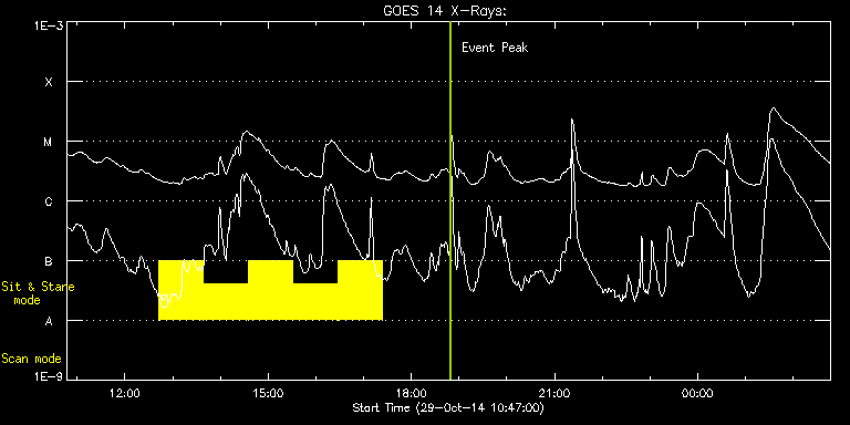 EIS Observation timeline overlay to GOES-Xray curve Code 1" 2" 40" 266" EIS Observations list for this event: STUDY ACRONYM ID DATE OBSERVED DESCRIPTION NOAA# TARGET 0 Flare266_Hunter02 | 43518 | 2014/10/29 12:42:34 | Joint IRIS/Hinode observations of post | | Flare TIMELINE ID DATE OBSERVED FITS FILE XCEN (+W/-E) YCEN (+N/-S) DUR ----------------------------------------------------------------------------------------------------------------- 43518 | 2014/10/29 12:42:34.000 | eis_l0_20141029_124234.fits.gz | 756.32 | -275.42 | 55m49s 43518 | 2014/10/29 13:38:49.000 | eis_l0_20141029_133849.fits.gz | 756.40 | -275.50 | 55m50s 43518 | 2014/10/29 14:35:05.000 | eis_l0_20141029_143505.fits.gz | 756.32 | -275.42 | 55m49s 43518 | 2014/10/29 15:31:21.000 | eis_l0_20141029_153121.fits.gz | 756.32 | -275.58 | 55m49s 43518 | 2014/10/29 16:27:37.000 | eis_l0_20141029_162737.fits.gz | 756.25 | -275.35 | 55m49s : Check study information : Download file : View thumbnails For this event, also check for: