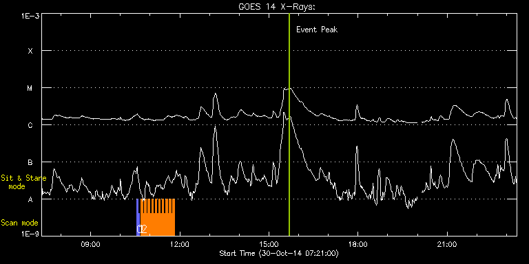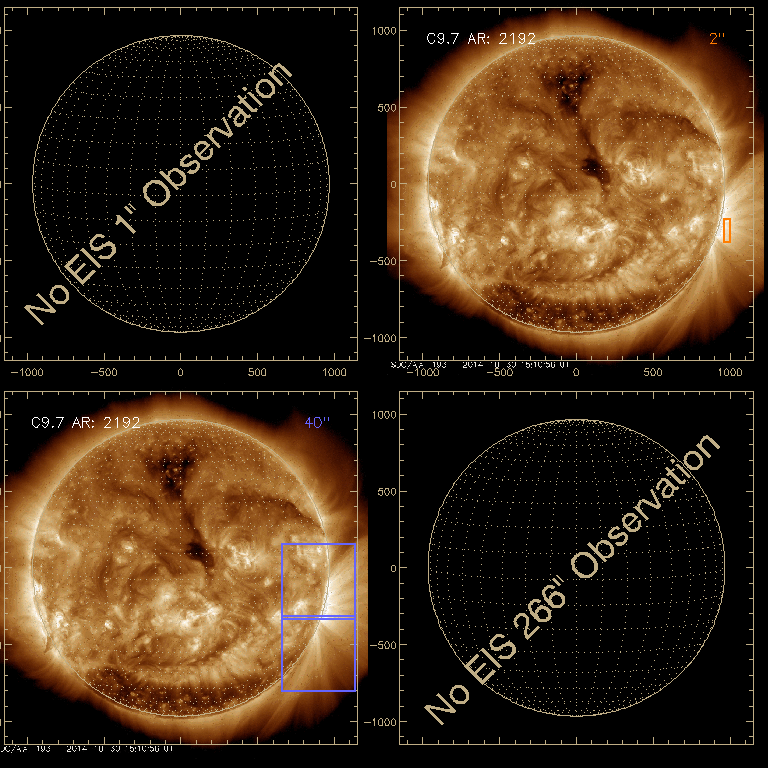 EIS Observation timeline overlay to GOES-Xray curve Code 1" 2" 40" 266" EIS Observations list for this event: STUDY ACRONYM ID DATE OBSERVED DESCRIPTION NOAA# TARGET 0 PRY_slot_context_v3 | 43527 | 2014/10/30 10:32:21 | Context for publicity purposes | 2192 | Active Region TIMELINE ID DATE OBSERVED FITS FILE XCEN (+W/-E) YCEN (+N/-S) DUR ----------------------------------------------------------------------------------------------------------------- 43527 | 2014/10/30 10:32:21.000 | eis_l0_20141030_103221.fits.gz | 899.56 | -93.58 | 2m57s 1 PRY_slot_context_v3 | 43528 | 2014/10/30 10:35:23 | Context for publicity purposes | | Active Region TIMELINE ID DATE OBSERVED FITS FILE XCEN (+W/-E) YCEN (+N/-S) DUR ----------------------------------------------------------------------------------------------------------------- 43528 | 2014/10/30 10:35:23.000 | eis_l0_20141030_103523.fits.gz | 899.56 | -563.50 | 2m56s 2 HH_Flare_raster_v6 | 43529 | 2014/10/30 10:41:34 | Major Flare Watch observation | | Flare TIMELINE ID DATE OBSERVED FITS FILE XCEN (+W/-E) YCEN (+N/-S) DUR ----------------------------------------------------------------------------------------------------------------- 43529 | 2014/10/30 10:41:34.000 | eis_l0_20141030_104134.fits.gz | 984.43 | -307.42 | 3m31s 43529 | 2014/10/30 10:45:08.000 | eis_l0_20141030_104508.fits.gz | 984.43 | -307.42 | 3m31s 43529 | 2014/10/30 10:48:42.000 | eis_l0_20141030_104842.fits.gz | 984.43 | -307.42 | 3m32s 43529 | 2014/10/30 10:52:17.000 | eis_l0_20141030_105217.fits.gz | 984.36 | -307.42 | 3m31s 43529 | 2014/10/30 10:55:51.000 | eis_l0_20141030_105551.fits.gz | 984.43 | -307.58 | 3m31s 43529 | 2014/10/30 10:59:25.000 | eis_l0_20141030_105925.fits.gz | 984.36 | -307.42 | 3m31s 43529 | 2014/10/30 11:02:59.000 | eis_l0_20141030_110259.fits.gz | 984.51 | -307.50 | 3m32s 43529 | 2014/10/30 11:06:34.000 | eis_l0_20141030_110634.fits.gz | 984.36 | -307.42 | 3m31s 43529 | 2014/10/30 11:10:08.000 | eis_l0_20141030_111008.fits.gz | 984.43 | -307.58 | 3m32s 43529 | 2014/10/30 11:13:43.000 | eis_l0_20141030_111343.fits.gz | 984.43 | -307.42 | 3m31s 43529 | 2014/10/30 11:17:16.000 | eis_l0_20141030_111716.fits.gz | 984.43 | -307.42 | 3m31s 43529 | 2014/10/30 11:20:50.000 | eis_l0_20141030_112050.fits.gz | 984.51 | -307.42 | 3m32s 43529 | 2014/10/30 11:24:25.000 | eis_l0_20141030_112425.fits.gz | 984.36 | -307.66 | 3m31s 43529 | 2014/10/30 11:27:59.000 | eis_l0_20141030_112759.fits.gz | 984.43 | -307.42 | 3m32s 43529 | 2014/10/30 11:31:34.000 | eis_l0_20141030_113134.fits.gz | 984.36 | -307.42 | 3m32s 43529 | 2014/10/30 11:35:08.000 | eis_l0_20141030_113508.fits.gz | 984.43 | -307.50 | 3m32s 43529 | 2014/10/30 11:38:43.000 | eis_l0_20141030_113843.fits.gz | 984.43 | -307.50 | 3m31s 43529 | 2014/10/30 11:42:17.000 | eis_l0_20141030_114217.fits.gz | 984.43 | -307.42 | 3m31s 43529 | 2014/10/30 11:45:51.000 | eis_l0_20141030_114551.fits.gz | 984.43 | -307.50 | 3m32s : Check study information : Download file : View thumbnails For this event, also check for: