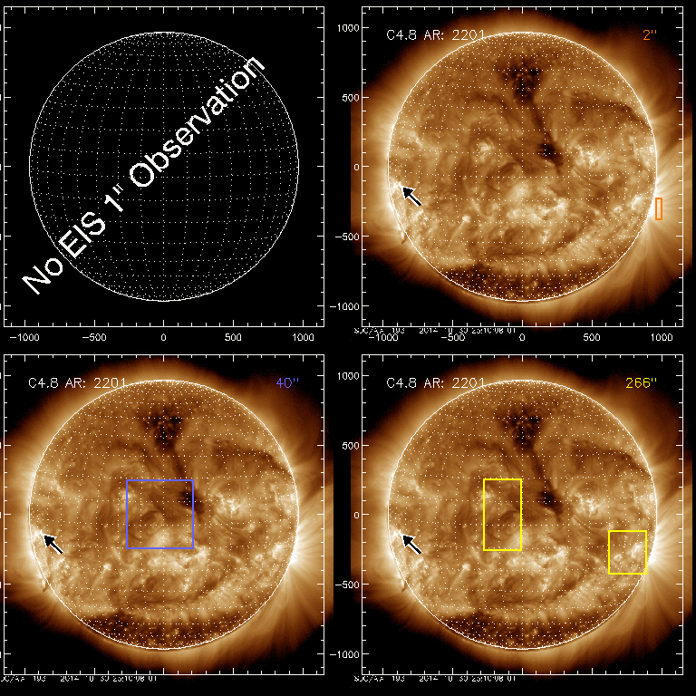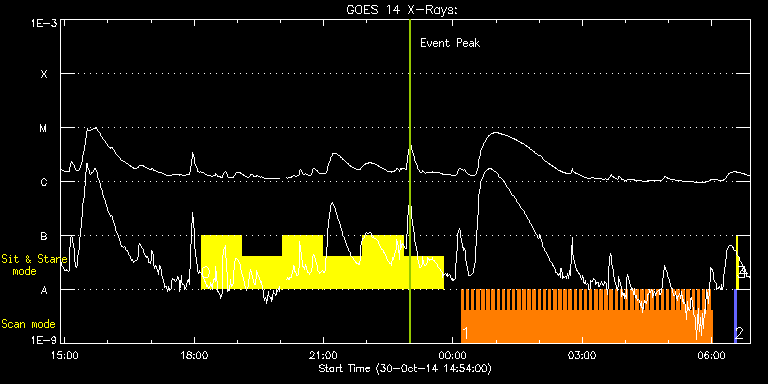 EIS Observation timeline overlay to GOES-Xray curve Code 1" 2" 40" 266" EIS Observations list for this event: STUDY ACRONYM ID DATE OBSERVED DESCRIPTION NOAA# TARGET 0 Flare266_Hunter02 | 43546 | 2014/10/30 18:09:41 | Major Flare Watch observation | 2194 | Flare TIMELINE ID DATE OBSERVED FITS FILE XCEN (+W/-E) YCEN (+N/-S) DUR ----------------------------------------------------------------------------------------------------------------- 43546 | 2014/10/30 18:09:41.000 | eis_l0_20141030_180941.fits.gz | 756.32 | -275.50 | 55m51s 43546 | 2014/10/30 19:05:58.000 | eis_l0_20141030_190558.fits.gz | 756.32 | -275.58 | 55m50s 43546 | 2014/10/30 20:02:15.000 | eis_l0_20141030_200215.fits.gz | 756.25 | -275.35 | 55m49s 43546 | 2014/10/30 20:58:31.000 | eis_l0_20141030_205831.fits.gz | 756.32 | -275.58 | 55m49s 43546 | 2014/10/30 21:54:46.000 | eis_l0_20141030_215446.fits.gz | 756.25 | -275.58 | 55m49s 43546 | 2014/10/30 22:51:02.000 | eis_l0_20141030_225102.fits.gz | 756.25 | -275.50 | 55m49s 1 HH_Flare_raster_v6 | 43533 | 2014/10/31 00:11:20 | Major Flare Watch observation | | Flare TIMELINE ID DATE OBSERVED FITS FILE XCEN (+W/-E) YCEN (+N/-S) DUR ----------------------------------------------------------------------------------------------------------------- 43533 | 2014/10/31 00:11:20.000 | eis_l0_20141031_001120.fits.gz | 984.36 | -307.66 | 3m31s 43533 | 2014/10/31 00:14:54.000 | eis_l0_20141031_001454.fits.gz | 984.43 | -307.42 | 3m31s 43533 | 2014/10/31 00:18:28.000 | eis_l0_20141031_001828.fits.gz | 984.36 | -307.42 | 3m32s 43533 | 2014/10/31 00:22:03.000 | eis_l0_20141031_002203.fits.gz | 984.43 | -307.42 | 3m31s 43533 | 2014/10/31 00:25:37.000 | eis_l0_20141031_002537.fits.gz | 984.36 | -307.35 | 3m31s 43533 | 2014/10/31 00:29:11.000 | eis_l0_20141031_002911.fits.gz | 984.43 | -307.42 | 3m31s 43533 | 2014/10/31 00:32:45.000 | eis_l0_20141031_003245.fits.gz | 984.43 | -307.42 | 3m31s 43533 | 2014/10/31 00:36:19.000 | eis_l0_20141031_003619.fits.gz | 984.36 | -307.35 | 3m32s 43533 | 2014/10/31 00:39:53.000 | eis_l0_20141031_003953.fits.gz | 984.43 | -307.35 | 3m31s 43533 | 2014/10/31 00:43:27.000 | eis_l0_20141031_004327.fits.gz | 984.36 | -307.35 | 3m31s 43533 | 2014/10/31 00:47:01.000 | eis_l0_20141031_004701.fits.gz | 984.43 | -307.42 | 3m32s 43533 | 2014/10/31 00:50:35.000 | eis_l0_20141031_005035.fits.gz | 984.43 | -307.50 | 3m32s 43533 | 2014/10/31 00:54:10.000 | eis_l0_20141031_005410.fits.gz | 984.43 | -307.50 | 3m32s 43533 | 2014/10/31 00:57:45.000 | eis_l0_20141031_005745.fits.gz | 984.43 | -307.50 | 3m32s 43533 | 2014/10/31 01:01:20.000 | eis_l0_20141031_010120.fits.gz | 984.43 | -307.42 | 3m31s 43533 | 2014/10/31 01:04:54.000 | eis_l0_20141031_010454.fits.gz | 984.36 | -307.50 | 3m32s 43533 | 2014/10/31 01:08:28.000 | eis_l0_20141031_010828.fits.gz | 984.43 | -307.42 | 3m32s 43533 | 2014/10/31 01:12:02.000 | eis_l0_20141031_011202.fits.gz | 984.36 | -307.35 | 3m31s 43533 | 2014/10/31 01:15:36.000 | eis_l0_20141031_011536.fits.gz | 984.43 | -307.35 | 3m31s 43533 | 2014/10/31 01:19:10.000 | eis_l0_20141031_011910.fits.gz | 984.43 | -307.42 | 3m32s 43533 | 2014/10/31 01:22:45.000 | eis_l0_20141031_012245.fits.gz | 984.43 | -307.27 | 3m31s 43533 | 2014/10/31 01:26:19.000 | eis_l0_20141031_012619.fits.gz | 984.43 | -307.50 | 3m31s 43533 | 2014/10/31 01:29:53.000 | eis_l0_20141031_012953.fits.gz | 984.51 | -307.58 | 3m31s 43533 | 2014/10/31 01:33:26.000 | eis_l0_20141031_013326.fits.gz | 984.36 | -307.42 | 3m32s 43533 | 2014/10/31 01:37:01.000 | eis_l0_20141031_013701.fits.gz | 984.36 | -307.66 | 3m32s 43533 | 2014/10/31 01:40:35.000 | eis_l0_20141031_014035.fits.gz | 984.36 | -307.50 | 3m32s 43533 | 2014/10/31 01:44:10.000 | eis_l0_20141031_014410.fits.gz | 984.43 | -307.50 | 3m31s 43533 | 2014/10/31 01:47:44.000 | eis_l0_20141031_014744.fits.gz | 984.43 | -307.35 | 3m31s 43533 | 2014/10/31 01:51:18.000 | eis_l0_20141031_015118.fits.gz | 984.43 | -307.58 | 3m31s 43533 | 2014/10/31 01:54:52.000 | eis_l0_20141031_015452.fits.gz | 984.36 | -307.58 | 3m32s 43533 | 2014/10/31 01:58:27.000 | eis_l0_20141031_015827.fits.gz | 984.36 | -307.42 | 3m31s 43533 | 2014/10/31 02:02:01.000 | eis_l0_20141031_020201.fits.gz | 984.43 | -307.42 | 3m32s 43533 | 2014/10/31 02:05:36.000 | eis_l0_20141031_020536.fits.gz | 984.43 | -307.50 | 3m31s 43533 | 2014/10/31 02:09:10.000 | eis_l0_20141031_020910.fits.gz | 984.43 | -307.42 | 3m31s 43533 | 2014/10/31 02:12:44.000 | eis_l0_20141031_021244.fits.gz | 984.51 | -307.42 | 3m31s 43533 | 2014/10/31 02:16:18.000 | eis_l0_20141031_021618.fits.gz | 984.36 | -307.35 | 3m32s 43533 | 2014/10/31 02:19:53.000 | eis_l0_20141031_021953.fits.gz | 984.36 | -307.42 | 3m31s 43533 | 2014/10/31 02:23:27.000 | eis_l0_20141031_022327.fits.gz | 984.36 | -307.50 | 3m32s 43533 | 2014/10/31 02:27:02.000 | eis_l0_20141031_022702.fits.gz | 984.51 | -307.42 | 3m31s 43533 | 2014/10/31 02:30:36.000 | eis_l0_20141031_023036.fits.gz | 984.43 | -307.50 | 3m31s 43533 | 2014/10/31 02:34:10.000 | eis_l0_20141031_023410.fits.gz | 984.43 | -307.42 | 3m31s 43533 | 2014/10/31 02:37:44.000 | eis_l0_20141031_023744.fits.gz | 984.43 | -307.50 | 3m32s 43533 | 2014/10/31 02:41:18.000 | eis_l0_20141031_024118.fits.gz | 984.36 | -307.50 | 3m32s 43533 | 2014/10/31 02:44:53.000 | eis_l0_20141031_024453.fits.gz | 984.43 | -307.50 | 3m31s 43533 | 2014/10/31 02:48:27.000 | eis_l0_20141031_024827.fits.gz | 984.43 | -307.58 | 3m32s 43533 | 2014/10/31 02:52:02.000 | eis_l0_20141031_025202.fits.gz | 984.51 | -307.66 | 3m31s 43533 | 2014/10/31 02:55:36.000 | eis_l0_20141031_025536.fits.gz | 984.36 | -307.58 | 3m31s 43533 | 2014/10/31 02:59:10.000 | eis_l0_20141031_025910.fits.gz | 984.36 | -307.35 | 3m32s 43533 | 2014/10/31 03:02:44.000 | eis_l0_20141031_030244.fits.gz | 984.43 | -307.42 | 3m31s 43533 | 2014/10/31 03:06:18.000 | eis_l0_20141031_030618.fits.gz | 984.43 | -307.42 | 3m31s 43533 | 2014/10/31 03:09:52.000 | eis_l0_20141031_030952.fits.gz | 984.43 | -307.42 | 3m31s 43533 | 2014/10/31 03:13:26.000 | 