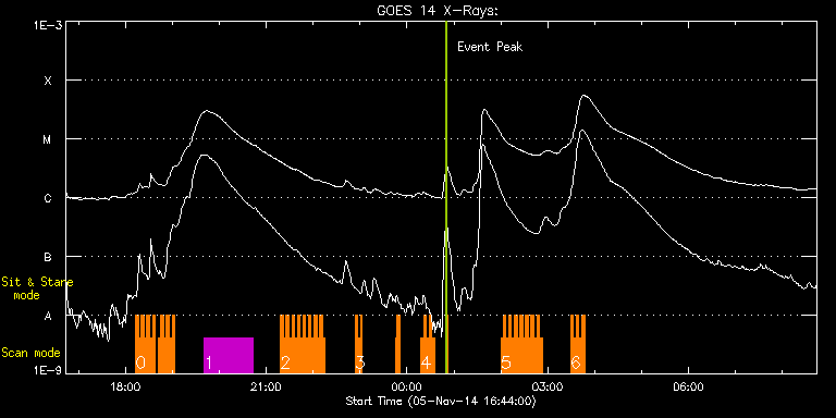 EIS Observation timeline overlay to GOES-Xray curve Code 1" 2" 40" 266" EIS Observations list for this event: STUDY ACRONYM ID DATE OBSERVED DESCRIPTION NOAA# TARGET 0 HH_Flare_raster_v6 | 43654 | 2014/11/05 18:13:15 | flare study | 2205 | Flare TIMELINE ID DATE OBSERVED FITS FILE XCEN (+W/-E) YCEN (+N/-S) DUR ----------------------------------------------------------------------------------------------------------------- 43654 | 2014/11/05 18:13:15.000 | eis_l0_20141105_181315.fits.gz | -852.81 | 233.55 | 3m31s 43654 | 2014/11/05 18:16:49.000 | eis_l0_20141105_181649.fits.gz | -852.42 | 233.63 | 3m31s 43654 | 2014/11/05 18:20:23.000 | eis_l0_20141105_182023.fits.gz | -852.19 | 233.55 | 3m32s 43654 | 2014/11/05 18:23:58.000 | eis_l0_20141105_182358.fits.gz | -851.88 | 233.71 | 3m31s 43654 | 2014/11/05 18:27:32.000 | eis_l0_20141105_182732.fits.gz | -851.57 | 233.48 | 3m31s 43654 | 2014/11/05 18:31:06.000 | eis_l0_20141105_183106.fits.gz | -851.34 | 233.55 | 3m32s 43654 | 2014/11/05 18:34:40.000 | eis_l0_20141105_183440.fits.gz | -851.03 | 233.55 | 3m32s 43654 | 2014/11/05 18:41:49.000 | eis_l0_20141105_184149.fits.gz | -850.49 | 233.55 | 3m32s 43654 | 2014/11/05 18:45:23.000 | eis_l0_20141105_184523.fits.gz | -850.18 | 233.40 | 3m32s 43654 | 2014/11/05 18:48:58.000 | eis_l0_20141105_184858.fits.gz | -849.87 | 233.40 | 3m32s 43654 | 2014/11/05 18:52:33.000 | eis_l0_20141105_185233.fits.gz | -849.64 | 233.24 | 3m31s 43654 | 2014/11/05 18:56:07.000 | eis_l0_20141105_185607.fits.gz | -849.41 | 233.48 | 3m32s 43654 | 2014/11/05 18:59:42.000 | eis_l0_20141105_185942.fits.gz | -849.10 | 233.24 | 3m31s 1 HPW021_VEL_120x512v1 | 43655 | 2014/11/05 19:40:56 | Flare study | 2205 | Active Region TIMELINE ID DATE OBSERVED FITS FILE XCEN (+W/-E) YCEN (+N/-S) DUR ----------------------------------------------------------------------------------------------------------------- 43655 | 2014/11/05 19:40:56.000 | eis_l0_20141105_194056.fits.gz | -827.07 | 92.78 | 1h1m52s 2 HH_Flare_raster_v6 | 43656 | 2014/11/05 21:18:26 | flare study | 2205 | Flare TIMELINE ID DATE OBSERVED FITS FILE XCEN (+W/-E) YCEN (+N/-S) DUR ----------------------------------------------------------------------------------------------------------------- 43656 | 2014/11/05 21:18:26.000 | eis_l0_20141105_211826.fits.gz | -838.05 | 232.47 | 3m32s 43656 | 2014/11/05 21:22:00.000 | eis_l0_20141105_212200.fits.gz | -837.67 | 232.09 | 3m31s 43656 | 2014/11/05 21:25:34.000 | eis_l0_20141105_212534.fits.gz | -837.44 | 232.24 | 3m32s 43656 | 2014/11/05 21:29:09.000 | eis_l0_20141105_212909.fits.gz | -837.13 | 232.16 | 3m31s 43656 | 2014/11/05 21:32:43.000 | eis_l0_20141105_213243.fits.gz | -836.82 | 232.01 | 3m31s 43656 | 2014/11/05 21:36:17.000 | eis_l0_20141105_213617.fits.gz | -836.51 | 231.93 | 3m32s 43656 | 2014/11/05 21:39:51.000 | eis_l0_20141105_213951.fits.gz | -836.20 | 232.01 | 3m32s 43656 | 2014/11/05 21:43:26.000 | eis_l0_20141105_214326.fits.gz | -835.89 | 232.01 | 3m32s 43656 | 2014/11/05 21:47:00.000 | eis_l0_20141105_214700.fits.gz | -835.58 | 232.01 | 3m32s 43656 | 2014/11/05 21:50:34.000 | eis_l0_20141105_215034.fits.gz | -835.27 | 231.85 | 3m32s 43656 | 2014/11/05 21:54:09.000 | eis_l0_20141105_215409.fits.gz | -835.04 | 231.93 | 3m31s 43656 | 2014/11/05 21:57:43.000 | eis_l0_20141105_215743.fits.gz | -834.73 | 232.01 | 3m32s 43656 | 2014/11/05 22:01:17.000 | eis_l0_20141105_220117.fits.gz | -834.35 | 231.93 | 3m32s 43656 | 2014/11/05 22:04:52.000 | eis_l0_20141105_220452.fits.gz | -834.11 | 231.70 | 3m31s 43656 | 2014/11/05 22:08:26.000 | eis_l0_20141105_220826.fits.gz | -833.88 | 231.78 | 3m31s 43656 | 2014/11/05 22:12:00.000 | eis_l0_20141105_221200.fits.gz | -833.57 | 231.78 | 3m31s 3 HH_Flare_raster_v6 | 43657 | 2014/11/05 22:53:40 | flare study | 2205 | Flare TIMELINE ID DATE OBSERVED FITS FILE XCEN (+W/-E) YCEN (+N/-S) DUR ----------------------------------------------------------------------------------------------------------------- 43657 | 2014/11/05 22:53:40.000 | eis_l0_20141105_225340.fits.gz | -830.10 | 231.55 | 3m31s 43657 | 2014/11/05 22:57:14.000 | eis_l0_20141105_225714.fits.gz | -829.79 | 231.47 | 3m32s 43657 | 2014/11/05 23:00:48.000 | eis_l0_20141105_230048.fits.gz | -829.40 | 231.31 | 1m3s 43657 | 2014/11/05 23:45:15.000 | eis_l0_20141105_234515.fits.gz | -825.85 | 231.01 | 1m56s 43657 | 2014/11/05 23:47:14.000 | eis_l0_20141105_234714.fits.gz | -825.54 | 231.01 | 3m31s 4 HH_Flare_raster_v6 | 43658 | 2014/11/06 00:17:43 | flare study | | Flare TIMELINE ID DATE OBSERVED FITS FILE XCEN (+W/-E) YCEN (+N/-S) DUR ----------------------------------------------------------------------------------------------------------------- 43658 | 2014/11/06 00:17:43.000 | eis_l0_20141106_001743.fits.gz | -822.99 | 230.93 | 3m31s 43658 | 2014/11/06 00:21:17.000 | eis_l0_20141106_002117.fits.gz | -822.76 | 230.77 | 3m32s 43658 | 2014/11/06 00:24:52.000 | eis_l0_20141106_002452.fits.gz | -822.45 | 230.77 | 3m31s 43658 | 2014/11/06 00:28:26.000 | eis_l0_20141106_002826.fits.gz | -822.14 | 230.93 | 3m21s 43658 | 2014/11/06 00:32:01.000 | eis_l0_20141106_003201.fits.gz | -821.83 | 230.62 | 3m 43658 | 2014/11/06 00:51:40.000 | eis_l0_20141106_005140.fits.gz | -820.29 | 230.62 | 9s 5 HH_Flare_raster_v6 | 43659 | 2014/11/06 02:00:25 | flare study | | Flare TIMELINE ID DATE OBSERVED FITS FILE XCEN (+W/-E) YCEN (+N/-S) DUR ----------------------------------------------------------------------------------------------------------------- 43659 | 2014/11/06 02:00:25.000 | eis_l0_20141106_020025.fits.gz | -814.18 | 230.08 | 2m27s 43659 | 2014/11/06 02:02:55.000 | eis_l0_20141106_020255.fits.gz | -813.95 | 229.92 | 3m31s 43659 | 2014/11/06 02:06:29.000 | eis_l0_20141106_020629.fits.gz | -813.64 | 230.00 | 3m32s 43659 | 2014/11/06 02:10:04.000 | eis_l0_20141106_021004.fits.gz | -813.26 | 229.92 | 3m31s 43659 | 2014/11/06 02:13:38.000 | eis_l0_20141106_021338.fits.gz | -813.03 | 229.77 | 3m32s 43659 | 2014/11/06 02:17:12.000 | eis_l0_2014110