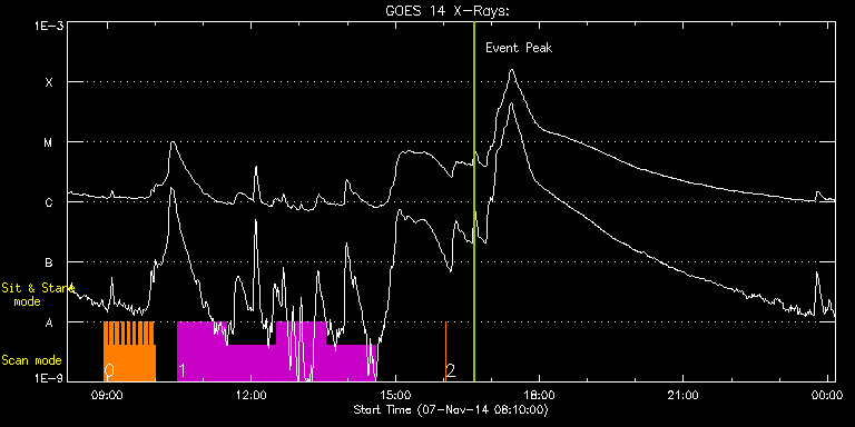 EIS Observation timeline overlay to GOES-Xray curve Code 1" 2" 40" 266" EIS Observations list for this event: STUDY ACRONYM ID DATE OBSERVED DESCRIPTION NOAA# TARGET 0 HH_Flare_raster_v6 | 43684 | 2014/11/07 08:56:13 | Flare study | | Flare TIMELINE ID DATE OBSERVED FITS FILE XCEN (+W/-E) YCEN (+N/-S) DUR ----------------------------------------------------------------------------------------------------------------- 43684 | 2014/11/07 08:56:13.000 | eis_l0_20141107_085613.fits.gz | -635.28 | 214.33 | 3m32s 43684 | 2014/11/07 08:59:48.000 | eis_l0_20141107_085948.fits.gz | -634.90 | 214.10 | 3m31s 43684 | 2014/11/07 09:03:22.000 | eis_l0_20141107_090322.fits.gz | -634.51 | 214.18 | 3m31s 43684 | 2014/11/07 09:06:56.000 | eis_l0_20141107_090656.fits.gz | -634.05 | 214.02 | 3m32s 43684 | 2014/11/07 09:10:30.000 | eis_l0_20141107_091030.fits.gz | -633.74 | 214.10 | 3m32s 43684 | 2014/11/07 09:14:04.000 | eis_l0_20141107_091404.fits.gz | -633.28 | 214.02 | 3m32s 43684 | 2014/11/07 09:17:38.000 | eis_l0_20141107_091738.fits.gz | -632.89 | 213.95 | 3m32s 43684 | 2014/11/07 09:21:13.000 | eis_l0_20141107_092113.fits.gz | -632.50 | 214.10 | 3m31s 43684 | 2014/11/07 09:24:47.000 | eis_l0_20141107_092447.fits.gz | -632.12 | 213.95 | 3m32s 43684 | 2014/11/07 09:28:21.000 | eis_l0_20141107_092821.fits.gz | -631.73 | 213.87 | 3m32s 43684 | 2014/11/07 09:31:56.000 | eis_l0_20141107_093156.fits.gz | -631.27 | 214.02 | 3m31s 43684 | 2014/11/07 09:35:30.000 | eis_l0_20141107_093530.fits.gz | -630.96 | 213.87 | 3m32s 43684 | 2014/11/07 09:39:05.000 | eis_l0_20141107_093905.fits.gz | -630.49 | 213.87 | 3m31s 43684 | 2014/11/07 09:42:39.000 | eis_l0_20141107_094239.fits.gz | -630.03 | 213.87 | 3m31s 43684 | 2014/11/07 09:46:13.000 | eis_l0_20141107_094613.fits.gz | -629.72 | 213.79 | 3m32s 43684 | 2014/11/07 09:49:47.000 | eis_l0_20141107_094947.fits.gz | -629.26 | 213.79 | 3m32s 43684 | 2014/11/07 09:53:22.000 | eis_l0_20141107_095322.fits.gz | -628.87 | 213.64 | 3m32s 43684 | 2014/11/07 09:56:57.000 | eis_l0_20141107_095657.fits.gz | -628.49 | 213.79 | 3m31s 1 HPW021_VEL_120x512v1 | 43671 | 2014/11/07 10:27:27 | Flare study | | Active Region TIMELINE ID DATE OBSERVED FITS FILE XCEN (+W/-E) YCEN (+N/-S) DUR ----------------------------------------------------------------------------------------------------------------- 43671 | 2014/11/07 10:27:27.000 | eis_l0_20141107_102727.fits.gz | -484.33 | 93.64 | 1h1m53s 43671 | 2014/11/07 11:29:27.000 | eis_l0_20141107_112927.fits.gz | -477.22 | 93.25 | 1h1m51s 43671 | 2014/11/07 12:31:25.000 | eis_l0_20141107_123125.fits.gz | -470.19 | 92.94 | 1h1m52s 43671 | 2014/11/07 13:33:24.000 | eis_l0_20141107_133324.fits.gz | -463.01 | 92.63 | 1h1m52s 2 HH_Flare_raster_v6 | 43685 | 2014/11/07 16:02:27 | Flare study | | Flare TIMELINE ID DATE OBSERVED FITS FILE XCEN (+W/-E) YCEN (+N/-S) DUR ----------------------------------------------------------------------------------------------------------------- 43685 | 2014/11/07 16:02:27.000 | eis_l0_20141107_160227.fits.gz | -586.39 | 211.86 | 1m13s : Check study information : Download file : View thumbnails For this event, also check for: