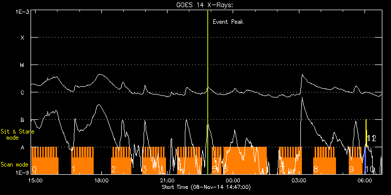 EIS Observation timeline overlay to GOES-Xray curve Code 1" 2" 40" 266" EIS Observations list for this event: STUDY ACRONYM ID DATE OBSERVED DESCRIPTION NOAA# TARGET 0 HH_Flare_raster_v6 | 43722 | 2014/11/08 14:50:13 | Major Flare Watch observation | | Flare TIMELINE ID DATE OBSERVED FITS FILE XCEN (+W/-E) YCEN (+N/-S) DUR ----------------------------------------------------------------------------------------------------------------- 43722 | 2014/11/08 14:50:13.000 | eis_l0_20141108_145013.fits.gz | -418.44 | 188.92 | 3m31s 43722 | 2014/11/08 14:53:47.000 | eis_l0_20141108_145347.fits.gz | -417.98 | 188.84 | 3m31s 43722 | 2014/11/08 14:57:21.000 | eis_l0_20141108_145721.fits.gz | -417.44 | 188.76 | 3m32s 43722 | 2014/11/08 15:00:56.000 | eis_l0_20141108_150056.fits.gz | -417.05 | 188.76 | 3m31s 43722 | 2014/11/08 15:04:30.000 | eis_l0_20141108_150430.fits.gz | -416.51 | 188.84 | 3m30s 43722 | 2014/11/08 15:08:03.000 | eis_l0_20141108_150803.fits.gz | -415.97 | 188.61 | 3m32s 43722 | 2014/11/08 15:11:38.000 | eis_l0_20141108_151138.fits.gz | -415.51 | 188.69 | 3m31s 43722 | 2014/11/08 15:15:12.000 | eis_l0_20141108_151512.fits.gz | -415.05 | 188.76 | 3m31s 43722 | 2014/11/08 15:18:46.000 | eis_l0_20141108_151846.fits.gz | -414.58 | 188.69 | 3m32s 43722 | 2014/11/08 15:22:21.000 | eis_l0_20141108_152221.fits.gz | -414.12 | 188.69 | 3m31s 43722 | 2014/11/08 15:25:55.000 | eis_l0_20141108_152555.fits.gz | -413.58 | 188.76 | 3m32s 43722 | 2014/11/08 15:29:30.000 | eis_l0_20141108_152930.fits.gz | -413.11 | 189.00 | 3m31s 43722 | 2014/11/08 15:33:04.000 | eis_l0_20141108_153304.fits.gz | -412.57 | 188.61 | 3m31s 43722 | 2014/11/08 15:36:38.000 | eis_l0_20141108_153638.fits.gz | -412.11 | 188.61 | 3m31s 43722 | 2014/11/08 15:40:12.000 | eis_l0_20141108_154012.fits.gz | -411.65 | 188.76 | 3m31s 43722 | 2014/11/08 15:43:46.000 | eis_l0_20141108_154346.fits.gz | -411.18 | 188.61 | 3m32s 43722 | 2014/11/08 15:47:21.000 | eis_l0_20141108_154721.fits.gz | -410.64 | 188.69 | 3m31s 43722 | 2014/11/08 15:50:55.000 | eis_l0_20141108_155055.fits.gz | -410.18 | 188.76 | 3m31s 43722 | 2014/11/08 15:54:29.000 | eis_l0_20141108_155429.fits.gz | -409.71 | 188.61 | 3m32s 43722 | 2014/11/08 15:58:04.000 | eis_l0_20141108_155804.fits.gz | -409.17 | 188.53 | 3m31s 1 HH_Flare_raster_v6 | 43723 | 2014/11/08 16:37:43 | Major Flare Watch observation | | Flare TIMELINE ID DATE OBSERVED FITS FILE XCEN (+W/-E) YCEN (+N/-S) DUR ----------------------------------------------------------------------------------------------------------------- 43723 | 2014/11/08 16:37:43.000 | eis_l0_20141108_163743.fits.gz | -417.13 | 188.76 | 3m32s 43723 | 2014/11/08 16:41:17.000 | eis_l0_20141108_164117.fits.gz | -403.15 | 188.53 | 3m32s 43723 | 2014/11/08 16:44:52.000 | eis_l0_20141108_164452.fits.gz | -402.84 | 188.38 | 3m30s 43723 | 2014/11/08 16:48:25.000 | eis_l0_20141108_164825.fits.gz | -402.30 | 188.46 | 3m32s 43723 | 2014/11/08 16:52:00.000 | eis_l0_20141108_165200.fits.gz | -401.84 | 188.53 | 3m31s 43723 | 2014/11/08 16:55:34.000 | eis_l0_20141108_165534.fits.gz | -401.30 | 188.46 | 3m31s 43723 | 2014/11/08 16:59:08.000 | eis_l0_20141108_165908.fits.gz | -400.91 | 188.30 | 3m32s 43723 | 2014/11/08 17:02:42.000 | eis_l0_20141108_170242.fits.gz | -400.45 | 188.38 | 3m32s 43723 | 2014/11/08 17:06:16.000 | eis_l0_20141108_170616.fits.gz | -403.15 | 188.53 | 3m31s 43723 | 2014/11/08 17:09:50.000 | eis_l0_20141108_170950.fits.gz | -403.15 | 188.53 | 3m32s 43723 | 2014/11/08 17:13:24.000 | eis_l0_20141108_171324.fits.gz | -403.15 | 188.53 | 3m32s 43723 | 2014/11/08 17:16:59.000 | eis_l0_20141108_171659.fits.gz | -403.15 | 188.53 | 3m31s 43723 | 2014/11/08 17:20:33.000 | eis_l0_20141108_172033.fits.gz | -403.15 | 188.53 | 3m31s 43723 | 2014/11/08 17:24:07.000 | eis_l0_20141108_172407.fits.gz | -403.15 | 188.53 | 3m31s 43723 | 2014/11/08 17:27:41.000 | eis_l0_20141108_172741.fits.gz | -403.15 | 188.53 | 3m32s 43723 | 2014/11/08 17:31:15.000 | eis_l0_20141108_173115.fits.gz | -403.15 | 188.53 | 3m32s 43723 | 2014/11/08 17:34:50.000 | eis_l0_20141108_173450.fits.gz | -403.15 | 188.53 | 3m31s 2 HH_Flare_raster_v6 | 43705 | 2014/11/08 18:27:13 | Major Flare Watch observation | | Flare TIMELINE ID DATE OBSERVED FITS FILE XCEN (+W/-E) YCEN (+N/-S) DUR ----------------------------------------------------------------------------------------------------------------- 43705 | 2014/11/08 18:27:13.000 | eis_l0_20141108_182713.fits.gz | -388.78 | 188.30 | 3m31s 43705 | 2014/11/08 18:30:47.000 | eis_l0_20141108_183047.fits.gz | -388.24 | 188.22 | 3m31s 43705 | 2014/11/08 18:34:21.000 | eis_l0_20141108_183421.fits.gz | -387.70 | 188.30 | 3m31s 43705 | 2014/11/08 18:37:55.000 | eis_l0_20141108_183755.fits.gz | -387.24 | 188.07 | 3m32s 43705 | 2014/11/08 18:41:30.000 | eis_l0_20141108_184130.fits.gz | -386.77 | 188.22 | 3m31s 43705 | 2014/11/08 18:45:04.000 | eis_l0_20141108_184504.fits.gz | -391.33 | 188.22 | 3m31s 43705 | 2014/11/08 18:48:38.000 | eis_l0_20141108_184838.fits.gz | -391.33 | 188.22 | 3m31s 43705 | 2014/11/08 18:52:12.000 | eis_l0_20141108_185212.fits.gz | -391.33 | 188.22 | 3m31s 43705 | 2014/11/08 18:55:46.000 | eis_l0_20141108_185546.fits.gz | -391.33 | 188.22 | 3m32s 43705 | 2014/11/08 18:59:21.000 | eis_l0_20141108_185921.fits.gz | -391.33 | 188.22 | 3m31s 43705 | 2014/11/08 19:02:55.000 | eis_l0_20141108_190255.fits.gz | -391.33 | 188.22 | 3m32s 43705 | 2014/11/08 19:06:30.000 | eis_l0_20141108_190630.fits.gz | -391.33 | 188.22 | 3m31s 43705 | 2014/11/08 19:10:04.000 | eis_l0_20141108_191004.fits.gz | -382.60 | 188.38 | 3m31s 43705 | 2014/11/08 19:13:38.000 | eis_l0_20141108_191338.fits.gz | -382.29 | 188.15 | 3m31s 43705 | 2014/11/08 19:17:12.000 | eis_l0_20141108_191712.fits.gz | -381.75 | 187.99 | 3m31s 3 HH_Flare_raster_v6 | 43724 | 2014/11/08 19:51:13 | Major Flare Watch observation | | Flare TIMELINE ID DATE OBSERVED FITS FILE XCEN (+W/-E) YCEN (+N/-S) DUR ------------------------------------------------------------------------