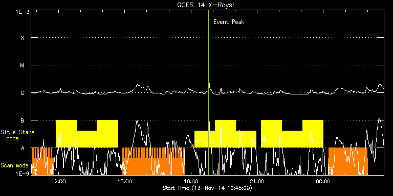 EIS Observation timeline overlay to GOES-Xray curve Code 1" 2" 40" 266" EIS Observations list for this event: STUDY ACRONYM ID DATE OBSERVED DESCRIPTION NOAA# TARGET 0 HH_Flare_raster_v6 | 43790 | 2014/11/13 10:48:41 | Major Flare Watch observation | | Flare TIMELINE ID DATE OBSERVED FITS FILE XCEN (+W/-E) YCEN (+N/-S) DUR ----------------------------------------------------------------------------------------------------------------- 43790 | 2014/11/13 10:48:41.000 | eis_l0_20141113_104841.fits.gz | -9946.58 | -9964.20 | 3m32s 43790 | 2014/11/13 10:52:16.000 | eis_l0_20141113_105216.fits.gz | -9946.58 | -9964.20 | 3m31s 43790 | 2014/11/13 10:55:50.000 | eis_l0_20141113_105550.fits.gz | -9946.58 | -9964.20 | 3m32s 43790 | 2014/11/13 10:59:24.000 | eis_l0_20141113_105924.fits.gz | -9946.58 | -9964.20 | 3m32s 43790 | 2014/11/13 11:02:59.000 | eis_l0_20141113_110259.fits.gz | -9946.58 | -9964.20 | 3m32s 43790 | 2014/11/13 11:06:33.000 | eis_l0_20141113_110633.fits.gz | -9946.58 | -9964.20 | 3m32s 43790 | 2014/11/13 11:10:08.000 | eis_l0_20141113_111008.fits.gz | -9946.58 | -9964.20 | 3m31s 43790 | 2014/11/13 11:13:42.000 | eis_l0_20141113_111342.fits.gz | -9946.58 | -9964.20 | 3m32s 43790 | 2014/11/13 11:17:17.000 | eis_l0_20141113_111717.fits.gz | -9946.58 | -9964.20 | 3m31s 43790 | 2014/11/13 11:20:51.000 | eis_l0_20141113_112051.fits.gz | -9946.58 | -9964.20 | 3m31s 43790 | 2014/11/13 11:24:25.000 | eis_l0_20141113_112425.fits.gz | -9946.58 | -9964.20 | 3m31s 43790 | 2014/11/13 11:27:59.000 | eis_l0_20141113_112759.fits.gz | -9946.58 | -9964.20 | 3m32s 43790 | 2014/11/13 11:31:34.000 | eis_l0_20141113_113134.fits.gz | -9946.58 | -9964.20 | 3m32s 43790 | 2014/11/13 11:35:09.000 | eis_l0_20141113_113509.fits.gz | -9946.58 | -9964.20 | 3m31s 43790 | 2014/11/13 11:38:43.000 | eis_l0_20141113_113843.fits.gz | -9946.58 | -9964.20 | 3m31s 43790 | 2014/11/13 11:42:16.000 | eis_l0_20141113_114216.fits.gz | -9946.58 | -9964.20 | 3m32s 1 Flare266_Hunter02 | 43769 | 2014/11/13 11:52:34 | Joint IRIS/Hinode observations of post | | Flare TIMELINE ID DATE OBSERVED FITS FILE XCEN (+W/-E) YCEN (+N/-S) DUR ----------------------------------------------------------------------------------------------------------------- 43769 | 2014/11/13 11:52:34.000 | eis_l0_20141113_115234.fits.gz | -10002.00 | -10118.20 | 55m48s 43769 | 2014/11/13 12:48:48.000 | eis_l0_20141113_124848.fits.gz | -10002.00 | -10118.20 | 55m48s 43769 | 2014/11/13 13:45:03.000 | eis_l0_20141113_134503.fits.gz | -10002.00 | -10118.20 | 55m48s 2 HH_Flare_raster_v6 | 43791 | 2014/11/13 14:54:19 | Major Flare Watch observation | | Flare TIMELINE ID DATE OBSERVED FITS FILE XCEN (+W/-E) YCEN (+N/-S) DUR ----------------------------------------------------------------------------------------------------------------- 43791 | 2014/11/13 14:54:19.000 | eis_l0_20141113_145419.fits.gz | -9946.58 | -9964.20 | 3m31s 43791 | 2014/11/13 14:57:53.000 | eis_l0_20141113_145753.fits.gz | -9946.58 | -9964.20 | 3m31s 43791 | 2014/11/13 15:01:27.000 | eis_l0_20141113_150127.fits.gz | -9946.58 | -9964.20 | 3m31s 43791 | 2014/11/13 15:05:01.000 | eis_l0_20141113_150501.fits.gz | -9946.58 | -9964.20 | 3m31s 43791 | 2014/11/13 15:08:35.000 | eis_l0_20141113_150835.fits.gz | -9946.58 | -9964.20 | 3m32s 43791 | 2014/11/13 15:12:09.000 | eis_l0_20141113_151209.fits.gz | -9946.58 | -9964.20 | 3m31s 43791 | 2014/11/13 15:15:43.000 | eis_l0_20141113_151543.fits.gz | -9946.58 | -9964.20 | 3m31s 43791 | 2014/11/13 15:19:17.000 | eis_l0_20141113_151917.fits.gz | -9946.58 | -9964.20 | 3m32s 43791 | 2014/11/13 15:22:52.000 | eis_l0_20141113_152252.fits.gz | -9946.58 | -9964.20 | 3m31s 43791 | 2014/11/13 15:26:26.000 | eis_l0_20141113_152626.fits.gz | -9946.58 | -9964.20 | 3m31s 43791 | 2014/11/13 15:30:00.000 | eis_l0_20141113_153000.fits.gz | -9946.58 | -9964.20 | 3m31s 43791 | 2014/11/13 15:33:34.000 | eis_l0_20141113_153334.fits.gz | -9946.58 | -9964.20 | 3m32s 43791 | 2014/11/13 15:37:09.000 | eis_l0_20141113_153709.fits.gz | -9946.58 | -9964.20 | 3m31s 43791 | 2014/11/13 15:40:42.000 | eis_l0_20141113_154042.fits.gz | -9946.58 | -9964.20 | 3m32s 43791 | 2014/11/13 15:44:17.000 | eis_l0_20141113_154417.fits.gz | -9946.58 | -9964.20 | 3m31s 43791 | 2014/11/13 15:47:51.000 | eis_l0_20141113_154751.fits.gz | -9946.58 | -9964.20 | 3m31s 43791 | 2014/11/13 15:51:25.000 | eis_l0_20141113_155125.fits.gz | -9946.58 | -9964.20 | 3m31s 43791 | 2014/11/13 15:54:59.000 | eis_l0_20141113_155459.fits.gz | -9946.58 | -9964.20 | 3m32s 43791 | 2014/11/13 15:58:34.000 | eis_l0_20141113_155834.fits.gz | -9946.58 | -9964.20 | 3m31s 43791 | 2014/11/13 16:02:08.000 | eis_l0_20141113_160208.fits.gz | -9946.58 | -9964.20 | 3m31s 43791 | 2014/11/13 16:05:42.000 | eis_l0_20141113_160542.fits.gz | -9946.58 | -9964.20 | 3m32s 43791 | 2014/11/13 16:09:17.000 | eis_l0_20141113_160917.fits.gz | -9946.58 | -9964.20 | 3m31s 43791 | 2014/11/13 16:12:51.000 | eis_l0_20141113_161251.fits.gz | -9946.58 | -9964.20 | 3m31s 43791 | 2014/11/13 16:16:25.000 | eis_l0_20141113_161625.fits.gz | -9946.58 | -9964.20 | 3m32s 43791 | 2014/11/13 16:20:00.000 | eis_l0_20141113_162000.fits.gz | -9946.58 | -9964.20 | 3m31s 43791 | 2014/11/13 16:23:34.000 | eis_l0_20141113_162334.fits.gz | -9946.58 | -9964.20 | 3m32s 43791 | 2014/11/13 16:27:08.000 | eis_l0_20141113_162708.fits.gz | -9946.58 | -9964.20 | 3m31s 43791 | 2014/11/13 16:30:42.000 | eis_l0_20141113_163042.fits.gz | -9946.58 | -9964.20 | 3m32s 43791 | 2014/11/13 16:34:16.000 | eis_l0_20141113_163416.fits.gz | -9946.58 | -9964.20 | 3m32s 43791 | 2014/11/13 16:37:51.000 | eis_l0_20141113_163751.fits.gz | -9946.58 | -9964.20 | 3m31s 43791 | 2014/11/13 16:41:25.000 | eis_l0_20141113_164125.fits.gz | -9946.58 | -9964.20 | 3m32s 43791 | 2014/11/13 16:44:59.000 | eis_l0_20141113_164459.fits.gz | -9946.58 | -9964.20 | 3m32s 43791 | 2014/11/13 16:48:34.000 | eis_l0_20141113_164834.fits.gz | -9946.58 | -9964.20 | 3m31s 43791 | 2014/11/13 16:52:08.000 | eis_l0_20141113_165208.f
