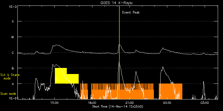EIS Observation timeline overlay to GOES-Xray curve Code 1" 2" 40" 266" EIS Observations list for this event: STUDY ACRONYM ID DATE OBSERVED DESCRIPTION NOAA# TARGET 0 Flare266_Hunter02 | 43792 | 2014/11/14 15:02:39 | Joint IRIS/Hinode observations of post | | Flare TIMELINE ID DATE OBSERVED FITS FILE XCEN (+W/-E) YCEN (+N/-S) DUR ----------------------------------------------------------------------------------------------------------------- 43792 | 2014/11/14 15:02:39.000 | eis_l0_20141114_150239.fits.gz | -10002.00 | -10118.20 | 55m48s 43792 | 2014/11/14 15:58:53.000 | eis_l0_20141114_155853.fits.gz | -10002.00 | -10118.20 | 55m49s 1 HH_Flare_raster_v6 | 43793 | 2014/11/14 17:04:34 | Major Flare Watch observation | | Flare TIMELINE ID DATE OBSERVED FITS FILE XCEN (+W/-E) YCEN (+N/-S) DUR ----------------------------------------------------------------------------------------------------------------- 43793 | 2014/11/14 17:04:34.000 | eis_l0_20141114_170434.fits.gz | -9870.95 | -9948.20 | 3m32s 43793 | 2014/11/14 17:08:08.000 | eis_l0_20141114_170808.fits.gz | -9870.95 | -9948.20 | 3m31s 43793 | 2014/11/14 17:11:42.000 | eis_l0_20141114_171142.fits.gz | -9870.95 | -9948.20 | 3m31s 43793 | 2014/11/14 17:15:16.000 | eis_l0_20141114_171516.fits.gz | -9870.95 | -9948.20 | 3m32s 43793 | 2014/11/14 17:18:51.000 | eis_l0_20141114_171851.fits.gz | -9870.95 | -9948.20 | 3m31s 43793 | 2014/11/14 17:22:25.000 | eis_l0_20141114_172225.fits.gz | -9870.95 | -9948.20 | 3m31s 43793 | 2014/11/14 17:25:59.000 | eis_l0_20141114_172559.fits.gz | -9870.95 | -9948.20 | 3m32s 43793 | 2014/11/14 17:29:33.000 | eis_l0_20141114_172933.fits.gz | -9870.95 | -9948.20 | 3m32s 43793 | 2014/11/14 17:33:08.000 | eis_l0_20141114_173308.fits.gz | -9870.95 | -9948.20 | 3m31s 43793 | 2014/11/14 17:36:42.000 | eis_l0_20141114_173642.fits.gz | -9870.95 | -9948.20 | 3m31s 2 HH_Flare_raster_v6 | 43776 | 2014/11/14 17:56:13 | Major Flare Watch observation | 2209 | Flare TIMELINE ID DATE OBSERVED FITS FILE XCEN (+W/-E) YCEN (+N/-S) DUR ----------------------------------------------------------------------------------------------------------------- 43776 | 2014/11/14 17:56:13.000 | eis_l0_20141114_175613.fits.gz | -9862.96 | -9948.20 | 3m31s 43776 | 2014/11/14 17:59:47.000 | eis_l0_20141114_175947.fits.gz | -9862.96 | -9948.20 | 3m32s 43776 | 2014/11/14 18:03:22.000 | eis_l0_20141114_180322.fits.gz | -9862.96 | -9948.20 | 3m31s 43776 | 2014/11/14 18:06:56.000 | eis_l0_20141114_180656.fits.gz | -9862.96 | -9948.20 | 3m32s 43776 | 2014/11/14 18:10:31.000 | eis_l0_20141114_181031.fits.gz | -9862.96 | -9948.20 | 3m32s 43776 | 2014/11/14 18:14:05.000 | eis_l0_20141114_181405.fits.gz | -9862.96 | -9948.20 | 3m32s 43776 | 2014/11/14 18:17:40.000 | eis_l0_20141114_181740.fits.gz | -9862.96 | -9948.20 | 3m32s 43776 | 2014/11/14 18:21:14.000 | eis_l0_20141114_182114.fits.gz | -9862.96 | -9948.20 | 3m32s 43776 | 2014/11/14 18:24:49.000 | eis_l0_20141114_182449.fits.gz | -9862.96 | -9948.20 | 3m31s 43776 | 2014/11/14 18:28:23.000 | eis_l0_20141114_182823.fits.gz | -9862.96 | -9948.20 | 3m31s 43776 | 2014/11/14 18:31:57.000 | eis_l0_20141114_183157.fits.gz | -9862.96 | -9948.20 | 3m32s 43776 | 2014/11/14 18:35:31.000 | eis_l0_20141114_183531.fits.gz | -9862.96 | -9948.20 | 3m32s 43776 | 2014/11/14 18:39:06.000 | eis_l0_20141114_183906.fits.gz | -9862.96 | -9948.20 | 3m31s 43776 | 2014/11/14 18:42:40.000 | eis_l0_20141114_184240.fits.gz | -9862.96 | -9948.20 | 3m32s 43776 | 2014/11/14 18:46:15.000 | eis_l0_20141114_184615.fits.gz | -9862.96 | -9948.20 | 3m31s 43776 | 2014/11/14 18:49:49.000 | eis_l0_20141114_184949.fits.gz | -9862.96 | -9948.20 | 3m32s 43776 | 2014/11/14 18:53:24.000 | eis_l0_20141114_185324.fits.gz | -9862.96 | -9948.20 | 3m31s 43776 | 2014/11/14 18:56:58.000 | eis_l0_20141114_185658.fits.gz | -9862.96 | -9948.20 | 3m31s 43776 | 2014/11/14 19:00:32.000 | eis_l0_20141114_190032.fits.gz | -9862.96 | -9948.20 | 3m32s 43776 | 2014/11/14 19:04:07.000 | eis_l0_20141114_190407.fits.gz | -9862.96 | -9948.20 | 3m32s 43776 | 2014/11/14 19:07:41.000 | eis_l0_20141114_190741.fits.gz | -9862.96 | -9948.20 | 3m32s 43776 | 2014/11/14 19:11:16.000 | eis_l0_20141114_191116.fits.gz | -9862.96 | -9948.20 | 3m31s 43776 | 2014/11/14 19:14:50.000 | eis_l0_20141114_191450.fits.gz | -9862.96 | -9948.20 | 3m31s 43776 | 2014/11/14 19:18:24.000 | eis_l0_20141114_191824.fits.gz | -9862.96 | -9948.20 | 3m32s 43776 | 2014/11/14 19:21:58.000 | eis_l0_20141114_192158.fits.gz | -9862.96 | -9948.20 | 3m32s 43776 | 2014/11/14 19:25:33.000 | eis_l0_20141114_192533.fits.gz | -9862.96 | -9948.20 | 3m31s 43776 | 2014/11/14 19:29:07.000 | eis_l0_20141114_192907.fits.gz | -9862.96 | -9948.20 | 3m32s 43776 | 2014/11/14 19:32:41.000 | eis_l0_20141114_193241.fits.gz | -9862.96 | -9948.20 | 3m32s 43776 | 2014/11/14 19:36:16.000 | eis_l0_20141114_193616.fits.gz | -9862.96 | -9948.20 | 3m31s 43776 | 2014/11/14 19:39:50.000 | eis_l0_20141114_193950.fits.gz | -9862.96 | -9948.20 | 3m32s 43776 | 2014/11/14 19:43:25.000 | eis_l0_20141114_194325.fits.gz | -9862.96 | -9948.20 | 3m31s 43776 | 2014/11/14 19:46:59.000 | eis_l0_20141114_194659.fits.gz | -9862.96 | -9948.20 | 3m32s 43776 | 2014/11/14 19:50:34.000 | eis_l0_20141114_195034.fits.gz | -9862.96 | -9948.20 | 3m31s 43776 | 2014/11/14 19:54:08.000 | eis_l0_20141114_195408.fits.gz | -9862.96 | -9948.20 | 3m31s 43776 | 2014/11/14 19:57:42.000 | eis_l0_20141114_195742.fits.gz | -9862.96 | -9948.20 | 3m31s 43776 | 2014/11/14 20:01:16.000 | eis_l0_20141114_200116.fits.gz | -9862.96 | -9948.20 | 3m30s 43776 | 2014/11/14 20:04:49.000 | eis_l0_20141114_200449.fits.gz | -864.91 | -257.26 | 3m32s 43776 | 2014/11/14 20:08:24.000 | eis_l0_20141114_200824.fits.gz | -864.91 | -257.33 | 3m31s 43776 | 2014/11/14 20:11:58.000 | eis_l0_20141114_201158.fits.gz | -864.68 | -257.26 | 3m31s 43776 | 2014/11/14 20:15:32.000 | eis_l0_20141114_201532.fits.gz | -864.53 | -257.41 | 3m32s 43776 | 2014/11/14 20:19:07.000 | eis_l0_20141114_201907.fits.gz