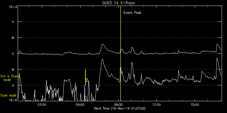EIS Observation timeline overlay to GOES-Xray curve Code 1" 2" 40" 266" EIS Observations list for this event: STUDY ACRONYM ID DATE OBSERVED DESCRIPTION NOAA# TARGET 0 PRY_slot_contextLITE | 43799 | 2014/11/16 06:20:19 | EIS pointing monitoring | 2212 | Active Region TIMELINE ID DATE OBSERVED FITS FILE XCEN (+W/-E) YCEN (+N/-S) DUR ----------------------------------------------------------------------------------------------------------------- 43799 | 2014/11/16 06:20:19.000 | eis_l0_20141116_062019.fits.gz | -15.14 | -0.35 | 2m56s 1 Alignment_266 | 43800 | 2014/11/16 06:23:34 | EIS pointing monitoring | 2212 | Quiet Sun TIMELINE ID DATE OBSERVED FITS FILE XCEN (+W/-E) YCEN (+N/-S) DUR ----------------------------------------------------------------------------------------------------------------- 43800 | 2014/11/16 06:23:34.000 | eis_l0_20141116_062334.fits.gz | -132.57 | -0.50 | 1m22s 2 XRT_synop_AIA | 43801 | 2014/11/16 06:25:41 | EIS pointing monitoring | 2212 | Quiet Sun TIMELINE ID DATE OBSERVED FITS FILE XCEN (+W/-E) YCEN (+N/-S) DUR ----------------------------------------------------------------------------------------------------------------- 43801 | 2014/11/16 06:25:41.000 | eis_l0_20141116_062541.fits.gz | -132.57 | -0.50 | 10s : Check study information : Download file : View thumbnails For this event, also check for:
