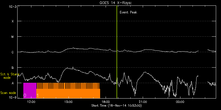 EIS Observation timeline overlay to GOES-Xray curve Code 1" 2" 40" 266" EIS Observations list for this event: STUDY ACRONYM ID DATE OBSERVED DESCRIPTION NOAA# TARGET 0 HPW021_VEL_120x512v1 | 43821 | 2014/11/18 11:22:34 | Monitor AR evolution. | | Active Region TIMELINE ID DATE OBSERVED FITS FILE XCEN (+W/-E) YCEN (+N/-S) DUR ----------------------------------------------------------------------------------------------------------------- 43821 | 2014/11/18 11:22:34.000 | eis_l0_20141118_112234.fits.gz | -393.67 | -299.20 | 1h1m53s 1 HH_Flare_raster_v6 | 43822 | 2014/11/18 12:24:46 | Flare mode observations. | | Flare TIMELINE ID DATE OBSERVED FITS FILE XCEN (+W/-E) YCEN (+N/-S) DUR ----------------------------------------------------------------------------------------------------------------- 43822 | 2014/11/18 12:24:46.000 | eis_l0_20141118_122446.fits.gz | -385.99 | -299.35 | 3m32s 43822 | 2014/11/18 12:28:21.000 | eis_l0_20141118_122821.fits.gz | -385.52 | -299.51 | 3m31s 43822 | 2014/11/18 12:31:54.000 | eis_l0_20141118_123154.fits.gz | -385.14 | -299.35 | 3m32s 43822 | 2014/11/18 12:35:29.000 | eis_l0_20141118_123529.fits.gz | -384.60 | -299.43 | 3m31s 43822 | 2014/11/18 12:39:03.000 | eis_l0_20141118_123903.fits.gz | -384.13 | -299.35 | 3m32s 43822 | 2014/11/18 12:42:37.000 | eis_l0_20141118_124237.fits.gz | -383.67 | -299.58 | 3m32s 43822 | 2014/11/18 12:46:12.000 | eis_l0_20141118_124612.fits.gz | -383.13 | -299.58 | 3m31s 43822 | 2014/11/18 12:49:46.000 | eis_l0_20141118_124946.fits.gz | -382.66 | -299.58 | 3m31s 43822 | 2014/11/18 12:53:20.000 | eis_l0_20141118_125320.fits.gz | -382.20 | -299.51 | 3m32s 43822 | 2014/11/18 12:56:54.000 | eis_l0_20141118_125654.fits.gz | -381.58 | -299.58 | 3m32s 43822 | 2014/11/18 13:00:29.000 | eis_l0_20141118_130029.fits.gz | -381.12 | -299.58 | 3m31s 43822 | 2014/11/18 13:04:03.000 | eis_l0_20141118_130403.fits.gz | -380.73 | -299.51 | 3m32s 43822 | 2014/11/18 13:07:38.000 | eis_l0_20141118_130738.fits.gz | -380.11 | -299.51 | 3m32s 43822 | 2014/11/18 13:11:13.000 | eis_l0_20141118_131113.fits.gz | -379.65 | -299.43 | 3m31s 43822 | 2014/11/18 13:14:47.000 | eis_l0_20141118_131447.fits.gz | -379.11 | -299.51 | 3m32s 43822 | 2014/11/18 13:18:22.000 | eis_l0_20141118_131822.fits.gz | -378.73 | -299.58 | 3m31s 43822 | 2014/11/18 13:21:56.000 | eis_l0_20141118_132156.fits.gz | -378.26 | -299.66 | 3m32s 43822 | 2014/11/18 13:25:31.000 | eis_l0_20141118_132531.fits.gz | -377.72 | -299.58 | 3m31s 43822 | 2014/11/18 13:29:04.000 | eis_l0_20141118_132904.fits.gz | -377.26 | -299.58 | 3m32s 43822 | 2014/11/18 13:32:38.000 | eis_l0_20141118_133238.fits.gz | -376.79 | -299.51 | 3m32s 43822 | 2014/11/18 13:36:13.000 | eis_l0_20141118_133613.fits.gz | -376.33 | -299.66 | 3m32s 43822 | 2014/11/18 13:39:48.000 | eis_l0_20141118_133948.fits.gz | -375.87 | -299.51 | 3m31s 43822 | 2014/11/18 13:43:22.000 | eis_l0_20141118_134322.fits.gz | -375.33 | -299.58 | 3m31s 43822 | 2014/11/18 13:46:56.000 | eis_l0_20141118_134656.fits.gz | -374.86 | -299.66 | 3m32s 43822 | 2014/11/18 13:50:31.000 | eis_l0_20141118_135031.fits.gz | -374.32 | -299.58 | 3m30s 43822 | 2014/11/18 13:54:04.000 | eis_l0_20141118_135404.fits.gz | -373.93 | -299.66 | 3m32s 43822 | 2014/11/18 13:57:39.000 | eis_l0_20141118_135739.fits.gz | -373.39 | -299.51 | 3m31s 43822 | 2014/11/18 14:01:13.000 | eis_l0_20141118_140113.fits.gz | -372.93 | -299.58 | 3m31s 43822 | 2014/11/18 14:04:47.000 | eis_l0_20141118_140447.fits.gz | -372.47 | -299.51 | 3m32s 43822 | 2014/11/18 14:08:21.000 | eis_l0_20141118_140821.fits.gz | -371.93 | -299.58 | 3m32s 43822 | 2014/11/18 14:11:55.000 | eis_l0_20141118_141155.fits.gz | -371.39 | -299.74 | 3m31s 43822 | 2014/11/18 14:15:29.000 | eis_l0_20141118_141529.fits.gz | -371.00 | -299.51 | 3m32s 43822 | 2014/11/18 14:19:04.000 | eis_l0_20141118_141904.fits.gz | -370.54 | -299.51 | 3m31s 43822 | 2014/11/18 14:22:38.000 | eis_l0_20141118_142238.fits.gz | -369.92 | -299.74 | 3m31s 43822 | 2014/11/18 14:26:12.000 | eis_l0_20141118_142612.fits.gz | -369.53 | -299.51 | 3m31s 43822 | 2014/11/18 14:29:46.000 | eis_l0_20141118_142946.fits.gz | -368.99 | -299.74 | 3m31s 43822 | 2014/11/18 14:33:20.000 | eis_l0_20141118_143320.fits.gz | -368.45 | -299.66 | 3m11s 43822 | 2014/11/18 14:37:05.000 | eis_l0_20141118_143705.fits.gz | -367.99 | -299.66 | 2m49s 43822 | 2014/11/18 14:40:06.000 | eis_l0_20141118_144006.fits.gz | -367.60 | -299.82 | 20s 43822 | 2014/11/18 14:40:29.000 | eis_l0_20141118_144029.fits.gz | -367.52 | -299.74 | 3m31s 43822 | 2014/11/18 14:44:03.000 | eis_l0_20141118_144403.fits.gz | -367.06 | -299.66 | 3m31s 43822 | 2014/11/18 14:47:37.000 | eis_l0_20141118_144737.fits.gz | -366.60 | -299.66 | 3m32s 43822 | 2014/11/18 14:51:12.000 | eis_l0_20141118_145112.fits.gz | -366.13 | -299.66 | 3m31s 43822 | 2014/11/18 14:54:46.000 | eis_l0_20141118_145446.fits.gz | -365.59 | -299.74 | 3m31s 43822 | 2014/11/18 14:58:19.000 | eis_l0_20141118_145819.fits.gz | -365.05 | -299.74 | 3m32s 43822 | 2014/11/18 15:01:54.000 | eis_l0_20141118_150154.fits.gz | -364.67 | -299.66 | 3m31s 43822 | 2014/11/18 15:05:28.000 | eis_l0_20141118_150528.fits.gz | -364.05 | -299.66 | 3m31s 43822 | 2014/11/18 15:09:02.000 | eis_l0_20141118_150902.fits.gz | -363.66 | -299.58 | 3m32s 43822 | 2014/11/18 15:12:36.000 | eis_l0_20141118_151236.fits.gz | -363.20 | -299.58 | 3m32s 43822 | 2014/11/18 15:16:11.000 | eis_l0_20141118_151611.fits.gz | -362.66 | -299.58 | 3m32s 43822 | 2014/11/18 15:19:46.000 | eis_l0_20141118_151946.fits.gz | -362.12 | -299.74 | 3m31s 43822 | 2014/11/18 15:23:20.000 | eis_l0_20141118_152320.fits.gz | -361.65 | -299.74 | 3m31s 43822 | 2014/11/18 15:26:54.000 | eis_l0_20141118_152654.fits.gz | -361.11 | -299.66 | 3m31s 43822 | 2014/11/18 15:30:28.000 | eis_l0_20141118_153028.fits.gz | -360.65 | -299.74 | 3m32s 43822 | 2014/11/18 15:34:03.000 | eis_l0_20141118_153403.fits.gz | -360.26 | -299.58 | 3m31s 43822 | 2014/11/18 15:37:37.000 | eis_l0_20141118_153737.fits.gz | -359.64 | -299.7