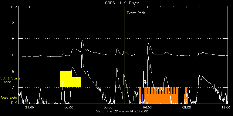 EIS Observation timeline overlay to GOES-Xray curve