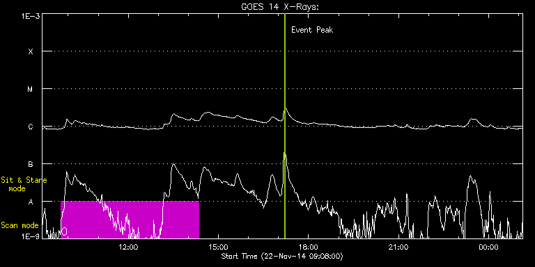 EIS Observation timeline overlay to GOES-Xray curve Code 1" 2" 40" 266" EIS Observations list for this event: STUDY ACRONYM ID DATE OBSERVED DESCRIPTION NOAA# TARGET 0 SK_CH_DIAG_320x384 | 43858 | 2014/11/22 09:45:56 | HOP81 | | Coronal Hole TIMELINE ID DATE OBSERVED FITS FILE XCEN (+W/-E) YCEN (+N/-S) DUR ----------------------------------------------------------------------------------------------------------------- 43858 | 2014/11/22 09:45:56.000 | eis_l0_20141122_094556.fits.gz | -31.08 | 919.37 | 4h35m38s : Check study information : Download file : View thumbnails For this event, also check for: