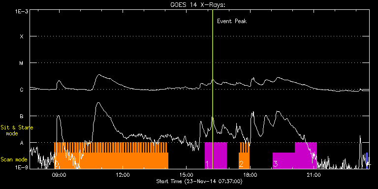 EIS Observation timeline overlay to GOES-Xray curve Code 1" 2" 40" 266" EIS Observations list for this event: STUDY ACRONYM ID DATE OBSERVED DESCRIPTION NOAA# TARGET 0 HH_Flare_raster_v6 | 43902 | 2014/11/23 08:46:26 | Flare study | | Flare TIMELINE ID DATE OBSERVED FITS FILE XCEN (+W/-E) YCEN (+N/-S) DUR ----------------------------------------------------------------------------------------------------------------- 43902 | 2014/11/23 08:46:26.000 | eis_l0_20141123_084626.fits.gz | 570.23 | -280.76 | 3m31s 43902 | 2014/11/23 08:50:00.000 | eis_l0_20141123_085000.fits.gz | 570.69 | -280.61 | 3m31s 43902 | 2014/11/23 08:53:34.000 | eis_l0_20141123_085334.fits.gz | 571.23 | -280.61 | 3m32s 43902 | 2014/11/23 08:57:09.000 | eis_l0_20141123_085709.fits.gz | 571.54 | -280.68 | 3m31s 43902 | 2014/11/23 09:00:43.000 | eis_l0_20141123_090043.fits.gz | 572.01 | -280.68 | 3m31s 43902 | 2014/11/23 09:04:17.000 | eis_l0_20141123_090417.fits.gz | 572.24 | -280.53 | 3m32s 43902 | 2014/11/23 09:07:52.000 | eis_l0_20141123_090752.fits.gz | 572.78 | -280.68 | 3m31s 43902 | 2014/11/23 09:11:26.000 | eis_l0_20141123_091126.fits.gz | 573.16 | -280.76 | 3m31s 43902 | 2014/11/23 09:15:00.000 | eis_l0_20141123_091500.fits.gz | 573.63 | -280.76 | 3m31s 43902 | 2014/11/23 09:18:34.000 | eis_l0_20141123_091834.fits.gz | 574.02 | -280.61 | 3m32s 43902 | 2014/11/23 09:22:08.000 | eis_l0_20141123_092208.fits.gz | 574.48 | -280.61 | 3m32s 43902 | 2014/11/23 09:25:42.000 | eis_l0_20141123_092542.fits.gz | 574.71 | -280.53 | 3m32s 43902 | 2014/11/23 09:29:17.000 | eis_l0_20141123_092917.fits.gz | 575.25 | -280.61 | 3m32s 43902 | 2014/11/23 09:32:51.000 | eis_l0_20141123_093251.fits.gz | 575.56 | -280.45 | 3m32s 43902 | 2014/11/23 09:36:25.000 | eis_l0_20141123_093625.fits.gz | 576.02 | -280.53 | 3m32s 43902 | 2014/11/23 09:40:00.000 | eis_l0_20141123_094000.fits.gz | 576.49 | -280.53 | 3m31s 43902 | 2014/11/23 09:43:34.000 | eis_l0_20141123_094334.fits.gz | 576.87 | -280.53 | 3m31s 43902 | 2014/11/23 09:47:08.000 | eis_l0_20141123_094708.fits.gz | 577.26 | -280.61 | 3m31s 43902 | 2014/11/23 09:50:42.000 | eis_l0_20141123_095042.fits.gz | 577.65 | -280.61 | 3m32s 43902 | 2014/11/23 09:54:17.000 | eis_l0_20141123_095417.fits.gz | 578.11 | -280.45 | 3m31s 43902 | 2014/11/23 09:57:51.000 | eis_l0_20141123_095751.fits.gz | 578.49 | -280.45 | 3m31s 43902 | 2014/11/23 10:01:24.000 | eis_l0_20141123_100124.fits.gz | 578.88 | -280.45 | 3m33s 43902 | 2014/11/23 10:04:59.000 | eis_l0_20141123_100459.fits.gz | 579.27 | -280.30 | 3m31s 43902 | 2014/11/23 10:08:33.000 | eis_l0_20141123_100833.fits.gz | 579.73 | -280.38 | 3m32s 43902 | 2014/11/23 10:12:08.000 | eis_l0_20141123_101208.fits.gz | 580.19 | -280.45 | 3m32s 43902 | 2014/11/23 10:15:42.000 | eis_l0_20141123_101542.fits.gz | 580.50 | -280.30 | 3m32s 43902 | 2014/11/23 10:19:17.000 | eis_l0_20141123_101917.fits.gz | 580.89 | -280.30 | 3m32s 43902 | 2014/11/23 10:22:51.000 | eis_l0_20141123_102251.fits.gz | 581.35 | -280.22 | 3m32s 43902 | 2014/11/23 10:26:25.000 | eis_l0_20141123_102625.fits.gz | 581.82 | -280.38 | 3m32s 43902 | 2014/11/23 10:29:59.000 | eis_l0_20141123_102959.fits.gz | 582.20 | -280.14 | 3m32s 43902 | 2014/11/23 10:33:34.000 | eis_l0_20141123_103334.fits.gz | 582.67 | -280.30 | 3m32s 43902 | 2014/11/23 10:37:09.000 | eis_l0_20141123_103709.fits.gz | 582.97 | -280.30 | 3m31s 43902 | 2014/11/23 10:40:43.000 | eis_l0_20141123_104043.fits.gz | 583.36 | -280.30 | 3m31s 43902 | 2014/11/23 10:44:17.000 | eis_l0_20141123_104417.fits.gz | 583.83 | -280.22 | 3m32s 43902 | 2014/11/23 10:47:51.000 | eis_l0_20141123_104751.fits.gz | 584.29 | -280.30 | 3m32s 43902 | 2014/11/23 10:51:25.000 | eis_l0_20141123_105125.fits.gz | 584.60 | -280.22 | 3m33s 43902 | 2014/11/23 10:55:00.000 | eis_l0_20141123_105500.fits.gz | 584.98 | -280.07 | 3m31s 43902 | 2014/11/23 10:58:34.000 | eis_l0_20141123_105834.fits.gz | 585.37 | -280.30 | 3m32s 43902 | 2014/11/23 11:02:08.000 | eis_l0_20141123_110208.fits.gz | 585.83 | -280.07 | 3m32s 43902 | 2014/11/23 11:05:43.000 | eis_l0_20141123_110543.fits.gz | 586.22 | -280.14 | 3m31s 43902 | 2014/11/23 11:09:17.000 | eis_l0_20141123_110917.fits.gz | 586.61 | -280.22 | 3m31s 43902 | 2014/11/23 11:12:51.000 | eis_l0_20141123_111251.fits.gz | 587.07 | -280.30 | 3m31s 43902 | 2014/11/23 11:16:25.000 | eis_l0_20141123_111625.fits.gz | 587.38 | -279.99 | 3m31s 43902 | 2014/11/23 11:19:59.000 | eis_l0_20141123_111959.fits.gz | 587.84 | -280.14 | 3m31s 43902 | 2014/11/23 11:23:33.000 | eis_l0_20141123_112333.fits.gz | 588.30 | -279.99 | 3m31s 43902 | 2014/11/23 11:27:07.000 | eis_l0_20141123_112707.fits.gz | 588.69 | -280.14 | 3m32s 43902 | 2014/11/23 11:30:42.000 | eis_l0_20141123_113042.fits.gz | 589.16 | -279.99 | 3m31s 43902 | 2014/11/23 11:34:16.000 | eis_l0_20141123_113416.fits.gz | 589.46 | -280.07 | 3m31s 43902 | 2014/11/23 11:37:50.000 | eis_l0_20141123_113750.fits.gz | 589.85 | -279.99 | 3m31s 43902 | 2014/11/23 11:41:24.000 | eis_l0_20141123_114124.fits.gz | 590.31 | -279.99 | 3m32s 43902 | 2014/11/23 11:44:59.000 | eis_l0_20141123_114459.fits.gz | 590.70 | -279.83 | 3m31s 43902 | 2014/11/23 11:48:33.000 | eis_l0_20141123_114833.fits.gz | 591.09 | -279.76 | 3m31s 43902 | 2014/11/23 11:52:07.000 | eis_l0_20141123_115207.fits.gz | 591.55 | -279.99 | 3m31s 43902 | 2014/11/23 11:55:41.000 | eis_l0_20141123_115541.fits.gz | 591.86 | -279.83 | 3m31s 43902 | 2014/11/23 11:59:15.000 | eis_l0_20141123_115915.fits.gz | 592.32 | -279.76 | 3m32s 43902 | 2014/11/23 12:02:49.000 | eis_l0_20141123_120249.fits.gz | 592.63 | -279.83 | 3m32s 43902 | 2014/11/23 12:06:24.000 | eis_l0_20141123_120624.fits.gz | 593.09 | -279.83 | 3m31s 43902 | 2014/11/23 12:09:58.000 | eis_l0_20141123_120958.fits.gz | 593.48 | -279.68 | 3m31s 43902 | 2014/11/23 12:13:32.000 | eis_l0_20141123_121332.fits.gz | 593.95 | -279.83 | 3m31s 43902 | 2014/11/23 12:17:06.000 | eis_l0_20141123_121706.fits.gz | 594.33 | -279.76 | 3m32s 43902 | 2014/11/23 12:20:41.000 | eis_l0_20141123_122041.fi
