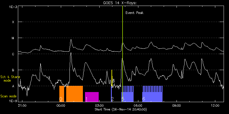 EIS Observation timeline overlay to GOES-Xray curve Code 1" 2" 40" 266" EIS Observations list for this event: STUDY ACRONYM ID DATE OBSERVED DESCRIPTION NOAA# TARGET 0 Hot_loop_osci_1 | 43953 | 2014/11/26 23:53:13 | HOP275 | | Active Region TIMELINE ID DATE OBSERVED FITS FILE XCEN (+W/-E) YCEN (+N/-S) DUR ----------------------------------------------------------------------------------------------------------------- 43953 | 2014/11/26 23:53:13.000 | eis_l0_20141126_235313.fits.gz | 178.86 | -221.74 | 1m5s 43953 | 2014/11/26 23:54:21.000 | eis_l0_20141126_235421.fits.gz | 179.01 | -221.74 | 1m5s 43953 | 2014/11/26 23:55:29.000 | eis_l0_20141126_235529.fits.gz | 179.17 | -221.74 | 1m5s 43953 | 2014/11/26 23:56:37.000 | eis_l0_20141126_235637.fits.gz | 179.32 | -221.66 | 1m5s 43953 | 2014/11/26 23:57:45.000 | eis_l0_20141126_235745.fits.gz | 179.55 | -221.59 | 1m5s 43953 | 2014/11/26 23:58:53.000 | eis_l0_20141126_235853.fits.gz | 179.71 | -221.66 | 1m5s 43953 | 2014/11/27 00:00:00.000 | eis_l0_20141127_000000.fits.gz | 179.86 | -221.66 | 1m6s 43953 | 2014/11/27 00:01:08.000 | eis_l0_20141127_000108.fits.gz | 180.10 | -221.66 | 1m5s 43953 | 2014/11/27 00:02:16.000 | eis_l0_20141127_000216.fits.gz | 180.17 | -221.97 | 1m5s 43953 | 2014/11/27 00:03:24.000 | eis_l0_20141127_000324.fits.gz | 180.40 | -221.82 | 1m5s 43953 | 2014/11/27 00:04:32.000 | eis_l0_20141127_000432.fits.gz | 180.56 | -221.74 | 1m5s 43953 | 2014/11/27 00:05:39.000 | eis_l0_20141127_000539.fits.gz | 180.79 | -221.90 | 1m5s 43953 | 2014/11/27 00:06:47.000 | eis_l0_20141127_000647.fits.gz | 180.95 | -221.74 | 1m5s 43953 | 2014/11/27 00:07:55.000 | eis_l0_20141127_000755.fits.gz | 181.02 | -221.90 | 1m5s 43953 | 2014/11/27 00:09:03.000 | eis_l0_20141127_000903.fits.gz | 181.18 | -221.74 | 1m5s 43953 | 2014/11/27 00:10:11.000 | eis_l0_20141127_001011.fits.gz | 181.33 | -221.90 | 1m5s 43953 | 2014/11/27 00:11:19.000 | eis_l0_20141127_001119.fits.gz | 181.56 | -221.74 | 1m5s 43953 | 2014/11/27 00:12:27.000 | eis_l0_20141127_001227.fits.gz | 181.72 | -221.59 | 1m5s 43953 | 2014/11/27 00:13:34.000 | eis_l0_20141127_001334.fits.gz | 181.79 | -221.82 | 46s 43953 | 2014/11/27 00:25:12.000 | eis_l0_20141127_002512.fits.gz | 183.65 | -221.82 | 46s 43953 | 2014/11/27 00:26:00.000 | eis_l0_20141127_002600.fits.gz | 183.73 | -221.82 | 1m5s 43953 | 2014/11/27 00:27:08.000 | eis_l0_20141127_002708.fits.gz | 183.80 | -221.74 | 1m5s 43953 | 2014/11/27 00:28:16.000 | eis_l0_20141127_002816.fits.gz | 184.11 | -221.74 | 1m5s 43953 | 2014/11/27 00:29:24.000 | eis_l0_20141127_002924.fits.gz | 184.27 | -221.74 | 1m5s 43953 | 2014/11/27 00:30:32.000 | eis_l0_20141127_003032.fits.gz | 184.42 | -221.66 | 1m5s 43953 | 2014/11/27 00:31:40.000 | eis_l0_20141127_003140.fits.gz | 184.58 | -221.82 | 1m5s 43953 | 2014/11/27 00:32:48.000 | eis_l0_20141127_003248.fits.gz | 184.81 | -221.74 | 1m5s 43953 | 2014/11/27 00:33:55.000 | eis_l0_20141127_003355.fits.gz | 184.96 | -221.59 | 1m6s 43953 | 2014/11/27 00:35:03.000 | eis_l0_20141127_003503.fits.gz | 185.12 | -221.59 | 1m5s 43953 | 2014/11/27 00:36:11.000 | eis_l0_20141127_003611.fits.gz | 185.27 | -221.59 | 1m6s 43953 | 2014/11/27 00:37:19.000 | eis_l0_20141127_003719.fits.gz | 185.50 | -221.74 | 1m5s 43953 | 2014/11/27 00:38:27.000 | eis_l0_20141127_003827.fits.gz | 185.66 | -221.82 | 1m5s 43953 | 2014/11/27 00:39:35.000 | eis_l0_20141127_003935.fits.gz | 185.73 | -221.59 | 1m5s 43953 | 2014/11/27 00:40:43.000 | eis_l0_20141127_004043.fits.gz | 185.97 | -221.82 | 1m5s 43953 | 2014/11/27 00:41:51.000 | eis_l0_20141127_004151.fits.gz | 186.12 | -221.82 | 1m5s 43953 | 2014/11/27 00:42:59.000 | eis_l0_20141127_004259.fits.gz | 186.27 | -221.74 | 1m5s 43953 | 2014/11/27 00:44:07.000 | eis_l0_20141127_004407.fits.gz | 186.43 | -221.74 | 1m5s 43953 | 2014/11/27 00:45:15.000 | eis_l0_20141127_004515.fits.gz | 186.66 | -221.74 | 1m5s 43953 | 2014/11/27 00:46:23.000 | eis_l0_20141127_004623.fits.gz | 186.74 | -221.74 | 1m5s 43953 | 2014/11/27 00:47:31.000 | eis_l0_20141127_004731.fits.gz | 186.97 | -221.66 | 1m5s 43953 | 2014/11/27 00:48:39.000 | eis_l0_20141127_004839.fits.gz | 187.12 | -221.59 | 1m5s 43953 | 2014/11/27 00:49:46.000 | eis_l0_20141127_004946.fits.gz | 187.36 | -221.59 | 1m5s 43953 | 2014/11/27 00:50:54.000 | eis_l0_20141127_005054.fits.gz | 187.43 | -221.66 | 1m5s 43953 | 2014/11/27 00:52:02.000 | eis_l0_20141127_005202.fits.gz | 187.66 | -221.59 | 1m5s 43953 | 2014/11/27 00:53:10.000 | eis_l0_20141127_005310.fits.gz | 187.82 | -221.66 | 1m5s 43953 | 2014/11/27 00:54:18.000 | eis_l0_20141127_005418.fits.gz | 187.97 | -221.74 | 1m5s 43953 | 2014/11/27 00:55:25.000 | eis_l0_20141127_005525.fits.gz | 188.21 | -221.82 | 1m6s 43953 | 2014/11/27 00:56:33.000 | eis_l0_20141127_005633.fits.gz | 188.28 | -221.74 | 1m5s 43953 | 2014/11/27 00:57:41.000 | eis_l0_20141127_005741.fits.gz | 188.51 | -221.74 | 1m5s 43953 | 2014/11/27 00:58:49.000 | eis_l0_20141127_005849.fits.gz | 188.67 | -221.74 | 1m5s 43953 | 2014/11/27 00:59:57.000 | eis_l0_20141127_005957.fits.gz | 188.82 | -221.74 | 1m5s 43953 | 2014/11/27 01:01:04.000 | eis_l0_20141127_010104.fits.gz | 188.98 | -221.59 | 1m6s 43953 | 2014/11/27 01:02:12.000 | eis_l0_20141127_010212.fits.gz | 189.13 | -221.59 | 1m6s 43953 | 2014/11/27 01:03:21.000 | eis_l0_20141127_010321.fits.gz | 189.37 | -221.59 | 1m5s 43953 | 2014/11/27 01:04:28.000 | eis_l0_20141127_010428.fits.gz | 189.44 | -221.43 | 1m5s 43953 | 2014/11/27 01:05:36.000 | eis_l0_20141127_010536.fits.gz | 189.67 | -221.59 | 1m5s 43953 | 2014/11/27 01:06:44.000 | eis_l0_20141127_010644.fits.gz | 189.83 | -221.51 | 1m5s 43953 | 2014/11/27 01:07:52.000 | eis_l0_20141127_010752.fits.gz | 189.98 | -221.51 | 1m5s 43953 | 2014/11/27 01:09:00.000 | eis_l0_20141127_010900.fits.gz | 190.21 | -221.66 | 1m5s 43953 | 2014/11/27 01:10:08.000 | eis_l0_20141127_011008.fits.gz | 190.29 | -221.51 | 1m5s 43953 | 2014/11/27 01:11:16.000 | eis_l0_20141127_011116.fits.gz | 190.52 | -221.66 | 1m5s 43953 | 2014/11/27 01:12:24.00