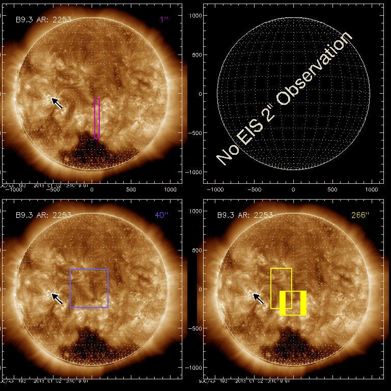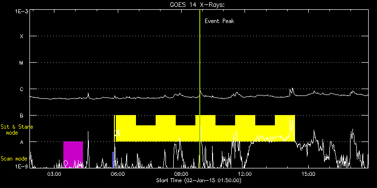 EIS Observation timeline overlay to GOES-Xray curve Code 1" 2" 40" 266" EIS Observations list for this event: STUDY ACRONYM ID DATE OBSERVED DESCRIPTION NOAA# TARGET 0 HPW021_VEL_120x512v1 | 44534 | 2015/01/02 03:25:32 | AR study | 2254 | Active Region TIMELINE ID DATE OBSERVED FITS FILE XCEN (+W/-E) YCEN (+N/-S) DUR ----------------------------------------------------------------------------------------------------------------- 44534 | 2015/01/02 03:25:32.000 | eis_l0_20150102_032532.fits.gz | 62.97 | -323.13 | 54m39s 1 PRY_slot_contextLITE | 44493 | 2015/01/02 05:45:33 | alignment | 2251 | Active Region TIMELINE ID DATE OBSERVED FITS FILE XCEN (+W/-E) YCEN (+N/-S) DUR ----------------------------------------------------------------------------------------------------------------- 44493 | 2015/01/02 05:45:33.000 | eis_l0_20150102_054533.fits.gz | -35.01 | 3.50 | 2m56s 2 Alignment_266 | 44494 | 2015/01/02 05:48:48 | alignment | | Quiet Sun TIMELINE ID DATE OBSERVED FITS FILE XCEN (+W/-E) YCEN (+N/-S) DUR ----------------------------------------------------------------------------------------------------------------- 44494 | 2015/01/02 05:48:48.000 | eis_l0_20150102_054848.fits.gz | -152.53 | 3.58 | 1m22s 3 XRT_synop_AIA | 44495 | 2015/01/02 05:50:55 | alignment | | Quiet Sun TIMELINE ID DATE OBSERVED FITS FILE XCEN (+W/-E) YCEN (+N/-S) DUR ----------------------------------------------------------------------------------------------------------------- 44495 | 2015/01/02 05:50:55.000 | eis_l0_20150102_055055.fits.gz | -152.53 | 3.42 | 10s 4 Flare266_Hunter03 | 44541 | 2015/01/02 05:55:13 | Flare study | 2254 | Flare TIMELINE ID DATE OBSERVED FITS FILE XCEN (+W/-E) YCEN (+N/-S) DUR ----------------------------------------------------------------------------------------------------------------- 44541 | 2015/01/02 05:55:13.000 | eis_l0_20150102_055513.fits.gz | -36.41 | -183.13 | 55m49s 44541 | 2015/01/02 06:51:29.000 | eis_l0_20150102_065129.fits.gz | -27.99 | -182.90 | 55m49s 44541 | 2015/01/02 07:47:45.000 | eis_l0_20150102_074745.fits.gz | -19.49 | -182.90 | 55m49s 44541 | 2015/01/02 08:44:01.000 | eis_l0_20150102_084401.fits.gz | -11.00 | -182.90 | 55m49s 44541 | 2015/01/02 09:40:17.000 | eis_l0_20150102_094017.fits.gz | -2.50 | -182.90 | 55m50s 44541 | 2015/01/02 10:36:33.000 | eis_l0_20150102_103633.fits.gz | 5.92 | -183.13 | 55m49s 44541 | 2015/01/02 11:32:49.000 | eis_l0_20150102_113249.fits.gz | 14.34 | -182.98 | 55m49s 44541 | 2015/01/02 12:29:05.000 | eis_l0_20150102_122905.fits.gz | 22.76 | -182.90 | 55m49s 44541 | 2015/01/02 13:25:21.000 | eis_l0_20150102_132521.fits.gz | 31.33 | -182.82 | 55m49s : Check study information : Download file : View thumbnails For this event, also check for:
