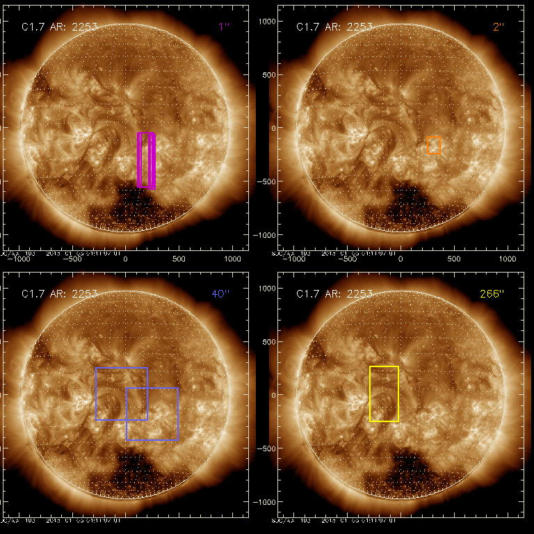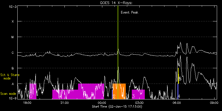 EIS Observation timeline overlay to GOES-Xray curve Code 1" 2" 40" 266" EIS Observations list for this event: STUDY ACRONYM ID DATE OBSERVED DESCRIPTION NOAA# TARGET 0 HPW021_VEL_240x512v1 | 44511 | 2015/01/02 18:12:00 | AR study | 2251 | Active Region TIMELINE ID DATE OBSERVED FITS FILE XCEN (+W/-E) YCEN (+N/-S) DUR ----------------------------------------------------------------------------------------------------------------- 44511 | 2015/01/02 18:12:00.000 | eis_l0_20150102_181200.fits.gz | 171.63 | -303.13 | 30m55s 44511 | 2015/01/02 20:01:26.000 | eis_l0_20150102_200126.fits.gz | 187.85 | -303.21 | 2h3m46s 44511 | 2015/01/02 22:05:19.000 | eis_l0_20150102_220519.fits.gz | 205.93 | -303.44 | 2h3m47s 1 PRY_slot_context_v3 | 44512 | 2015/01/03 00:48:32 | AR study | 2251 | Active Region TIMELINE ID DATE OBSERVED FITS FILE XCEN (+W/-E) YCEN (+N/-S) DUR ----------------------------------------------------------------------------------------------------------------- 44512 | 2015/01/03 00:48:32.000 | eis_l0_20150103_004832.fits.gz | 249.01 | -183.59 | 2m56s 2 Atlas_60 | 44513 | 2015/01/03 00:51:53 | AR study | 2251 | Quiet Sun TIMELINE ID DATE OBSERVED FITS FILE XCEN (+W/-E) YCEN (+N/-S) DUR ----------------------------------------------------------------------------------------------------------------- 44513 | 2015/01/03 00:51:53.000 | eis_l0_20150103_005153.fits.gz | 314.31 | -167.52 | 1h1m40s 3 HPW021_VEL_120x512v1 | 44526 | 2015/01/03 02:23:55 | AR study | | Active Region TIMELINE ID DATE OBSERVED FITS FILE XCEN (+W/-E) YCEN (+N/-S) DUR ----------------------------------------------------------------------------------------------------------------- 44526 | 2015/01/03 02:23:55.000 | eis_l0_20150103_022355.fits.gz | 247.54 | -323.59 | 1h1m52s 4 PRY_slot_contextLITE | 44496 | 2015/01/03 06:03:32 | alignment | | Active Region TIMELINE ID DATE OBSERVED FITS FILE XCEN (+W/-E) YCEN (+N/-S) DUR ----------------------------------------------------------------------------------------------------------------- 44496 | 2015/01/03 06:03:32.000 | eis_l0_20150103_060332.fits.gz | -34.18 | 3.58 | 2m57s 5 Alignment_266 | 44497 | 2015/01/03 06:06:47 | alignment | | Quiet Sun TIMELINE ID DATE OBSERVED FITS FILE XCEN (+W/-E) YCEN (+N/-S) DUR ----------------------------------------------------------------------------------------------------------------- 44497 | 2015/01/03 06:06:47.000 | eis_l0_20150103_060647.fits.gz | -151.86 | 3.58 | 1m22s 6 XRT_synop_AIA | 44498 | 2015/01/03 06:09:21 | alignment | | Quiet Sun TIMELINE ID DATE OBSERVED FITS FILE XCEN (+W/-E) YCEN (+N/-S) DUR ----------------------------------------------------------------------------------------------------------------- 44498 | 2015/01/03 06:09:21.000 | eis_l0_20150103_060921.fits.gz | -152.71 | 3.65 | 10s : Check study information : Download file : View thumbnails For this event, also check for: