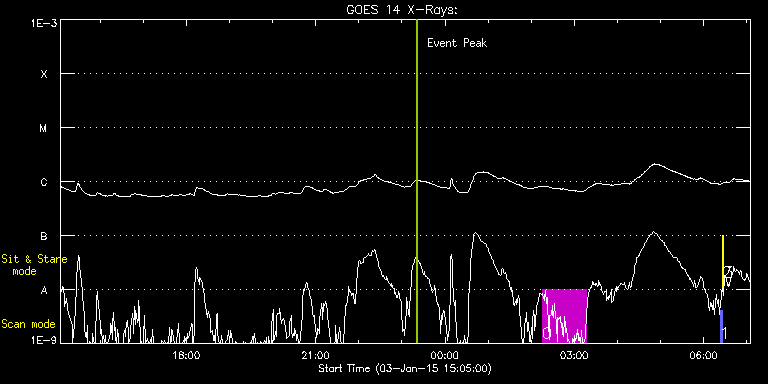 EIS Observation timeline overlay to GOES-Xray curve Code 1" 2" 40" 266" EIS Observations list for this event: STUDY ACRONYM ID DATE OBSERVED DESCRIPTION NOAA# TARGET 0 HPW021_VEL_120x512v1 | 44533 | 2015/01/04 02:15:33 | AR study | | Active Region TIMELINE ID DATE OBSERVED FITS FILE XCEN (+W/-E) YCEN (+N/-S) DUR ----------------------------------------------------------------------------------------------------------------- 44533 | 2015/01/04 02:15:33.000 | eis_l0_20150104_021533.fits.gz | 434.84 | -326.92 | 1h1m53s 1 PRY_slot_contextLITE | 44499 | 2015/01/04 06:22:34 | alignment | 2253 | Active Region TIMELINE ID DATE OBSERVED FITS FILE XCEN (+W/-E) YCEN (+N/-S) DUR ----------------------------------------------------------------------------------------------------------------- 44499 | 2015/01/04 06:22:34.000 | eis_l0_20150104_062234.fits.gz | -35.18 | 3.65 | 2m56s 2 Alignment_266 | 44500 | 2015/01/04 06:25:48 | alignment | 2253 | Quiet Sun TIMELINE ID DATE OBSERVED FITS FILE XCEN (+W/-E) YCEN (+N/-S) DUR ----------------------------------------------------------------------------------------------------------------- 44500 | 2015/01/04 06:25:48.000 | eis_l0_20150104_062548.fits.gz | -152.46 | 3.50 | 1m22s 3 XRT_synop_AIA | 44501 | 2015/01/04 06:27:56 | alignment | 2253 | Quiet Sun TIMELINE ID DATE OBSERVED FITS FILE XCEN (+W/-E) YCEN (+N/-S) DUR ----------------------------------------------------------------------------------------------------------------- 44501 | 2015/01/04 06:27:56.000 | eis_l0_20150104_062756.fits.gz | -152.53 | 3.50 | 10s : Check study information : Download file : View thumbnails For this event, also check for: