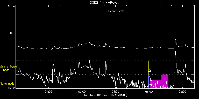EIS Observation timeline overlay to GOES-Xray curve Code 1" 2" 40" 266" EIS Observations list for this event: STUDY ACRONYM ID DATE OBSERVED DESCRIPTION NOAA# TARGET 0 PRY_slot_contextLITE | 44502 | 2015/01/05 05:54:49 | alignment | 2253 | Active Region TIMELINE ID DATE OBSERVED FITS FILE XCEN (+W/-E) YCEN (+N/-S) DUR ----------------------------------------------------------------------------------------------------------------- 44502 | 2015/01/05 05:54:49.000 | eis_l0_20150105_055449.fits.gz | -34.76 | 3.42 | 2m57s 1 Alignment_266 | 44503 | 2015/01/05 05:58:04 | alignment | | Quiet Sun TIMELINE ID DATE OBSERVED FITS FILE XCEN (+W/-E) YCEN (+N/-S) DUR ----------------------------------------------------------------------------------------------------------------- 44503 | 2015/01/05 05:58:04.000 | eis_l0_20150105_055804.fits.gz | -151.78 | 3.58 | 1m22s 2 XRT_synop_AIA | 44504 | 2015/01/05 06:00:11 | alignment | | Quiet Sun TIMELINE ID DATE OBSERVED FITS FILE XCEN (+W/-E) YCEN (+N/-S) DUR ----------------------------------------------------------------------------------------------------------------- 44504 | 2015/01/05 06:00:11.000 | eis_l0_20150105_060011.fits.gz | -152.28 | 3.65 | 11s 3 HPW021_VEL_120x512v1 | 44536 | 2015/01/05 06:05:04 | AR study | | Active Region TIMELINE ID DATE OBSERVED FITS FILE XCEN (+W/-E) YCEN (+N/-S) DUR ----------------------------------------------------------------------------------------------------------------- 44536 | 2015/01/05 06:05:04.000 | eis_l0_20150105_060504.fits.gz | 621.24 | -324.56 | 1h1m53s 44536 | 2015/01/05 07:07:03.000 | eis_l0_20150105_070703.fits.gz | 627.65 | -324.80 | 36m5s : Check study information : Download file : View thumbnails For this event, also check for: