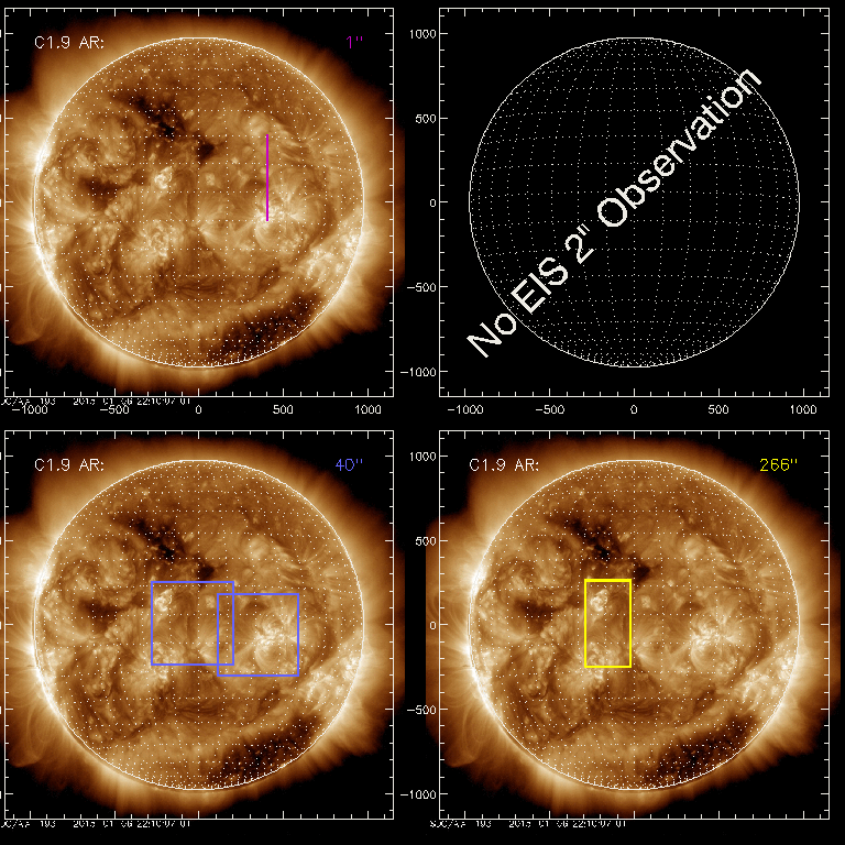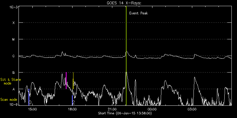 EIS Observation timeline overlay to GOES-Xray curve Code 1" 2" 40" 266" EIS Observations list for this event: STUDY ACRONYM ID DATE OBSERVED DESCRIPTION NOAA# TARGET 0 PRY_slot_context_v3 | 44550 | 2015/01/06 14:42:53 | Flare study | 2253 | Active Region TIMELINE ID DATE OBSERVED FITS FILE XCEN (+W/-E) YCEN (+N/-S) DUR ----------------------------------------------------------------------------------------------------------------- 44550 | 2015/01/06 14:42:53.000 | eis_l0_20150106_144253.fits.gz | 351.48 | -63.15 | 2m56s 1 regcal074 | 44552 | 2015/01/06 17:30:12 | Dark exposures including overscan pixe | | Engineering TIMELINE ID DATE OBSERVED FITS FILE XCEN (+W/-E) YCEN (+N/-S) DUR ----------------------------------------------------------------------------------------------------------------- 44552 | 2015/01/06 17:30:12.000 | eis_l0_20150106_173012.fits.gz | 405.54 | 142.39 | 3m22s 2 PRY_slot_contextLITE | 44542 | 2015/01/06 17:59:13 | alignment | | Active Region TIMELINE ID DATE OBSERVED FITS FILE XCEN (+W/-E) YCEN (+N/-S) DUR ----------------------------------------------------------------------------------------------------------------- 44542 | 2015/01/06 17:59:13.000 | eis_l0_20150106_175913.fits.gz | -34.59 | 2.58 | 2m57s 3 Alignment_266 | 44543 | 2015/01/06 18:02:28 | alignment | | Quiet Sun TIMELINE ID DATE OBSERVED FITS FILE XCEN (+W/-E) YCEN (+N/-S) DUR ----------------------------------------------------------------------------------------------------------------- 44543 | 2015/01/06 18:02:28.000 | eis_l0_20150106_180228.fits.gz | -151.86 | 3.50 | 1m22s 4 XRT_synop_AIA | 44544 | 2015/01/06 18:04:35 | alignment | | Quiet Sun TIMELINE ID DATE OBSERVED FITS FILE XCEN (+W/-E) YCEN (+N/-S) DUR ----------------------------------------------------------------------------------------------------------------- 44544 | 2015/01/06 18:04:35.000 | eis_l0_20150106_180435.fits.gz | -152.03 | 2.50 | 10s : Check study information : Download file : View thumbnails For this event, also check for: