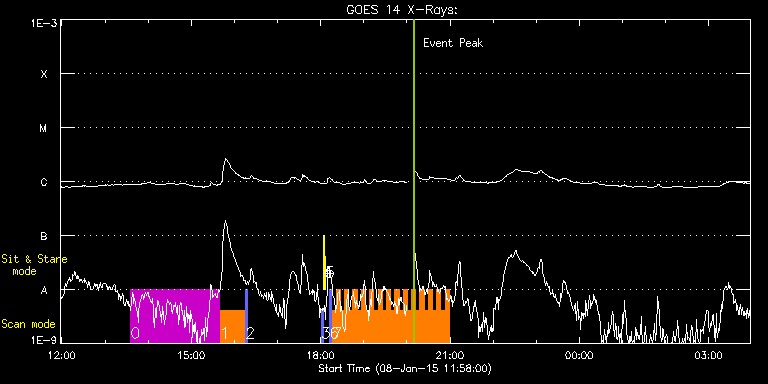 EIS Observation timeline overlay to GOES-Xray curve Code 1" 2" 40" 266" EIS Observations list for this event: STUDY ACRONYM ID DATE OBSERVED DESCRIPTION NOAA# TARGET 0 HPW021VEL240x512v1_b | 44579 | 2015/01/08 13:35:49 | Map of large fan loop of AR 12257 | 2257 | Active Region TIMELINE ID DATE OBSERVED FITS FILE XCEN (+W/-E) YCEN (+N/-S) DUR ----------------------------------------------------------------------------------------------------------------- 44579 | 2015/01/08 13:35:49.000 | eis_l0_20150108_133549.fits.gz | 68.26 | 253.21 | 2h3m49s 1 EL_FULL_CCD_RASTER | 44582 | 2015/01/08 15:39:56 | Deep exposure of large fan loop (full | | Active Region TIMELINE ID DATE OBSERVED FITS FILE XCEN (+W/-E) YCEN (+N/-S) DUR ----------------------------------------------------------------------------------------------------------------- 44582 | 2015/01/08 15:39:56.000 | eis_l0_20150108_153956.fits.gz | 94.73 | 355.90 | 35m12s 2 PRY_slot_context_v3 | 44583 | 2015/01/08 16:15:35 | Context raster for AR 12257 | 2257 | Active Region TIMELINE ID DATE OBSERVED FITS FILE XCEN (+W/-E) YCEN (+N/-S) DUR ----------------------------------------------------------------------------------------------------------------- 44583 | 2015/01/08 16:15:35.000 | eis_l0_20150108_161535.fits.gz | 116.08 | 152.98 | 2m56s 3 PRY_slot_contextLITE | 44560 | 2015/01/08 18:00:41 | alignment | 2255 | Active Region TIMELINE ID DATE OBSERVED FITS FILE XCEN (+W/-E) YCEN (+N/-S) DUR ----------------------------------------------------------------------------------------------------------------- 44560 | 2015/01/08 18:00:41.000 | eis_l0_20150108_180041.fits.gz | -34.43 | 2.65 | 2m56s 4 Alignment_266 | 44561 | 2015/01/08 18:03:56 | alignment | | Quiet Sun TIMELINE ID DATE OBSERVED FITS FILE XCEN (+W/-E) YCEN (+N/-S) DUR ----------------------------------------------------------------------------------------------------------------- 44561 | 2015/01/08 18:03:56.000 | eis_l0_20150108_180356.fits.gz | -151.78 | 3.50 | 1m22s 5 XRT_synop_AIA | 44562 | 2015/01/08 18:06:30 | alignment | | Quiet Sun TIMELINE ID DATE OBSERVED FITS FILE XCEN (+W/-E) YCEN (+N/-S) DUR ----------------------------------------------------------------------------------------------------------------- 44562 | 2015/01/08 18:06:30.000 | eis_l0_20150108_180630.fits.gz | -151.96 | 2.50 | 10s 6 PRY_slot_context_v3 | 44574 | 2015/01/08 18:12:27 | HOP 268 - transition region and corona | 2257 | Active Region TIMELINE ID DATE OBSERVED FITS FILE XCEN (+W/-E) YCEN (+N/-S) DUR ----------------------------------------------------------------------------------------------------------------- 44574 | 2015/01/08 18:12:27.000 | eis_l0_20150108_181227.fits.gz | 152.96 | 150.06 | 2m56s 7 Cor_Hole_Jet_v1 | 44575 | 2015/01/08 18:15:48 | HOP 268 - transition region and corona | | Quiet Sun TIMELINE ID DATE OBSERVED FITS FILE XCEN (+W/-E) YCEN (+N/-S) DUR ----------------------------------------------------------------------------------------------------------------- 44575 | 2015/01/08 18:15:48.000 | eis_l0_20150108_181548.fits.gz | 149.69 | 171.06 | 5m47s 44575 | 2015/01/08 18:21:38.000 | eis_l0_20150108_182138.fits.gz | 150.62 | 170.98 | 5m47s 44575 | 2015/01/08 18:27:28.000 | eis_l0_20150108_182728.fits.gz | 151.46 | 171.06 | 5m47s 44575 | 2015/01/08 18:33:18.000 | eis_l0_20150108_183318.fits.gz | 152.31 | 171.06 | 5m46s 44575 | 2015/01/08 18:39:07.000 | eis_l0_20150108_183907.fits.gz | 153.40 | 170.98 | 5m47s 44575 | 2015/01/08 18:44:57.000 | eis_l0_20150108_184457.fits.gz | 154.17 | 170.90 | 5m47s 44575 | 2015/01/08 18:50:47.000 | eis_l0_20150108_185047.fits.gz | 155.10 | 170.98 | 5m47s 44575 | 2015/01/08 18:56:36.000 | eis_l0_20150108_185636.fits.gz | 156.02 | 170.82 | 5m47s 44575 | 2015/01/08 19:02:26.000 | eis_l0_20150108_190226.fits.gz | 156.87 | 170.90 | 5m47s 44575 | 2015/01/08 19:08:15.000 | eis_l0_20150108_190815.fits.gz | 157.80 | 170.90 | 5m47s 44575 | 2015/01/08 19:14:05.000 | eis_l0_20150108_191405.fits.gz | 158.65 | 170.90 | 5m47s 44575 | 2015/01/08 19:19:55.000 | eis_l0_20150108_191955.fits.gz | 159.65 | 170.98 | 5m46s 44575 | 2015/01/08 19:25:44.000 | eis_l0_20150108_192544.fits.gz | 160.50 | 170.98 | 5m47s 44575 | 2015/01/08 19:31:34.000 | eis_l0_20150108_193134.fits.gz | 161.43 | 170.98 | 5m46s 44575 | 2015/01/08 19:37:23.000 | eis_l0_20150108_193723.fits.gz | 162.36 | 170.90 | 5m47s 44575 | 2015/01/08 19:43:13.000 | eis_l0_20150108_194313.fits.gz | 163.21 | 170.98 | 5m46s 44575 | 2015/01/08 19:49:02.000 | eis_l0_20150108_194902.fits.gz | 164.13 | 171.06 | 5m47s 44575 | 2015/01/08 19:54:52.000 | eis_l0_20150108_195452.fits.gz | 165.06 | 170.98 | 5m46s 44575 | 2015/01/08 20:00:41.000 | eis_l0_20150108_200041.fits.gz | 165.91 | 170.90 | 5m47s 44575 | 2015/01/08 20:06:31.000 | eis_l0_20150108_200631.fits.gz | 166.84 | 170.98 | 5m47s 44575 | 2015/01/08 20:12:21.000 | eis_l0_20150108_201221.fits.gz | 167.76 | 170.98 | 5m46s 44575 | 2015/01/08 20:18:10.000 | eis_l0_20150108_201810.fits.gz | 168.77 | 170.82 | 5m47s 44575 | 2015/01/08 20:24:00.000 | eis_l0_20150108_202400.fits.gz | 169.54 | 170.90 | 5m47s 44575 | 2015/01/08 20:29:50.000 | eis_l0_20150108_202950.fits.gz | 170.47 | 170.98 | 5m47s 44575 | 2015/01/08 20:35:39.000 | eis_l0_20150108_203539.fits.gz | 171.39 | 170.82 | 5m47s 44575 | 2015/01/08 20:41:29.000 | eis_l0_20150108_204129.fits.gz | 172.24 | 170.75 | 5m47s 44575 | 2015/01/08 20:47:19.000 | eis_l0_20150108_204719.fits.gz | 173.17 | 170.82 | 5m47s 44575 | 2015/01/08 20:53:09.000 | eis_l0_20150108_205309.fits.gz | 174.02 | 170.98 | 5m47s : Check study information : Download file : View thumbnails For this event, also check for: