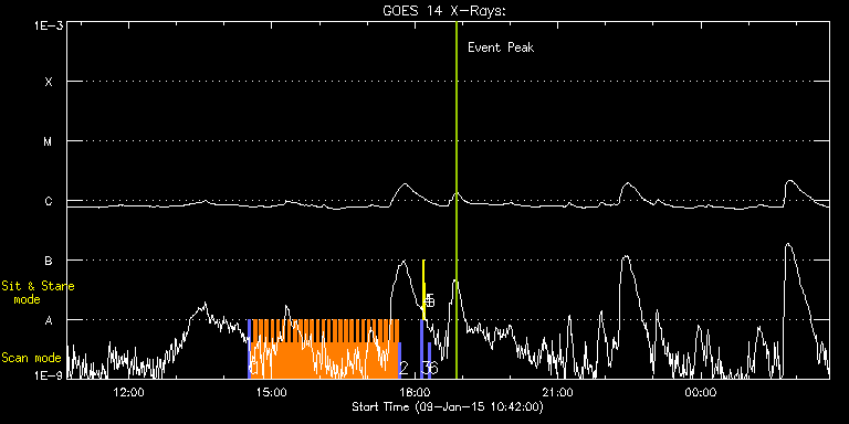 EIS Observation timeline overlay to GOES-Xray curve Code 1" 2" 40" 266" EIS Observations list for this event: STUDY ACRONYM ID DATE OBSERVED DESCRIPTION NOAA# TARGET 0 PRY_slot_context_v3 | 44557 | 2015/01/09 14:30:20 | HOP 274 - energy propagation from phot | 2257 | Active Region TIMELINE ID DATE OBSERVED FITS FILE XCEN (+W/-E) YCEN (+N/-S) DUR ----------------------------------------------------------------------------------------------------------------- 44557 | 2015/01/09 14:30:20.000 | eis_l0_20150109_143020.fits.gz | 337.50 | 148.12 | 2m57s 1 HH_Flare_raster_v6 | 44558 | 2015/01/09 14:33:42 | HOP 274 - energy propagation from phot | | Flare TIMELINE ID DATE OBSERVED FITS FILE XCEN (+W/-E) YCEN (+N/-S) DUR ----------------------------------------------------------------------------------------------------------------- 44558 | 2015/01/09 14:33:42.000 | eis_l0_20150109_143342.fits.gz | 347.54 | 172.05 | 3m32s 44558 | 2015/01/09 14:37:17.000 | eis_l0_20150109_143717.fits.gz | 348.00 | 171.89 | 3m31s 44558 | 2015/01/09 14:40:51.000 | eis_l0_20150109_144051.fits.gz | 348.54 | 171.89 | 3m31s 44558 | 2015/01/09 14:44:25.000 | eis_l0_20150109_144425.fits.gz | 349.08 | 171.97 | 3m31s 44558 | 2015/01/09 14:47:59.000 | eis_l0_20150109_144759.fits.gz | 349.62 | 172.05 | 3m31s 44558 | 2015/01/09 14:51:33.000 | eis_l0_20150109_145133.fits.gz | 350.17 | 171.89 | 3m32s 44558 | 2015/01/09 14:55:07.000 | eis_l0_20150109_145507.fits.gz | 350.63 | 171.97 | 3m32s 44558 | 2015/01/09 14:58:42.000 | eis_l0_20150109_145842.fits.gz | 351.17 | 171.89 | 3m31s 44558 | 2015/01/09 15:02:16.000 | eis_l0_20150109_150216.fits.gz | 351.79 | 171.89 | 3m32s 44558 | 2015/01/09 15:05:50.000 | eis_l0_20150109_150550.fits.gz | 352.17 | 171.74 | 3m32s 44558 | 2015/01/09 15:09:24.000 | eis_l0_20150109_150924.fits.gz | 352.71 | 171.97 | 3m32s 44558 | 2015/01/09 15:12:58.000 | eis_l0_20150109_151258.fits.gz | 353.33 | 172.05 | 3m32s 44558 | 2015/01/09 15:16:33.000 | eis_l0_20150109_151633.fits.gz | 353.87 | 171.89 | 3m31s 44558 | 2015/01/09 15:20:07.000 | eis_l0_20150109_152007.fits.gz | 354.26 | 171.97 | 3m32s 44558 | 2015/01/09 15:23:41.000 | eis_l0_20150109_152341.fits.gz | 354.72 | 171.89 | 3m32s 44558 | 2015/01/09 15:27:16.000 | eis_l0_20150109_152716.fits.gz | 355.42 | 171.74 | 3m32s 44558 | 2015/01/09 15:30:50.000 | eis_l0_20150109_153050.fits.gz | 355.96 | 171.97 | 3m31s 44558 | 2015/01/09 15:34:24.000 | eis_l0_20150109_153424.fits.gz | 356.50 | 171.82 | 3m32s 44558 | 2015/01/09 15:37:59.000 | eis_l0_20150109_153759.fits.gz | 356.96 | 171.82 | 3m32s 44558 | 2015/01/09 15:41:33.000 | eis_l0_20150109_154133.fits.gz | 357.43 | 171.82 | 3m33s 44558 | 2015/01/09 15:45:08.000 | eis_l0_20150109_154508.fits.gz | 357.97 | 171.89 | 3m32s 44558 | 2015/01/09 15:48:43.000 | eis_l0_20150109_154843.fits.gz | 358.51 | 171.74 | 3m31s 44558 | 2015/01/09 15:52:17.000 | eis_l0_20150109_155217.fits.gz | 359.05 | 171.82 | 3m31s 44558 | 2015/01/09 15:55:51.000 | eis_l0_20150109_155551.fits.gz | 359.59 | 171.74 | 3m31s 44558 | 2015/01/09 15:59:25.000 | eis_l0_20150109_155925.fits.gz | 360.05 | 171.82 | 3m32s 44558 | 2015/01/09 16:02:59.000 | eis_l0_20150109_160259.fits.gz | 360.67 | 171.66 | 3m32s 44558 | 2015/01/09 16:06:34.000 | eis_l0_20150109_160634.fits.gz | 361.13 | 171.74 | 3m31s 44558 | 2015/01/09 16:10:08.000 | eis_l0_20150109_161008.fits.gz | 361.60 | 171.74 | 3m31s 44558 | 2015/01/09 16:13:42.000 | eis_l0_20150109_161342.fits.gz | 362.14 | 171.82 | 3m31s 44558 | 2015/01/09 16:17:16.000 | eis_l0_20150109_161716.fits.gz | 362.68 | 171.66 | 3m32s 44558 | 2015/01/09 16:20:51.000 | eis_l0_20150109_162051.fits.gz | 363.22 | 171.58 | 3m31s 44558 | 2015/01/09 16:24:25.000 | eis_l0_20150109_162425.fits.gz | 363.68 | 171.74 | 3m31s 44558 | 2015/01/09 16:27:59.000 | eis_l0_20150109_162759.fits.gz | 364.22 | 171.51 | 3m32s 44558 | 2015/01/09 16:31:34.000 | eis_l0_20150109_163134.fits.gz | 364.77 | 171.58 | 3m31s 44558 | 2015/01/09 16:35:08.000 | eis_l0_20150109_163508.fits.gz | 365.30 | 171.58 | 3m31s 44558 | 2015/01/09 16:38:42.000 | eis_l0_20150109_163842.fits.gz | 365.85 | 171.51 | 3m31s 44558 | 2015/01/09 16:42:16.000 | eis_l0_20150109_164216.fits.gz | 366.39 | 171.58 | 3m32s 44558 | 2015/01/09 16:45:51.000 | eis_l0_20150109_164551.fits.gz | 366.85 | 171.51 | 3m31s 44558 | 2015/01/09 16:49:25.000 | eis_l0_20150109_164925.fits.gz | 367.39 | 171.43 | 3m31s 44558 | 2015/01/09 16:52:59.000 | eis_l0_20150109_165259.fits.gz | 367.85 | 171.66 | 3m32s 44558 | 2015/01/09 16:56:34.000 | eis_l0_20150109_165634.fits.gz | 368.39 | 171.51 | 3m31s 44558 | 2015/01/09 17:00:08.000 | eis_l0_20150109_170008.fits.gz | 368.94 | 171.66 | 3m31s 44558 | 2015/01/09 17:03:42.000 | eis_l0_20150109_170342.fits.gz | 369.48 | 171.58 | 3m32s 44558 | 2015/01/09 17:07:17.000 | eis_l0_20150109_170717.fits.gz | 369.94 | 171.58 | 3m31s 44558 | 2015/01/09 17:10:51.000 | eis_l0_20150109_171051.fits.gz | 370.48 | 171.43 | 3m32s 44558 | 2015/01/09 17:14:25.000 | eis_l0_20150109_171425.fits.gz | 371.10 | 171.58 | 3m32s 44558 | 2015/01/09 17:18:00.000 | eis_l0_20150109_171800.fits.gz | 371.56 | 171.66 | 3m31s 44558 | 2015/01/09 17:21:33.000 | eis_l0_20150109_172133.fits.gz | 372.03 | 171.43 | 3m32s 44558 | 2015/01/09 17:25:08.000 | eis_l0_20150109_172508.fits.gz | 372.64 | 171.51 | 3m31s 44558 | 2015/01/09 17:28:42.000 | eis_l0_20150109_172842.fits.gz | 373.11 | 171.66 | 3m31s 44558 | 2015/01/09 17:32:15.000 | eis_l0_20150109_173215.fits.gz | 373.57 | 171.66 | 3m32s 44558 | 2015/01/09 17:35:50.000 | eis_l0_20150109_173550.fits.gz | 374.11 | 171.51 | 3m31s 2 PRY_slot_context_v3 | 44559 | 2015/01/09 17:39:32 | HOP 274 - energy propagation from the | 2257 | Active Region TIMELINE ID DATE OBSERVED FITS FILE XCEN (+W/-E) YCEN (+N/-S) DUR ----------------------------------------------------------------------------------------------------------------- 44559 | 2015/01/09 17:39:32.000 | eis_l0_20150109_173932.fits.gz | 365.15 | 147.35 | 2m56s 3 PRY_slot_contextLITE | 44563 | 2015/01/09 18: