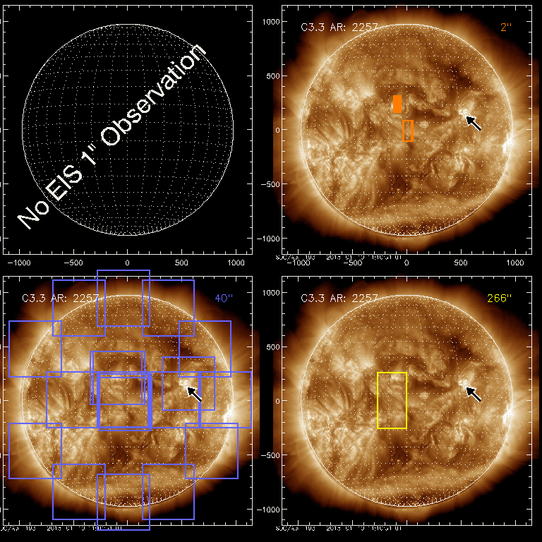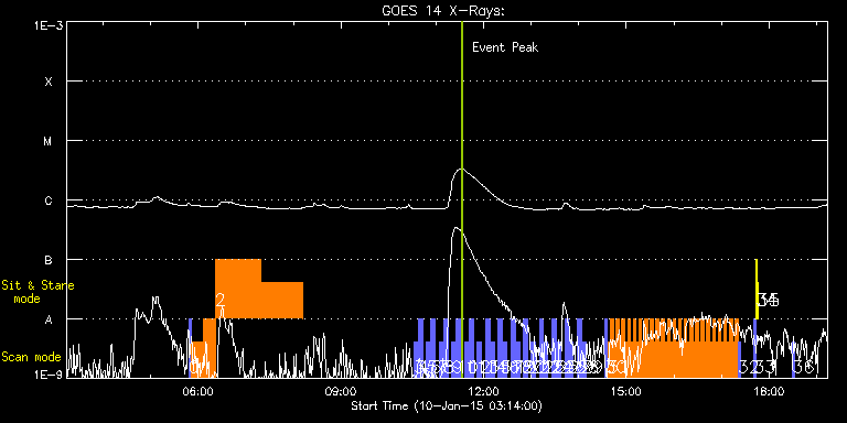EIS Observation timeline overlay to GOES-Xray curve Code 1" 2" 40" 266" EIS Observations list for this event: STUDY ACRONYM ID DATE OBSERVED DESCRIPTION NOAA# TARGET 0 PRY_slot_context_v3 | 44566 | 2015/01/10 05:48:20 | HOP 266 - small-scale reconnection in | | Active Region TIMELINE ID DATE OBSERVED FITS FILE XCEN (+W/-E) YCEN (+N/-S) DUR ----------------------------------------------------------------------------------------------------------------- 44566 | 2015/01/10 05:48:20.000 | eis_l0_20150110_054820.fits.gz | -20.06 | -35.28 | 2m56s 1 Cool_loop_resp_v2 | 44567 | 2015/01/10 05:51:42 | HOP 266 - small-scale reconnection in | | Active Region TIMELINE ID DATE OBSERVED FITS FILE XCEN (+W/-E) YCEN (+N/-S) DUR ----------------------------------------------------------------------------------------------------------------- 44567 | 2015/01/10 05:51:42.000 | eis_l0_20150110_055142.fits.gz | 10.60 | -13.43 | 14m47s 44567 | 2015/01/10 06:06:31.000 | eis_l0_20150110_060631.fits.gz | 12.76 | -13.36 | 14m47s 2 Cool_loop_stare | 44568 | 2015/01/10 06:21:23 | HOP 266 - small-scale reconnection in | | Quiet Sun TIMELINE ID DATE OBSERVED FITS FILE XCEN (+W/-E) YCEN (+N/-S) DUR ----------------------------------------------------------------------------------------------------------------- 44568 | 2015/01/10 06:21:23.000 | eis_l0_20150110_062123.fits.gz | 46.10 | -12.43 | 57m7s 44568 | 2015/01/10 07:18:33.000 | eis_l0_20150110_071833.fits.gz | 55.14 | -12.36 | 52m59s 3 full_sun_slot_scan_2 | 44584 | 2015/01/10 10:32:21 | HOP130 Multi-temperature Full Disk Slo | 2253 | Quiet Sun TIMELINE ID DATE OBSERVED FITS FILE XCEN (+W/-E) YCEN (+N/-S) DUR ----------------------------------------------------------------------------------------------------------------- 44584 | 2015/01/10 10:32:21.000 | eis_l0_20150110_103221.fits.gz | 901.58 | 3.58 | 5m26s 4 full_sun_slot_scan_2 | 44586 | 2015/01/10 10:37:53 | HOP130 Multi-temperature Full Disk Slo | 2253 | Quiet Sun TIMELINE ID DATE OBSERVED FITS FILE XCEN (+W/-E) YCEN (+N/-S) DUR ----------------------------------------------------------------------------------------------------------------- 44586 | 2015/01/10 10:37:53.000 | eis_l0_20150110_103753.fits.gz | 901.58 | 3.50 | 5m27s 5 full_sun_slot_scan_2 | 44591 | 2015/01/10 10:48:14 | HOP130 Multi-temperature Full Disk Slo | 2255 | Quiet Sun TIMELINE ID DATE OBSERVED FITS FILE XCEN (+W/-E) YCEN (+N/-S) DUR ----------------------------------------------------------------------------------------------------------------- 44591 | 2015/01/10 10:48:14.000 | eis_l0_20150110_104814.fits.gz | 433.46 | 3.42 | 5m27s 6 full_sun_slot_scan_2 | 44592 | 2015/01/10 10:53:46 | HOP130 Multi-temperature Full Disk Slo | 2255 | Quiet Sun TIMELINE ID DATE OBSERVED FITS FILE XCEN (+W/-E) YCEN (+N/-S) DUR ----------------------------------------------------------------------------------------------------------------- 44592 | 2015/01/10 10:53:46.000 | eis_l0_20150110_105346.fits.gz | 433.53 | 3.35 | 5m27s 7 full_sun_slot_scan_2 | 44593 | 2015/01/10 11:04:14 | HOP130 Multi-temperature Full Disk Slo | 2260 | Quiet Sun TIMELINE ID DATE OBSERVED FITS FILE XCEN (+W/-E) YCEN (+N/-S) DUR ----------------------------------------------------------------------------------------------------------------- 44593 | 2015/01/10 11:04:14.000 | eis_l0_20150110_110414.fits.gz | -34.51 | 3.50 | 5m27s 8 full_sun_slot_scan_2 | 44594 | 2015/01/10 11:09:46 | HOP130 Multi-temperature Full Disk Slo | 2260 | Quiet Sun TIMELINE ID DATE OBSERVED FITS FILE XCEN (+W/-E) YCEN (+N/-S) DUR ----------------------------------------------------------------------------------------------------------------- 44594 | 2015/01/10 11:09:46.000 | eis_l0_20150110_110946.fits.gz | -34.51 | 3.58 | 5m28s 9 full_sun_slot_scan_2 | 44595 | 2015/01/10 11:20:14 | HOP130 Multi-temperature Full Disk Slo | | Quiet Sun TIMELINE ID DATE OBSERVED FITS FILE XCEN (+W/-E) YCEN (+N/-S) DUR ----------------------------------------------------------------------------------------------------------------- 44595 | 2015/01/10 11:20:14.000 | eis_l0_20150110_112014.fits.gz | -502.48 | 3.58 | 5m27s 10 full_sun_slot_scan_2 | 44596 | 2015/01/10 11:25:46 | HOP130 Multi-temperature Full Disk Slo | | Quiet Sun TIMELINE ID DATE OBSERVED FITS FILE XCEN (+W/-E) YCEN (+N/-S) DUR ----------------------------------------------------------------------------------------------------------------- 44596 | 2015/01/10 11:25:46.000 | eis_l0_20150110_112546.fits.gz | -502.48 | 3.65 | 5m27s 11 full_sun_slot_scan_2 | 44597 | 2015/01/10 11:36:14 | HOP130 Multi-temperature Full Disk Slo | | Quiet Sun TIMELINE ID DATE OBSERVED FITS FILE XCEN (+W/-E) YCEN (+N/-S) DUR ----------------------------------------------------------------------------------------------------------------- 44597 | 2015/01/10 11:36:14.000 | eis_l0_20150110_113614.fits.gz | -9903.91 | -9959.20 | 5m27s 12 full_sun_slot_scan_2 | 44598 | 2015/01/10 11:41:46 | HOP130 Multi-temperature Full Disk Slo | | Quiet Sun TIMELINE ID DATE OBSERVED FITS FILE XCEN (+W/-E) YCEN (+N/-S) DUR ----------------------------------------------------------------------------------------------------------------- 44598 | 2015/01/10 11:41:46.000 | eis_l0_20150110_114146.fits.gz | -9903.91 | -9959.20 | 5m27s 13 full_sun_slot_scan_2 | 44587 | 2015/01/10 11:52:14 | HOP130 Multi-temperature Full Disk Slo | | Quiet Sun TIMELINE ID DATE OBSERVED FITS FILE XCEN (+W/-E) YCEN (+N/-S) DUR ----------------------------------------------------------------------------------------------------------------- 44587 | 2015/01/10 11:52:14.000 | eis_l0_20150110_115214.fits.gz | 715.49 | 473.63 | 5m27s 14 full_sun_slot_scan_2 | 44589 | 2015/01/10 12:02:14 | HOP130 Multi-temperature Full Disk Slo | | Quiet Sun TIMELINE ID DATE OBSERVED FITS FILE XCEN (+W/-E) YCEN (+N/-S) DUR ----------------------------------------------------------------------------------------------------------------- 44589 | 2015/01/10 12:02:14.000 | 