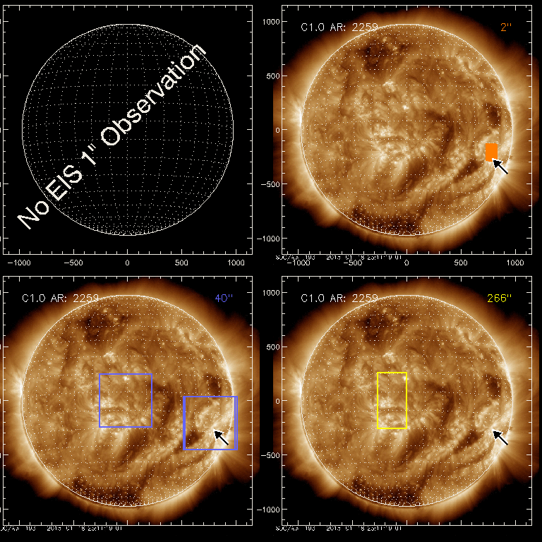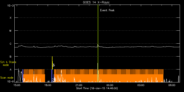EIS Observation timeline overlay to GOES-Xray curve Code 1" 2" 40" 266" EIS Observations list for this event: STUDY ACRONYM ID DATE OBSERVED DESCRIPTION NOAA# TARGET 0 PRY_slot_context_v3 | 44733 | 2015/01/18 15:33:34 | AR12259 observation | 2259 | Active Region TIMELINE ID DATE OBSERVED FITS FILE XCEN (+W/-E) YCEN (+N/-S) DUR ----------------------------------------------------------------------------------------------------------------- 44733 | 2015/01/18 15:33:34.000 | eis_l0_20150118_153334.fits.gz | 755.56 | -209.22 | 2m56s 1 HH_Flare_raster_v6 | 44734 | 2015/01/18 15:37:23 | AR12259 observation | | Flare TIMELINE ID DATE OBSERVED FITS FILE XCEN (+W/-E) YCEN (+N/-S) DUR ----------------------------------------------------------------------------------------------------------------- 44734 | 2015/01/18 15:37:23.000 | eis_l0_20150118_153723.fits.gz | 753.23 | -208.15 | 3m32s 44734 | 2015/01/18 15:40:58.000 | eis_l0_20150118_154058.fits.gz | 753.54 | -208.30 | 3m31s 44734 | 2015/01/18 15:44:32.000 | eis_l0_20150118_154432.fits.gz | 753.93 | -208.30 | 3m31s 44734 | 2015/01/18 15:48:06.000 | eis_l0_20150118_154806.fits.gz | 754.24 | -208.53 | 3m32s 44734 | 2015/01/18 15:51:41.000 | eis_l0_20150118_155141.fits.gz | 754.55 | -208.46 | 3m32s 44734 | 2015/01/18 15:55:15.000 | eis_l0_20150118_155515.fits.gz | 754.86 | -208.38 | 3m32s 44734 | 2015/01/18 15:58:50.000 | eis_l0_20150118_155850.fits.gz | 755.17 | -208.53 | 3m31s 44734 | 2015/01/18 16:02:24.000 | eis_l0_20150118_160224.fits.gz | 755.40 | -208.61 | 3m32s 44734 | 2015/01/18 16:05:58.000 | eis_l0_20150118_160558.fits.gz | 755.78 | -208.61 | 3m32s 44734 | 2015/01/18 16:09:32.000 | eis_l0_20150118_160932.fits.gz | 756.02 | -208.69 | 3m32s 44734 | 2015/01/18 16:13:07.000 | eis_l0_20150118_161307.fits.gz | 756.33 | -208.61 | 3m31s 44734 | 2015/01/18 16:16:41.000 | eis_l0_20150118_161641.fits.gz | 756.63 | -208.69 | 3m31s 44734 | 2015/01/18 16:20:15.000 | eis_l0_20150118_162015.fits.gz | 756.94 | -208.61 | 3m31s 44734 | 2015/01/18 16:23:49.000 | eis_l0_20150118_162349.fits.gz | 757.25 | -208.61 | 3m31s 44734 | 2015/01/18 16:27:23.000 | eis_l0_20150118_162723.fits.gz | 757.48 | -208.61 | 3m32s 44734 | 2015/01/18 16:30:58.000 | eis_l0_20150118_163058.fits.gz | 757.87 | -208.76 | 3m31s 44734 | 2015/01/18 16:34:32.000 | eis_l0_20150118_163432.fits.gz | 758.18 | -208.84 | 3m32s 44734 | 2015/01/18 16:38:07.000 | eis_l0_20150118_163807.fits.gz | 758.49 | -208.61 | 3m31s 44734 | 2015/01/18 16:41:41.000 | eis_l0_20150118_164141.fits.gz | 758.72 | -208.84 | 3m31s 44734 | 2015/01/18 16:45:15.000 | eis_l0_20150118_164515.fits.gz | 759.03 | -208.92 | 3m32s 44734 | 2015/01/18 16:48:50.000 | eis_l0_20150118_164850.fits.gz | 759.41 | -209.07 | 3m31s 44734 | 2015/01/18 16:52:24.000 | eis_l0_20150118_165224.fits.gz | 759.72 | -209.00 | 3m20s 44734 | 2015/01/18 16:55:58.000 | eis_l0_20150118_165558.fits.gz | 759.96 | -209.00 | 3m32s 44734 | 2015/01/18 16:59:32.000 | eis_l0_20150118_165932.fits.gz | 760.27 | -209.07 | 3m32s 44734 | 2015/01/18 17:03:07.000 | eis_l0_20150118_170307.fits.gz | 760.65 | -209.23 | 3m32s 44734 | 2015/01/18 17:06:42.000 | eis_l0_20150118_170642.fits.gz | 760.96 | -209.15 | 3m31s 44734 | 2015/01/18 17:10:16.000 | eis_l0_20150118_171016.fits.gz | 761.27 | -209.30 | 3m31s 44734 | 2015/01/18 17:13:50.000 | eis_l0_20150118_171350.fits.gz | 761.58 | -209.15 | 3m31s 44734 | 2015/01/18 17:17:24.000 | eis_l0_20150118_171724.fits.gz | 761.89 | -209.23 | 3m32s 44734 | 2015/01/18 17:20:58.000 | eis_l0_20150118_172058.fits.gz | 762.12 | -209.23 | 3m32s 44734 | 2015/01/18 17:24:33.000 | eis_l0_20150118_172433.fits.gz | 762.43 | -209.23 | 3m31s 44734 | 2015/01/18 17:28:07.000 | eis_l0_20150118_172807.fits.gz | 762.81 | -209.23 | 3m31s 44734 | 2015/01/18 17:31:41.000 | eis_l0_20150118_173141.fits.gz | 763.05 | -209.38 | 3m32s 44734 | 2015/01/18 17:35:15.000 | eis_l0_20150118_173515.fits.gz | 763.35 | -209.54 | 3m32s 44734 | 2015/01/18 17:38:50.000 | eis_l0_20150118_173850.fits.gz | 763.66 | -209.61 | 3m31s 2 PRY_slot_contextLITE | 44693 | 2015/01/18 18:21:50 | alignment | | Active Region TIMELINE ID DATE OBSERVED FITS FILE XCEN (+W/-E) YCEN (+N/-S) DUR ----------------------------------------------------------------------------------------------------------------- 44693 | 2015/01/18 18:21:50.000 | eis_l0_20150118_182150.fits.gz | -15.21 | -0.58 | 2m56s 3 Alignment_266 | 44694 | 2015/01/18 18:25:03 | alignment | | Quiet Sun TIMELINE ID DATE OBSERVED FITS FILE XCEN (+W/-E) YCEN (+N/-S) DUR ----------------------------------------------------------------------------------------------------------------- 44694 | 2015/01/18 18:25:03.000 | eis_l0_20150118_182503.fits.gz | -132.49 | -0.50 | 1m22s 4 XRT_synop_AIA | 44695 | 2015/01/18 18:27:36 | alignment | | Quiet Sun TIMELINE ID DATE OBSERVED FITS FILE XCEN (+W/-E) YCEN (+N/-S) DUR ----------------------------------------------------------------------------------------------------------------- 44695 | 2015/01/18 18:27:36.000 | eis_l0_20150118_182736.fits.gz | -132.57 | -0.50 | 11s 5 PRY_slot_context_v3 | 44736 | 2015/01/18 18:33:55 | AR12259 observation | 2259 | Active Region TIMELINE ID DATE OBSERVED FITS FILE XCEN (+W/-E) YCEN (+N/-S) DUR ----------------------------------------------------------------------------------------------------------------- 44736 | 2015/01/18 18:33:55.000 | eis_l0_20150118_183355.fits.gz | 770.78 | -211.15 | 2m56s 6 HH_Flare_raster_v6 | 44737 | 2015/01/18 18:37:16 | AR12259 observation | | Flare TIMELINE ID DATE OBSERVED FITS FILE XCEN (+W/-E) YCEN (+N/-S) DUR ----------------------------------------------------------------------------------------------------------------- 44737 | 2015/01/18 18:37:16.000 | eis_l0_20150118_183716.fits.gz | 768.53 | -210.00 | 3m31s 44737 | 2015/01/18 18:40:50.000 | eis_l0_20150118_184050.fits.gz | 768.84 | -210.00 | 3m31s 44737 | 2015/01/18 18:44:24.000 | eis_l0_20150118_184424.fits.gz | 769.07 | -210.15 | 3m32s 44737 | 2015/01/18 18:47:59.000 | eis