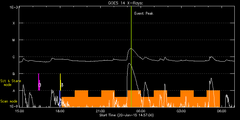EIS Observation timeline overlay to GOES-Xray curve Code 1" 2" 40" 266" EIS Observations list for this event: STUDY ACRONYM ID DATE OBSERVED DESCRIPTION NOAA# TARGET 0 regcal071 | 44784 | 2015/01/20 16:22:42 | Dark exposures, CCD bottom rows (100s | | Engineering TIMELINE ID DATE OBSERVED FITS FILE XCEN (+W/-E) YCEN (+N/-S) DUR ----------------------------------------------------------------------------------------------------------------- 44784 | 2015/01/20 16:22:42.000 | eis_l0_20150120_162242.fits.gz | 914.45 | -215.43 | 3m22s 1 regcal072 | 44812 | 2015/01/20 16:26:31 | Dark exposures, top CCD rows (100s exp | | Engineering TIMELINE ID DATE OBSERVED FITS FILE XCEN (+W/-E) YCEN (+N/-S) DUR ----------------------------------------------------------------------------------------------------------------- 44812 | 2015/01/20 16:26:31.000 | eis_l0_20150120_162631.fits.gz | 914.52 | 295.57 | 3m22s 2 PRY_slot_contextLITE | 44760 | 2015/01/20 17:57:51 | alignment | 2266 | Active Region TIMELINE ID DATE OBSERVED FITS FILE XCEN (+W/-E) YCEN (+N/-S) DUR ----------------------------------------------------------------------------------------------------------------- 44760 | 2015/01/20 17:57:51.000 | eis_l0_20150120_175751.fits.gz | -32.01 | 0.42 | 2m57s 3 Alignment_266 | 44761 | 2015/01/20 18:01:06 | alignment | | Quiet Sun TIMELINE ID DATE OBSERVED FITS FILE XCEN (+W/-E) YCEN (+N/-S) DUR ----------------------------------------------------------------------------------------------------------------- 44761 | 2015/01/20 18:01:06.000 | eis_l0_20150120_180106.fits.gz | -149.37 | 0.35 | 1m22s 4 XRT_synop_AIA | 44762 | 2015/01/20 18:03:13 | alignment | | Quiet Sun TIMELINE ID DATE OBSERVED FITS FILE XCEN (+W/-E) YCEN (+N/-S) DUR ----------------------------------------------------------------------------------------------------------------- 44762 | 2015/01/20 18:03:13.000 | eis_l0_20150120_180313.fits.gz | -149.29 | 0.50 | 10s 5 ISSI_jet_1 | 44786 | 2015/01/20 18:07:51 | HOP232 | | Quiet Sun TIMELINE ID DATE OBSERVED FITS FILE XCEN (+W/-E) YCEN (+N/-S) DUR ----------------------------------------------------------------------------------------------------------------- 44786 | 2015/01/20 18:07:51.000 | eis_l0_20150120_180751.fits.gz | 67.06 | -844.05 | 58m36s 44786 | 2015/01/20 19:06:30.000 | eis_l0_20150120_190630.fits.gz | 70.00 | -844.05 | 58m36s 44786 | 2015/01/20 20:05:10.000 | eis_l0_20150120_200510.fits.gz | 73.01 | -843.89 | 58m36s 44786 | 2015/01/20 21:03:49.000 | eis_l0_20150120_210349.fits.gz | 75.95 | -843.74 | 58m36s 44786 | 2015/01/20 22:02:29.000 | eis_l0_20150120_220229.fits.gz | 78.96 | -844.05 | 58m36s 44786 | 2015/01/20 23:01:08.000 | eis_l0_20150120_230108.fits.gz | 82.05 | -843.89 | 58m36s 44786 | 2015/01/20 23:59:47.000 | eis_l0_20150120_235947.fits.gz | 84.98 | -844.20 | 58m37s 44786 | 2015/01/21 00:58:27.000 | eis_l0_20150121_005827.fits.gz | 88.07 | -843.97 | 58m36s 44786 | 2015/01/21 01:57:06.000 | eis_l0_20150121_015706.fits.gz | 91.01 | -843.97 | 58m36s 44786 | 2015/01/21 02:55:46.000 | eis_l0_20150121_025546.fits.gz | 93.94 | -844.20 | 58m36s 44786 | 2015/01/21 03:54:25.000 | eis_l0_20150121_035425.fits.gz | 96.96 | -844.13 | 58m36s 44786 | 2015/01/21 04:53:04.000 | eis_l0_20150121_045304.fits.gz | 99.82 | -844.20 | 58m37s : Check study information : Download file : View thumbnails For this event, also check for: