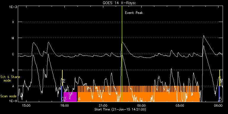 EIS Observation timeline overlay to GOES-Xray curve Code 1" 2" 40" 266" EIS Observations list for this event: STUDY ACRONYM ID DATE OBSERVED DESCRIPTION NOAA# TARGET 0 PRY_slot_contextLITE | 44763 | 2015/01/21 17:44:28 | alignment | | Active Region TIMELINE ID DATE OBSERVED FITS FILE XCEN (+W/-E) YCEN (+N/-S) DUR ----------------------------------------------------------------------------------------------------------------- 44763 | 2015/01/21 17:44:28.000 | eis_l0_20150121_174428.fits.gz | -31.86 | 0.58 | 2m56s 1 Alignment_266 | 44764 | 2015/01/21 17:47:42 | alignment | | Quiet Sun TIMELINE ID DATE OBSERVED FITS FILE XCEN (+W/-E) YCEN (+N/-S) DUR ----------------------------------------------------------------------------------------------------------------- 44764 | 2015/01/21 17:47:42.000 | eis_l0_20150121_174742.fits.gz | -149.29 | 0.58 | 1m22s 2 XRT_synop_AIA | 44765 | 2015/01/21 17:49:49 | alignment | | Quiet Sun TIMELINE ID DATE OBSERVED FITS FILE XCEN (+W/-E) YCEN (+N/-S) DUR ----------------------------------------------------------------------------------------------------------------- 44765 | 2015/01/21 17:49:49.000 | eis_l0_20150121_174949.fits.gz | -149.21 | 0.42 | 11s 3 HPW021_VEL_120x512v1 | 44790 | 2015/01/21 17:54:34 | AR studies | | Active Region TIMELINE ID DATE OBSERVED FITS FILE XCEN (+W/-E) YCEN (+N/-S) DUR ----------------------------------------------------------------------------------------------------------------- 44790 | 2015/01/21 17:54:34.000 | eis_l0_20150121_175434.fits.gz | -725.77 | 38.91 | 1h1m53s 4 HH_Flare_raster_v6 | 44791 | 2015/01/21 19:01:26 | flare study | | Flare TIMELINE ID DATE OBSERVED FITS FILE XCEN (+W/-E) YCEN (+N/-S) DUR ----------------------------------------------------------------------------------------------------------------- 44791 | 2015/01/21 19:01:26.000 | eis_l0_20150121_190126.fits.gz | -769.86 | 189.68 | 3m32s 44791 | 2015/01/21 19:05:01.000 | eis_l0_20150121_190501.fits.gz | -769.47 | 189.45 | 3m31s 44791 | 2015/01/21 19:08:35.000 | eis_l0_20150121_190835.fits.gz | -769.24 | 189.76 | 3m31s 44791 | 2015/01/21 19:12:09.000 | eis_l0_20150121_191209.fits.gz | -768.70 | 189.83 | 3m32s 44791 | 2015/01/21 19:15:44.000 | eis_l0_20150121_191544.fits.gz | -768.39 | 189.83 | 3m31s 44791 | 2015/01/21 19:19:18.000 | eis_l0_20150121_191918.fits.gz | -768.08 | 189.83 | 3m31s 44791 | 2015/01/21 19:22:52.000 | eis_l0_20150121_192252.fits.gz | -767.69 | 189.83 | 3m31s 44791 | 2015/01/21 19:26:26.000 | eis_l0_20150121_192626.fits.gz | -767.31 | 190.14 | 3m32s 44791 | 2015/01/21 19:30:01.000 | eis_l0_20150121_193001.fits.gz | -767.00 | 189.99 | 3m31s 44791 | 2015/01/21 19:33:35.000 | eis_l0_20150121_193335.fits.gz | -766.69 | 190.07 | 3m31s 44791 | 2015/01/21 19:37:09.000 | eis_l0_20150121_193709.fits.gz | -766.46 | 190.07 | 3m31s 44791 | 2015/01/21 19:40:43.000 | eis_l0_20150121_194043.fits.gz | -765.99 | 190.14 | 3m31s 44791 | 2015/01/21 19:44:17.000 | eis_l0_20150121_194417.fits.gz | -765.68 | 190.14 | 3m31s 44791 | 2015/01/21 19:47:51.000 | eis_l0_20150121_194751.fits.gz | -765.30 | 190.22 | 3m32s 44791 | 2015/01/21 19:51:26.000 | eis_l0_20150121_195126.fits.gz | -764.91 | 190.38 | 3m32s 44791 | 2015/01/21 19:55:01.000 | eis_l0_20150121_195501.fits.gz | -764.45 | 190.30 | 3m31s 44791 | 2015/01/21 19:58:35.000 | eis_l0_20150121_195835.fits.gz | -764.22 | 190.45 | 3m32s 44791 | 2015/01/21 20:02:09.000 | eis_l0_20150121_200209.fits.gz | -763.83 | 190.38 | 3m32s 44791 | 2015/01/21 20:05:43.000 | eis_l0_20150121_200543.fits.gz | -763.60 | 190.53 | 3m32s 44791 | 2015/01/21 20:09:18.000 | eis_l0_20150121_200918.fits.gz | -763.14 | 190.38 | 3m31s 44791 | 2015/01/21 20:12:52.000 | eis_l0_20150121_201252.fits.gz | -762.75 | 190.68 | 3m32s 44791 | 2015/01/21 20:16:27.000 | eis_l0_20150121_201627.fits.gz | -762.44 | 190.61 | 3m31s 44791 | 2015/01/21 20:20:01.000 | eis_l0_20150121_202001.fits.gz | -762.05 | 190.61 | 3m32s 44791 | 2015/01/21 20:23:36.000 | eis_l0_20150121_202336.fits.gz | -761.74 | 190.45 | 3m31s 44791 | 2015/01/21 20:27:10.000 | eis_l0_20150121_202710.fits.gz | -761.44 | 190.53 | 3m31s 44791 | 2015/01/21 20:30:43.000 | eis_l0_20150121_203043.fits.gz | -761.05 | 190.61 | 3m32s 44791 | 2015/01/21 20:34:18.000 | eis_l0_20150121_203418.fits.gz | -760.66 | 190.68 | 3m31s 44791 | 2015/01/21 20:37:52.000 | eis_l0_20150121_203752.fits.gz | -760.28 | 190.91 | 3m31s 44791 | 2015/01/21 20:41:26.000 | eis_l0_20150121_204126.fits.gz | -759.89 | 190.91 | 3m31s 44791 | 2015/01/21 20:45:00.000 | eis_l0_20150121_204500.fits.gz | -759.58 | 190.68 | 3m32s 44791 | 2015/01/21 20:48:35.000 | eis_l0_20150121_204835.fits.gz | -759.35 | 190.99 | 3m31s 44791 | 2015/01/21 20:52:09.000 | eis_l0_20150121_205209.fits.gz | -758.81 | 190.91 | 3m31s 44791 | 2015/01/21 20:55:43.000 | eis_l0_20150121_205543.fits.gz | -758.50 | 191.07 | 3m31s 44791 | 2015/01/21 20:59:17.000 | eis_l0_20150121_205917.fits.gz | -758.11 | 190.99 | 3m32s 44791 | 2015/01/21 21:02:51.000 | eis_l0_20150121_210251.fits.gz | -757.88 | 190.91 | 3m31s 44791 | 2015/01/21 21:06:25.000 | eis_l0_20150121_210625.fits.gz | -757.50 | 191.15 | 3m32s 44791 | 2015/01/21 21:10:00.000 | eis_l0_20150121_211000.fits.gz | -757.03 | 191.22 | 3m31s 44791 | 2015/01/21 21:13:34.000 | eis_l0_20150121_211334.fits.gz | -756.72 | 191.22 | 3m31s 44791 | 2015/01/21 21:17:08.000 | eis_l0_20150121_211708.fits.gz | -756.41 | 191.22 | 3m32s 44791 | 2015/01/21 21:20:43.000 | eis_l0_20150121_212043.fits.gz | -755.95 | 191.22 | 3m32s 44791 | 2015/01/21 21:24:18.000 | eis_l0_20150121_212418.fits.gz | -755.72 | 191.38 | 3m31s 44791 | 2015/01/21 21:27:52.000 | eis_l0_20150121_212752.fits.gz | -755.26 | 191.46 | 3m32s 44791 | 2015/01/21 21:31:27.000 | eis_l0_20150121_213127.fits.gz | -754.95 | 191.38 | 3m32s 44791 | 2015/01/21 21:35:01.000 | eis_l0_20150121_213501.fits.gz | -754.56 | 191.46 | 3m32s 44791 | 2015/01/21 21:38:35.000 | eis_l0_20150121_213835.fits.gz | -754.17 | 191.53 | 3m32s 44791 | 2015/01/21 21:42:10.000 | eis_l0_2015012