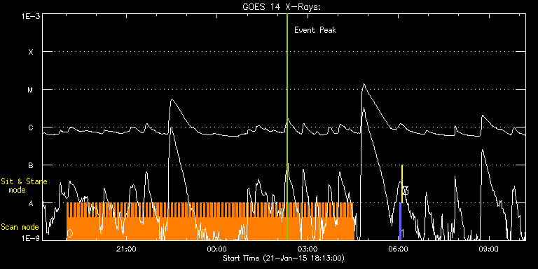 EIS Observation timeline overlay to GOES-Xray curve Code 1" 2" 40" 266" EIS Observations list for this event: STUDY ACRONYM ID DATE OBSERVED DESCRIPTION NOAA# TARGET 0 HH_Flare_raster_v6 | 44791 | 2015/01/21 19:01:26 | flare study | | Flare TIMELINE ID DATE OBSERVED FITS FILE XCEN (+W/-E) YCEN (+N/-S) DUR ----------------------------------------------------------------------------------------------------------------- 44791 | 2015/01/21 19:01:26.000 | eis_l0_20150121_190126.fits.gz | -769.86 | 189.68 | 3m32s 44791 | 2015/01/21 19:05:01.000 | eis_l0_20150121_190501.fits.gz | -769.47 | 189.45 | 3m31s 44791 | 2015/01/21 19:08:35.000 | eis_l0_20150121_190835.fits.gz | -769.24 | 189.76 | 3m31s 44791 | 2015/01/21 19:12:09.000 | eis_l0_20150121_191209.fits.gz | -768.70 | 189.83 | 3m32s 44791 | 2015/01/21 19:15:44.000 | eis_l0_20150121_191544.fits.gz | -768.39 | 189.83 | 3m31s 44791 | 2015/01/21 19:19:18.000 | eis_l0_20150121_191918.fits.gz | -768.08 | 189.83 | 3m31s 44791 | 2015/01/21 19:22:52.000 | eis_l0_20150121_192252.fits.gz | -767.69 | 189.83 | 3m31s 44791 | 2015/01/21 19:26:26.000 | eis_l0_20150121_192626.fits.gz | -767.31 | 190.14 | 3m32s 44791 | 2015/01/21 19:30:01.000 | eis_l0_20150121_193001.fits.gz | -767.00 | 189.99 | 3m31s 44791 | 2015/01/21 19:33:35.000 | eis_l0_20150121_193335.fits.gz | -766.69 | 190.07 | 3m31s 44791 | 2015/01/21 19:37:09.000 | eis_l0_20150121_193709.fits.gz | -766.46 | 190.07 | 3m31s 44791 | 2015/01/21 19:40:43.000 | eis_l0_20150121_194043.fits.gz | -765.99 | 190.14 | 3m31s 44791 | 2015/01/21 19:44:17.000 | eis_l0_20150121_194417.fits.gz | -765.68 | 190.14 | 3m31s 44791 | 2015/01/21 19:47:51.000 | eis_l0_20150121_194751.fits.gz | -765.30 | 190.22 | 3m32s 44791 | 2015/01/21 19:51:26.000 | eis_l0_20150121_195126.fits.gz | -764.91 | 190.38 | 3m32s 44791 | 2015/01/21 19:55:01.000 | eis_l0_20150121_195501.fits.gz | -764.45 | 190.30 | 3m31s 44791 | 2015/01/21 19:58:35.000 | eis_l0_20150121_195835.fits.gz | -764.22 | 190.45 | 3m32s 44791 | 2015/01/21 20:02:09.000 | eis_l0_20150121_200209.fits.gz | -763.83 | 190.38 | 3m32s 44791 | 2015/01/21 20:05:43.000 | eis_l0_20150121_200543.fits.gz | -763.60 | 190.53 | 3m32s 44791 | 2015/01/21 20:09:18.000 | eis_l0_20150121_200918.fits.gz | -763.14 | 190.38 | 3m31s 44791 | 2015/01/21 20:12:52.000 | eis_l0_20150121_201252.fits.gz | -762.75 | 190.68 | 3m32s 44791 | 2015/01/21 20:16:27.000 | eis_l0_20150121_201627.fits.gz | -762.44 | 190.61 | 3m31s 44791 | 2015/01/21 20:20:01.000 | eis_l0_20150121_202001.fits.gz | -762.05 | 190.61 | 3m32s 44791 | 2015/01/21 20:23:36.000 | eis_l0_20150121_202336.fits.gz | -761.74 | 190.45 | 3m31s 44791 | 2015/01/21 20:27:10.000 | eis_l0_20150121_202710.fits.gz | -761.44 | 190.53 | 3m31s 44791 | 2015/01/21 20:30:43.000 | eis_l0_20150121_203043.fits.gz | -761.05 | 190.61 | 3m32s 44791 | 2015/01/21 20:34:18.000 | eis_l0_20150121_203418.fits.gz | -760.66 | 190.68 | 3m31s 44791 | 2015/01/21 20:37:52.000 | eis_l0_20150121_203752.fits.gz | -760.28 | 190.91 | 3m31s 44791 | 2015/01/21 20:41:26.000 | eis_l0_20150121_204126.fits.gz | -759.89 | 190.91 | 3m31s 44791 | 2015/01/21 20:45:00.000 | eis_l0_20150121_204500.fits.gz | -759.58 | 190.68 | 3m32s 44791 | 2015/01/21 20:48:35.000 | eis_l0_20150121_204835.fits.gz | -759.35 | 190.99 | 3m31s 44791 | 2015/01/21 20:52:09.000 | eis_l0_20150121_205209.fits.gz | -758.81 | 190.91 | 3m31s 44791 | 2015/01/21 20:55:43.000 | eis_l0_20150121_205543.fits.gz | -758.50 | 191.07 | 3m31s 44791 | 2015/01/21 20:59:17.000 | eis_l0_20150121_205917.fits.gz | -758.11 | 190.99 | 3m32s 44791 | 2015/01/21 21:02:51.000 | eis_l0_20150121_210251.fits.gz | -757.88 | 190.91 | 3m31s 44791 | 2015/01/21 21:06:25.000 | eis_l0_20150121_210625.fits.gz | -757.50 | 191.15 | 3m32s 44791 | 2015/01/21 21:10:00.000 | eis_l0_20150121_211000.fits.gz | -757.03 | 191.22 | 3m31s 44791 | 2015/01/21 21:13:34.000 | eis_l0_20150121_211334.fits.gz | -756.72 | 191.22 | 3m31s 44791 | 2015/01/21 21:17:08.000 | eis_l0_20150121_211708.fits.gz | -756.41 | 191.22 | 3m32s 44791 | 2015/01/21 21:20:43.000 | eis_l0_20150121_212043.fits.gz | -755.95 | 191.22 | 3m32s 44791 | 2015/01/21 21:24:18.000 | eis_l0_20150121_212418.fits.gz | -755.72 | 191.38 | 3m31s 44791 | 2015/01/21 21:27:52.000 | eis_l0_20150121_212752.fits.gz | -755.26 | 191.46 | 3m32s 44791 | 2015/01/21 21:31:27.000 | eis_l0_20150121_213127.fits.gz | -754.95 | 191.38 | 3m32s 44791 | 2015/01/21 21:35:01.000 | eis_l0_20150121_213501.fits.gz | -754.56 | 191.46 | 3m32s 44791 | 2015/01/21 21:38:35.000 | eis_l0_20150121_213835.fits.gz | -754.17 | 191.53 | 3m32s 44791 | 2015/01/21 21:42:10.000 | eis_l0_20150121_214210.fits.gz | -753.87 | 191.53 | 3m31s 44791 | 2015/01/21 21:45:44.000 | eis_l0_20150121_214544.fits.gz | -753.40 | 191.61 | 3m31s 44791 | 2015/01/21 21:49:18.000 | eis_l0_20150121_214918.fits.gz | -753.09 | 191.61 | 3m32s 44791 | 2015/01/21 21:52:53.000 | eis_l0_20150121_215253.fits.gz | -752.71 | 191.69 | 3m31s 44791 | 2015/01/21 21:56:27.000 | eis_l0_20150121_215627.fits.gz | -752.40 | 191.61 | 3m31s 44791 | 2015/01/21 22:00:01.000 | eis_l0_20150121_220001.fits.gz | -752.01 | 191.76 | 3m31s 44791 | 2015/01/21 22:03:35.000 | eis_l0_20150121_220335.fits.gz | -751.62 | 191.69 | 3m31s 44791 | 2015/01/21 22:07:09.000 | eis_l0_20150121_220709.fits.gz | -751.24 | 191.84 | 3m32s 44791 | 2015/01/21 22:10:43.000 | eis_l0_20150121_221043.fits.gz | -751.01 | 191.84 | 3m21s 44791 | 2015/01/21 22:14:28.000 | eis_l0_20150121_221428.fits.gz | -750.54 | 191.84 | 3m20s 44791 | 2015/01/21 22:17:51.000 | eis_l0_20150121_221751.fits.gz | -750.23 | 191.76 | 3m32s 44791 | 2015/01/21 22:21:25.000 | eis_l0_20150121_222125.fits.gz | -749.85 | 191.92 | 3m32s 44791 | 2015/01/21 22:25:00.000 | eis_l0_20150121_222500.fits.gz | -749.54 | 192.15 | 3m31s 44791 | 2015/01/21 22:28:34.000 | eis_l0_20150121_222834.fits.gz | -749.08 | 192.00 | 3m32s 44791 | 2015/01/21 22:32:08.000 | eis_l0_20150121_223208.fits.gz | -748.69 | 192.07 | 3m32s 44791 | 2015/01/21 22:35:43.000 | eis_l0_20150121_223543.fi
