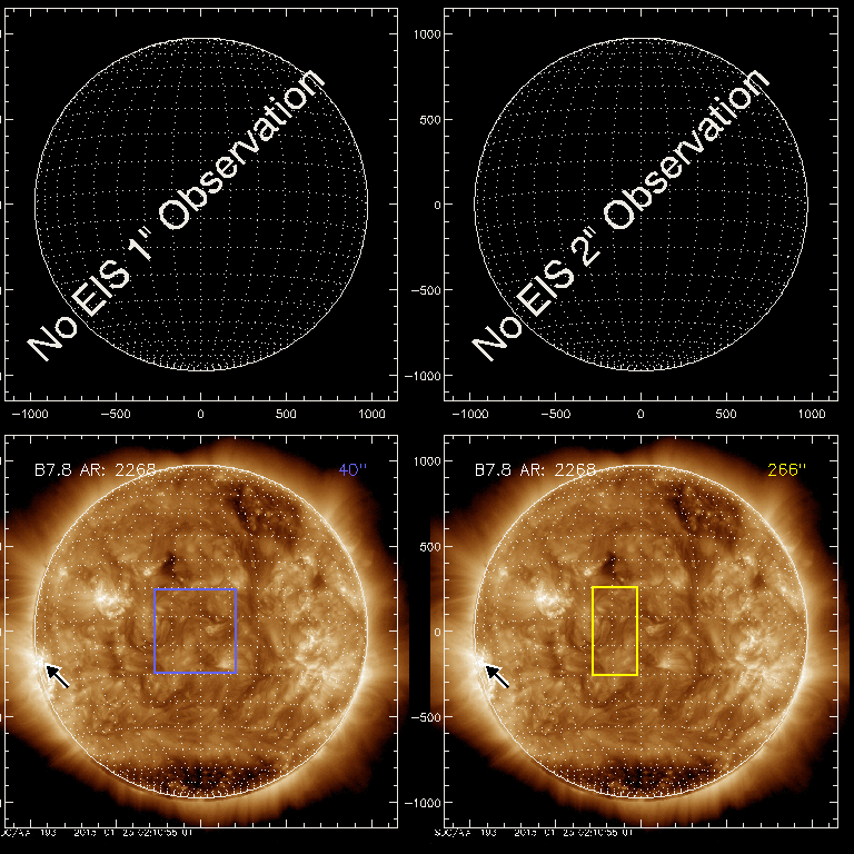 EIS Observation timeline overlay to GOES-Xray curve Code 1" 2" 40" 266" EIS Observations list for this event: STUDY ACRONYM ID DATE OBSERVED DESCRIPTION NOAA# TARGET 0 PRY_slot_contextLITE | 44769 | 2015/01/23 06:19:26 | alignment | | Active Region TIMELINE ID DATE OBSERVED FITS FILE XCEN (+W/-E) YCEN (+N/-S) DUR ----------------------------------------------------------------------------------------------------------------- 44769 | 2015/01/23 06:19:26.000 | eis_l0_20150123_061926.fits.gz | -31.94 | 0.50 | 2m56s 1 Alignment_266 | 44770 | 2015/01/23 06:22:41 | alignment | | Quiet Sun TIMELINE ID DATE OBSERVED FITS FILE XCEN (+W/-E) YCEN (+N/-S) DUR ----------------------------------------------------------------------------------------------------------------- 44770 | 2015/01/23 06:22:41.000 | eis_l0_20150123_062241.fits.gz | -149.29 | 0.50 | 1m22s 2 XRT_synop_AIA | 44771 | 2015/01/23 06:25:15 | alignment | | Quiet Sun TIMELINE ID DATE OBSERVED FITS FILE XCEN (+W/-E) YCEN (+N/-S) DUR ----------------------------------------------------------------------------------------------------------------- 44771 | 2015/01/23 06:25:15.000 | eis_l0_20150123_062515.fits.gz | -149.37 | 0.58 | 10s : Check study information : Download file : View thumbnails For this event, also check for:
