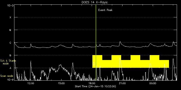 EIS Observation timeline overlay to GOES-Xray curve Code 1" 2" 40" 266" EIS Observations list for this event: STUDY ACRONYM ID DATE OBSERVED DESCRIPTION NOAA# TARGET 0 Flare266_Hunter03 | 44815 | 2015/01/24 18:04:33 | Flare study | 2268 | Flare TIMELINE ID DATE OBSERVED FITS FILE XCEN (+W/-E) YCEN (+N/-S) DUR ----------------------------------------------------------------------------------------------------------------- 44815 | 2015/01/24 18:04:33.000 | eis_l0_20150124_180433.fits.gz | -952.59 | -127.19 | 55m50s 44815 | 2015/01/24 19:00:49.000 | eis_l0_20150124_190049.fits.gz | -947.80 | -126.34 | 55m51s 44815 | 2015/01/24 19:57:06.000 | eis_l0_20150124_195706.fits.gz | -943.01 | -125.34 | 55m49s 44815 | 2015/01/24 20:53:22.000 | eis_l0_20150124_205322.fits.gz | -938.06 | -124.87 | 55m50s 44815 | 2015/01/24 21:49:38.000 | eis_l0_20150124_214938.fits.gz | -933.04 | -124.18 | 55m50s 44815 | 2015/01/24 22:45:54.000 | eis_l0_20150124_224554.fits.gz | -927.94 | -123.48 | 55m50s 44815 | 2015/01/24 23:42:10.000 | eis_l0_20150124_234210.fits.gz | -923.00 | -122.71 | 55m50s 44815 | 2015/01/25 00:38:26.000 | eis_l0_20150125_003826.fits.gz | -917.75 | -121.94 | 55m50s : Check study information : Download file : View thumbnails For this event, also check for: