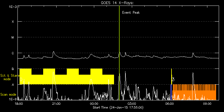EIS Observation timeline overlay to GOES-Xray curve Code 1" 2" 40" 266" EIS Observations list for this event: STUDY ACRONYM ID DATE OBSERVED DESCRIPTION NOAA# TARGET 0 Flare266_Hunter03 | 44815 | 2015/01/24 18:04:33 | Flare study | 2268 | Flare TIMELINE ID DATE OBSERVED FITS FILE XCEN (+W/-E) YCEN (+N/-S) DUR ----------------------------------------------------------------------------------------------------------------- 44815 | 2015/01/24 18:04:33.000 | eis_l0_20150124_180433.fits.gz | -952.59 | -127.19 | 55m50s 44815 | 2015/01/24 19:00:49.000 | eis_l0_20150124_190049.fits.gz | -947.80 | -126.34 | 55m51s 44815 | 2015/01/24 19:57:06.000 | eis_l0_20150124_195706.fits.gz | -943.01 | -125.34 | 55m49s 44815 | 2015/01/24 20:53:22.000 | eis_l0_20150124_205322.fits.gz | -938.06 | -124.87 | 55m50s 44815 | 2015/01/24 21:49:38.000 | eis_l0_20150124_214938.fits.gz | -933.04 | -124.18 | 55m50s 44815 | 2015/01/24 22:45:54.000 | eis_l0_20150124_224554.fits.gz | -927.94 | -123.48 | 55m50s 44815 | 2015/01/24 23:42:10.000 | eis_l0_20150124_234210.fits.gz | -923.00 | -122.71 | 55m50s 44815 | 2015/01/25 00:38:26.000 | eis_l0_20150125_003826.fits.gz | -917.75 | -121.94 | 55m50s 1 PRY_slot_contextLITE | 44775 | 2015/01/25 06:05:26 | alignment | 2269 | Active Region TIMELINE ID DATE OBSERVED FITS FILE XCEN (+W/-E) YCEN (+N/-S) DUR ----------------------------------------------------------------------------------------------------------------- 44775 | 2015/01/25 06:05:26.000 | eis_l0_20150125_060526.fits.gz | -32.01 | 0.65 | 2m56s 2 Alignment_266 | 44776 | 2015/01/25 06:08:41 | alignment | 2269 | Quiet Sun TIMELINE ID DATE OBSERVED FITS FILE XCEN (+W/-E) YCEN (+N/-S) DUR ----------------------------------------------------------------------------------------------------------------- 44776 | 2015/01/25 06:08:41.000 | eis_l0_20150125_060841.fits.gz | -149.29 | 0.58 | 1m22s 3 XRT_synop_AIA | 44777 | 2015/01/25 06:10:48 | alignment | 2268 | Quiet Sun TIMELINE ID DATE OBSERVED FITS FILE XCEN (+W/-E) YCEN (+N/-S) DUR ----------------------------------------------------------------------------------------------------------------- 44777 | 2015/01/25 06:10:48.000 | eis_l0_20150125_061048.fits.gz | -758.31 | -118.07 | 10s 4 HH_Flare_raster_v6 | 44803 | 2015/01/25 06:13:19 | flare study | 2268 | Flare TIMELINE ID DATE OBSERVED FITS FILE XCEN (+W/-E) YCEN (+N/-S) DUR ----------------------------------------------------------------------------------------------------------------- 44803 | 2015/01/25 06:13:19.000 | eis_l0_20150125_061319.fits.gz | -754.17 | -117.15 | 3m32s 44803 | 2015/01/25 06:16:53.000 | eis_l0_20150125_061653.fits.gz | -753.71 | -116.92 | 3m32s 44803 | 2015/01/25 06:20:28.000 | eis_l0_20150125_062028.fits.gz | -753.48 | -116.84 | 3m31s 44803 | 2015/01/25 06:24:01.000 | eis_l0_20150125_062401.fits.gz | -753.09 | -116.69 | 3m32s 44803 | 2015/01/25 06:27:36.000 | eis_l0_20150125_062736.fits.gz | -752.78 | -116.77 | 3m31s 44803 | 2015/01/25 06:31:10.000 | eis_l0_20150125_063110.fits.gz | -752.40 | -116.77 | 3m32s 44803 | 2015/01/25 06:34:45.000 | eis_l0_20150125_063445.fits.gz | -752.01 | -116.69 | 3m31s 44803 | 2015/01/25 06:38:19.000 | eis_l0_20150125_063819.fits.gz | -751.62 | -116.53 | 3m32s 44803 | 2015/01/25 06:41:53.000 | eis_l0_20150125_064153.fits.gz | -751.32 | -116.61 | 3m32s 44803 | 2015/01/25 06:45:28.000 | eis_l0_20150125_064528.fits.gz | -751.01 | -116.69 | 3m31s 44803 | 2015/01/25 06:49:02.000 | eis_l0_20150125_064902.fits.gz | -750.54 | -116.38 | 3m31s 44803 | 2015/01/25 06:52:36.000 | eis_l0_20150125_065236.fits.gz | -750.16 | -116.46 | 3m31s 44803 | 2015/01/25 06:56:10.000 | eis_l0_20150125_065610.fits.gz | -749.85 | -116.61 | 3m32s 44803 | 2015/01/25 06:59:45.000 | eis_l0_20150125_065945.fits.gz | -749.62 | -116.46 | 3m32s 44803 | 2015/01/25 07:03:20.000 | eis_l0_20150125_070320.fits.gz | -749.23 | -116.22 | 3m31s 44803 | 2015/01/25 07:06:54.000 | eis_l0_20150125_070654.fits.gz | -748.92 | -116.22 | 3m31s 44803 | 2015/01/25 07:10:27.000 | eis_l0_20150125_071027.fits.gz | -748.46 | -116.46 | 3m31s 44803 | 2015/01/25 07:14:01.000 | eis_l0_20150125_071401.fits.gz | -748.07 | -116.30 | 3m31s 44803 | 2015/01/25 07:17:35.000 | eis_l0_20150125_071735.fits.gz | -747.76 | -116.15 | 3m32s 44803 | 2015/01/25 07:21:10.000 | eis_l0_20150125_072110.fits.gz | -747.38 | -116.07 | 3m30s 44803 | 2015/01/25 07:24:43.000 | eis_l0_20150125_072443.fits.gz | -747.07 | -115.92 | 3m32s 44803 | 2015/01/25 07:28:18.000 | eis_l0_20150125_072818.fits.gz | -746.68 | -115.92 | 3m31s 44803 | 2015/01/25 07:31:52.000 | eis_l0_20150125_073152.fits.gz | -746.29 | -116.07 | 3m31s 44803 | 2015/01/25 07:35:26.000 | eis_l0_20150125_073526.fits.gz | -745.99 | -115.99 | 3m32s 44803 | 2015/01/25 07:39:00.000 | eis_l0_20150125_073900.fits.gz | -745.68 | -115.84 | 3m32s 44803 | 2015/01/25 07:42:35.000 | eis_l0_20150125_074235.fits.gz | -745.21 | -115.76 | 3m31s 44803 | 2015/01/25 07:46:09.000 | eis_l0_20150125_074609.fits.gz | -744.83 | -115.84 | 3m31s 44803 | 2015/01/25 07:49:43.000 | eis_l0_20150125_074943.fits.gz | -744.60 | -115.84 | 3m31s 44803 | 2015/01/25 07:53:17.000 | eis_l0_20150125_075317.fits.gz | -744.13 | -115.84 | 3m32s 44803 | 2015/01/25 07:56:52.000 | eis_l0_20150125_075652.fits.gz | -743.82 | -115.76 | 3m32s 44803 | 2015/01/25 08:00:27.000 | eis_l0_20150125_080027.fits.gz | -743.52 | -115.53 | 3m32s 44803 | 2015/01/25 08:04:02.000 | eis_l0_20150125_080402.fits.gz | -743.05 | -115.61 | 3m31s 44803 | 2015/01/25 08:07:36.000 | eis_l0_20150125_080736.fits.gz | -742.74 | -115.68 | 3m31s 44803 | 2015/01/25 08:11:10.000 | eis_l0_20150125_081110.fits.gz | -742.36 | -115.61 | 3m31s 44803 | 2015/01/25 08:14:44.000 | eis_l0_20150125_081444.fits.gz | -741.97 | -115.45 | 3m32s 44803 | 2015/01/25 08:18:19.000 | eis_l0_20150125_081819.fits.gz | -741.58 | -115.45 | 3m31s 44803 | 2015/01/25 08:21:53.000 | eis_l0_20150125_082153.fits.gz | -741.27 | -115.38 | 3m31s 44803 | 2015/01/25 08:25:27.000 | eis_l0_20150125_082527.fits.gz | -74