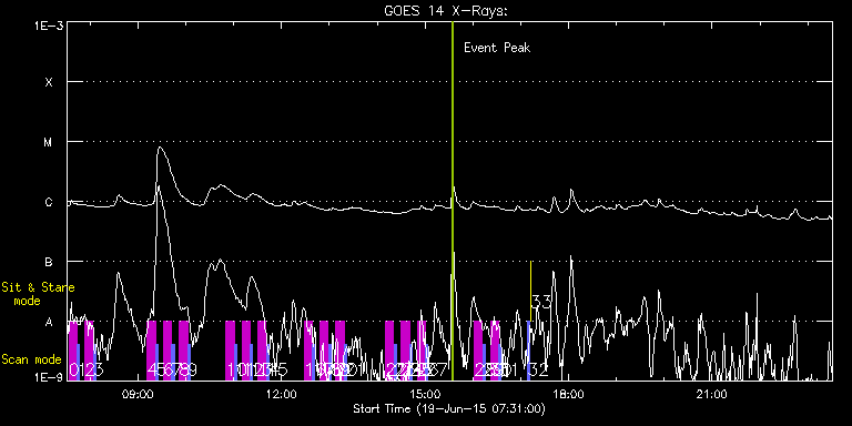 EIS Observation timeline overlay to GOES-Xray curve Code 1" 2" 40" 266" EIS Observations list for this event: STUDY ACRONYM ID DATE OBSERVED DESCRIPTION NOAA# TARGET 0 SK_DEEP_5x512_SLIT1 | 47022 | 2015/06/19 07:33:20 | HOP79 N-S scan | | Quiet Sun TIMELINE ID DATE OBSERVED FITS FILE XCEN (+W/-E) YCEN (+N/-S) DUR ----------------------------------------------------------------------------------------------------------------- 47022 | 2015/06/19 07:33:20.000 | eis_l0_20150619_073320.fits.gz | -5.98 | -586.42 | 10m8s 1 PRY_slot_contextLITE | 47023 | 2015/06/19 07:43:53 | HOP79 N-S scan | | Active Region TIMELINE ID DATE OBSERVED FITS FILE XCEN (+W/-E) YCEN (+N/-S) DUR ----------------------------------------------------------------------------------------------------------------- 47023 | 2015/06/19 07:43:53.000 | eis_l0_20150619_074353.fits.gz | -20.87 | -586.42 | 2m57s 2 SK_DEEP_5x512_SLIT1 | 47024 | 2015/06/19 07:53:21 | HOP79 N-S scan | | Quiet Sun TIMELINE ID DATE OBSERVED FITS FILE XCEN (+W/-E) YCEN (+N/-S) DUR ----------------------------------------------------------------------------------------------------------------- 47024 | 2015/06/19 07:53:21.000 | eis_l0_20150619_075321.fits.gz | -5.98 | -486.38 | 10m7s 3 PRY_slot_contextLITE | 47025 | 2015/06/19 08:03:54 | HOP79 N-S scan | | Active Region TIMELINE ID DATE OBSERVED FITS FILE XCEN (+W/-E) YCEN (+N/-S) DUR ----------------------------------------------------------------------------------------------------------------- 47025 | 2015/06/19 08:03:54.000 | eis_l0_20150619_080354.fits.gz | -20.95 | -486.31 | 2m56s 4 SK_DEEP_5x512_SLIT1 | 47026 | 2015/06/19 09:11:50 | HOP79 N-S scan | | Quiet Sun TIMELINE ID DATE OBSERVED FITS FILE XCEN (+W/-E) YCEN (+N/-S) DUR ----------------------------------------------------------------------------------------------------------------- 47026 | 2015/06/19 09:11:50.000 | eis_l0_20150619_091150.fits.gz | -5.98 | -386.12 | 10m8s 5 PRY_slot_contextLITE | 47027 | 2015/06/19 09:22:23 | HOP79 N-S scan | | Active Region TIMELINE ID DATE OBSERVED FITS FILE XCEN (+W/-E) YCEN (+N/-S) DUR ----------------------------------------------------------------------------------------------------------------- 47027 | 2015/06/19 09:22:23.000 | eis_l0_20150619_092223.fits.gz | -20.95 | -386.35 | 2m57s 6 SK_DEEP_5x512_SLIT1 | 47028 | 2015/06/19 09:31:51 | HOP79 N-S scan | | Quiet Sun TIMELINE ID DATE OBSERVED FITS FILE XCEN (+W/-E) YCEN (+N/-S) DUR ----------------------------------------------------------------------------------------------------------------- 47028 | 2015/06/19 09:31:51.000 | eis_l0_20150619_093151.fits.gz | -5.90 | -286.54 | 10m7s 7 PRY_slot_contextLITE | 47029 | 2015/06/19 09:42:24 | HOP79 N-S scan | | Active Region TIMELINE ID DATE OBSERVED FITS FILE XCEN (+W/-E) YCEN (+N/-S) DUR ----------------------------------------------------------------------------------------------------------------- 47029 | 2015/06/19 09:42:24.000 | eis_l0_20150619_094224.fits.gz | -20.95 | -286.54 | 2m56s 8 SK_DEEP_5x512_SLIT1 | 47030 | 2015/06/19 09:51:51 | HOP79 N-S scan | | Quiet Sun TIMELINE ID DATE OBSERVED FITS FILE XCEN (+W/-E) YCEN (+N/-S) DUR ----------------------------------------------------------------------------------------------------------------- 47030 | 2015/06/19 09:51:51.000 | eis_l0_20150619_095151.fits.gz | -5.98 | -186.35 | 10m7s 9 PRY_slot_contextLITE | 47031 | 2015/06/19 10:02:24 | HOP79 N-S scan | | Active Region TIMELINE ID DATE OBSERVED FITS FILE XCEN (+W/-E) YCEN (+N/-S) DUR ----------------------------------------------------------------------------------------------------------------- 47031 | 2015/06/19 10:02:24.000 | eis_l0_20150619_100224.fits.gz | -20.95 | -186.35 | 2m56s 10 SK_DEEP_5x512_SLIT1 | 47032 | 2015/06/19 10:50:20 | HOP79 N-S scan | | Quiet Sun TIMELINE ID DATE OBSERVED FITS FILE XCEN (+W/-E) YCEN (+N/-S) DUR ----------------------------------------------------------------------------------------------------------------- 47032 | 2015/06/19 10:50:20.000 | eis_l0_20150619_105020.fits.gz | -5.98 | -86.32 | 10m8s 11 PRY_slot_contextLITE | 47033 | 2015/06/19 11:00:53 | HOP79 N-S scan | 2369 | Active Region TIMELINE ID DATE OBSERVED FITS FILE XCEN (+W/-E) YCEN (+N/-S) DUR ----------------------------------------------------------------------------------------------------------------- 47033 | 2015/06/19 11:00:53.000 | eis_l0_20150619_110053.fits.gz | -20.87 | -86.47 | 2m57s 12 SK_DEEP_5x512_SLIT1 | 47034 | 2015/06/19 11:10:21 | HOP79 N-S scan | | Quiet Sun TIMELINE ID DATE OBSERVED FITS FILE XCEN (+W/-E) YCEN (+N/-S) DUR ----------------------------------------------------------------------------------------------------------------- 47034 | 2015/06/19 11:10:21.000 | eis_l0_20150619_111021.fits.gz | -5.82 | 3.44 | 10m7s 13 PRY_slot_contextLITE | 47035 | 2015/06/19 11:20:54 | HOP79 N-S scan | 2369 | Active Region TIMELINE ID DATE OBSERVED FITS FILE XCEN (+W/-E) YCEN (+N/-S) DUR ----------------------------------------------------------------------------------------------------------------- 47035 | 2015/06/19 11:20:54.000 | eis_l0_20150619_112054.fits.gz | -21.03 | 3.68 | 2m56s 14 SK_DEEP_5x512_SLIT1 | 47036 | 2015/06/19 11:30:21 | HOP79 N-S scan | | Quiet Sun TIMELINE ID DATE OBSERVED FITS FILE XCEN (+W/-E) YCEN (+N/-S) DUR ----------------------------------------------------------------------------------------------------------------- 47036 | 2015/06/19 11:30:21.000 | eis_l0_20150619_113021.fits.gz | -5.98 | 103.71 | 10m7s 15 PRY_slot_contextLITE | 47037 | 2015/06/19 11:40:54 | HOP79 N-S scan | 2369 | Active Region TIMELINE ID DATE OBSERVED FITS FILE XCEN (+W/-E) YCEN (+N/-S) DUR ----------------------------------------------------------------------------------------------------------------- 47037 | 2015/06/19 11:40:54.000 | eis_l0_20150619_114054.fits.gz | -20.87 | 103.63 | 2m56s 16 SK_DEEP_5x512_SLIT1 | 47038 | 2015/06/19 12:28:20 | HOP79 N-S scan | | Quiet Sun TIMELINE ID DATE OBSERVED F