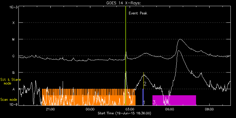 EIS Observation timeline overlay to GOES-Xray curve Code 1" 2" 40" 266" EIS Observations list for this event: STUDY ACRONYM ID DATE OBSERVED DESCRIPTION NOAA# TARGET 0 HH_Flare_raster_v6 | 47057 | 2015/06/19 20:23:19 | Flare observation | | Flare TIMELINE ID DATE OBSERVED FITS FILE XCEN (+W/-E) YCEN (+N/-S) DUR ----------------------------------------------------------------------------------------------------------------- 47057 | 2015/06/19 20:23:19.000 | eis_l0_20150619_202319.fits.gz | -531.40 | 81.56 | 3m32s 47057 | 2015/06/19 20:26:54.000 | eis_l0_20150619_202654.fits.gz | -531.01 | 81.63 | 3m31s 47057 | 2015/06/19 20:30:27.000 | eis_l0_20150619_203027.fits.gz | -530.55 | 81.56 | 3m31s 47057 | 2015/06/19 20:34:01.000 | eis_l0_20150619_203401.fits.gz | -530.01 | 81.40 | 3m31s 47057 | 2015/06/19 20:37:35.000 | eis_l0_20150619_203735.fits.gz | -529.62 | 81.48 | 3m31s 47057 | 2015/06/19 20:41:09.000 | eis_l0_20150619_204109.fits.gz | -529.23 | 81.48 | 3m32s 47057 | 2015/06/19 20:44:44.000 | eis_l0_20150619_204444.fits.gz | -528.69 | 81.48 | 3m31s 47057 | 2015/06/19 20:48:18.000 | eis_l0_20150619_204818.fits.gz | -528.23 | 81.40 | 3m32s 47057 | 2015/06/19 20:51:52.000 | eis_l0_20150619_205152.fits.gz | -527.84 | 81.40 | 3m32s 47057 | 2015/06/19 20:55:27.000 | eis_l0_20150619_205527.fits.gz | -527.38 | 81.32 | 3m31s 47057 | 2015/06/19 20:59:00.000 | eis_l0_20150619_205900.fits.gz | -527.07 | 81.48 | 3m32s 47057 | 2015/06/19 21:02:34.000 | eis_l0_20150619_210234.fits.gz | -526.53 | 81.48 | 3m32s 47057 | 2015/06/19 21:06:09.000 | eis_l0_20150619_210609.fits.gz | -526.14 | 81.32 | 3m32s 47057 | 2015/06/19 21:09:43.000 | eis_l0_20150619_210943.fits.gz | -525.68 | 81.25 | 3m32s 47057 | 2015/06/19 21:13:18.000 | eis_l0_20150619_211318.fits.gz | -525.29 | 81.32 | 3m31s 47057 | 2015/06/19 21:16:52.000 | eis_l0_20150619_211652.fits.gz | -524.83 | 81.25 | 3m31s 47057 | 2015/06/19 21:20:26.000 | eis_l0_20150619_212026.fits.gz | -524.29 | 81.25 | 3m31s 47057 | 2015/06/19 21:24:00.000 | eis_l0_20150619_212400.fits.gz | -523.83 | 81.32 | 3m32s 47057 | 2015/06/19 21:27:35.000 | eis_l0_20150619_212735.fits.gz | -523.36 | 81.25 | 3m31s 47057 | 2015/06/19 21:31:09.000 | eis_l0_20150619_213109.fits.gz | -522.98 | 81.40 | 3m31s 47057 | 2015/06/19 21:34:43.000 | eis_l0_20150619_213443.fits.gz | -522.44 | 81.17 | 3m31s 47057 | 2015/06/19 21:38:17.000 | eis_l0_20150619_213817.fits.gz | -522.05 | 81.25 | 3m31s 47057 | 2015/06/19 21:41:51.000 | eis_l0_20150619_214151.fits.gz | -521.59 | 81.32 | 3m33s 47057 | 2015/06/19 21:45:26.000 | eis_l0_20150619_214526.fits.gz | -521.12 | 81.17 | 3m32s 47057 | 2015/06/19 21:49:01.000 | eis_l0_20150619_214901.fits.gz | -520.74 | 81.17 | 3m31s 47057 | 2015/06/19 21:52:35.000 | eis_l0_20150619_215235.fits.gz | -520.27 | 81.17 | 3m31s 47057 | 2015/06/19 21:56:09.000 | eis_l0_20150619_215609.fits.gz | -519.73 | 81.32 | 3m32s 47057 | 2015/06/19 21:59:44.000 | eis_l0_20150619_215944.fits.gz | -519.35 | 81.17 | 3m32s 47057 | 2015/06/19 22:03:18.000 | eis_l0_20150619_220318.fits.gz | -518.81 | 81.17 | 3m32s 47057 | 2015/06/19 22:06:52.000 | eis_l0_20150619_220652.fits.gz | -518.42 | 81.40 | 3m32s 47057 | 2015/06/19 22:10:26.000 | eis_l0_20150619_221026.fits.gz | -517.88 | 81.17 | 3m32s 47057 | 2015/06/19 22:14:01.000 | eis_l0_20150619_221401.fits.gz | -517.57 | 81.32 | 3m31s 47057 | 2015/06/19 22:17:35.000 | eis_l0_20150619_221735.fits.gz | -517.11 | 81.17 | 3m31s 47057 | 2015/06/19 22:21:09.000 | eis_l0_20150619_222109.fits.gz | -516.64 | 81.25 | 3m32s 47057 | 2015/06/19 22:24:44.000 | eis_l0_20150619_222444.fits.gz | -516.18 | 81.17 | 3m31s 47057 | 2015/06/19 22:28:17.000 | eis_l0_20150619_222817.fits.gz | -515.64 | 81.17 | 3m31s 47057 | 2015/06/19 22:31:51.000 | eis_l0_20150619_223151.fits.gz | -515.25 | 81.01 | 3m32s 47057 | 2015/06/19 22:35:26.000 | eis_l0_20150619_223526.fits.gz | -514.87 | 81.17 | 3m31s 47057 | 2015/06/19 22:39:00.000 | eis_l0_20150619_223900.fits.gz | -514.40 | 81.09 | 3m31s 47057 | 2015/06/19 22:42:34.000 | eis_l0_20150619_224234.fits.gz | -513.94 | 81.01 | 3m32s 47057 | 2015/06/19 22:46:09.000 | eis_l0_20150619_224609.fits.gz | -513.55 | 80.94 | 3m31s 47057 | 2015/06/19 22:49:43.000 | eis_l0_20150619_224943.fits.gz | -513.01 | 81.01 | 3m31s 47057 | 2015/06/19 22:53:17.000 | eis_l0_20150619_225317.fits.gz | -512.47 | 81.01 | 3m31s 47057 | 2015/06/19 22:56:51.000 | eis_l0_20150619_225651.fits.gz | -512.16 | 80.94 | 3m32s 47057 | 2015/06/19 23:00:26.000 | eis_l0_20150619_230026.fits.gz | -511.70 | 81.01 | 3m31s 47057 | 2015/06/19 23:04:00.000 | eis_l0_20150619_230400.fits.gz | -511.16 | 81.09 | 3m32s 47057 | 2015/06/19 23:07:35.000 | eis_l0_20150619_230735.fits.gz | -510.70 | 81.01 | 3m32s 47057 | 2015/06/19 23:11:09.000 | eis_l0_20150619_231109.fits.gz | -510.23 | 80.94 | 3m32s 47057 | 2015/06/19 23:14:44.000 | eis_l0_20150619_231444.fits.gz | -509.85 | 80.86 | 3m31s 47057 | 2015/06/19 23:18:18.000 | eis_l0_20150619_231818.fits.gz | -509.38 | 80.94 | 3m32s 47057 | 2015/06/19 23:21:52.000 | eis_l0_20150619_232152.fits.gz | -508.92 | 80.94 | 3m32s 47057 | 2015/06/19 23:25:27.000 | eis_l0_20150619_232527.fits.gz | -508.45 | 80.78 | 3m32s 47057 | 2015/06/19 23:29:01.000 | eis_l0_20150619_232901.fits.gz | -507.99 | 80.94 | 3m32s 47057 | 2015/06/19 23:32:36.000 | eis_l0_20150619_233236.fits.gz | -507.61 | 80.86 | 3m31s 47057 | 2015/06/19 23:36:10.000 | eis_l0_20150619_233610.fits.gz | -507.14 | 80.86 | 3m32s 47057 | 2015/06/19 23:39:45.000 | eis_l0_20150619_233945.fits.gz | -506.60 | 80.86 | 3m31s 47057 | 2015/06/19 23:43:19.000 | eis_l0_20150619_234319.fits.gz | -506.14 | 80.94 | 3m32s 47057 | 2015/06/19 23:46:54.000 | eis_l0_20150619_234654.fits.gz | -505.67 | 80.86 | 3m32s 47057 | 2015/06/19 23:50:28.000 | eis_l0_20150619_235028.fits.gz | -505.21 | 80.86 | 3m31s 47057 | 2015/06/19 23:54:02.000 | eis_l0_20150619_235402.fits.gz | -504.82 | 81.01 | 3m31s 47057 | 2015/06/19 23:57:36.000 | eis_l0_20150619_235736.fits.gz | -504.36 | 80.71 | 3m32s 47057 | 2015/06/20 00: