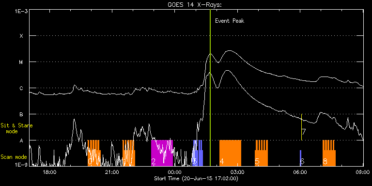 EIS Observation timeline overlay to GOES-Xray curve Code 1" 2" 40" 266" EIS Observations list for this event: STUDY ACRONYM ID DATE OBSERVED DESCRIPTION NOAA# TARGET 0 HH_Flare_raster_v6 | 47115 | 2015/06/20 19:50:13 | AR 12371 obs. | | Flare TIMELINE ID DATE OBSERVED FITS FILE XCEN (+W/-E) YCEN (+N/-S) DUR ----------------------------------------------------------------------------------------------------------------- 47115 | 2015/06/20 19:50:13.000 | eis_l0_20150620_195013.fits.gz | -325.33 | 186.75 | 3m32s 47115 | 2015/06/20 19:53:47.000 | eis_l0_20150620_195347.fits.gz | -324.87 | 186.75 | 3m32s 47115 | 2015/06/20 19:57:22.000 | eis_l0_20150620_195722.fits.gz | -324.33 | 186.75 | 3m31s 47115 | 2015/06/20 20:00:56.000 | eis_l0_20150620_200056.fits.gz | -323.79 | 186.67 | 3m32s 47115 | 2015/06/20 20:04:30.000 | eis_l0_20150620_200430.fits.gz | -323.32 | 186.67 | 3m32s 47115 | 2015/06/20 20:08:05.000 | eis_l0_20150620_200805.fits.gz | -322.78 | 186.52 | 3m32s 47115 | 2015/06/20 20:11:39.000 | eis_l0_20150620_201139.fits.gz | -322.32 | 186.59 | 3m32s 47115 | 2015/06/20 20:15:14.000 | eis_l0_20150620_201514.fits.gz | -321.78 | 186.52 | 3m31s 47115 | 2015/06/20 20:18:47.000 | eis_l0_20150620_201847.fits.gz | -321.32 | 186.75 | 3m32s 47115 | 2015/06/20 20:22:22.000 | eis_l0_20150620_202222.fits.gz | -320.77 | 186.59 | 3m31s 1 HH_Flare_raster_v6 | 47116 | 2015/06/20 21:30:13 | AR 12371 obs. | | Flare TIMELINE ID DATE OBSERVED FITS FILE XCEN (+W/-E) YCEN (+N/-S) DUR ----------------------------------------------------------------------------------------------------------------- 47116 | 2015/06/20 21:30:13.000 | eis_l0_20150620_213013.fits.gz | -310.29 | 180.52 | 3m31s 47116 | 2015/06/20 21:33:47.000 | eis_l0_20150620_213347.fits.gz | -309.75 | 180.36 | 3m32s 47116 | 2015/06/20 21:37:22.000 | eis_l0_20150620_213722.fits.gz | -309.29 | 180.44 | 3m31s 47116 | 2015/06/20 21:40:55.000 | eis_l0_20150620_214055.fits.gz | -308.75 | 180.36 | 3m31s 47116 | 2015/06/20 21:44:29.000 | eis_l0_20150620_214429.fits.gz | -308.28 | 180.28 | 3m32s 47116 | 2015/06/20 21:48:04.000 | eis_l0_20150620_214804.fits.gz | -307.74 | 180.36 | 3m31s 47116 | 2015/06/20 21:51:38.000 | eis_l0_20150620_215138.fits.gz | -307.28 | 180.28 | 3m32s 47116 | 2015/06/20 21:55:13.000 | eis_l0_20150620_215513.fits.gz | -306.74 | 180.28 | 3m31s 47116 | 2015/06/20 21:58:47.000 | eis_l0_20150620_215847.fits.gz | -306.20 | 180.28 | 3m31s 47116 | 2015/06/20 22:02:21.000 | eis_l0_20150620_220221.fits.gz | -305.73 | 180.44 | 3m32s 2 HPW021_VEL_120x512v1 | 47118 | 2015/06/20 22:52:27 | AR 12371 obs. | | Active Region TIMELINE ID DATE OBSERVED FITS FILE XCEN (+W/-E) YCEN (+N/-S) DUR ----------------------------------------------------------------------------------------------------------------- 47118 | 2015/06/20 22:52:27.000 | eis_l0_20150620_225227.fits.gz | -284.51 | 91.28 | 1h1m52s 3 PRY_slot_context_v3 | 47119 | 2015/06/21 00:50:33 | Spectral atlas of AR | 2371 | Active Region TIMELINE ID DATE OBSERVED FITS FILE XCEN (+W/-E) YCEN (+N/-S) DUR ----------------------------------------------------------------------------------------------------------------- 47119 | 2015/06/21 00:50:33.000 | eis_l0_20150621_005033.fits.gz | -282.24 | 90.82 | 2m57s 47119 | 2015/06/21 00:53:34.000 | eis_l0_20150621_005334.fits.gz | -281.85 | 90.90 | 2m56s 47119 | 2015/06/21 00:56:34.000 | eis_l0_20150621_005634.fits.gz | -281.47 | 90.90 | 2m56s 47119 | 2015/06/21 00:59:34.000 | eis_l0_20150621_005934.fits.gz | -280.93 | 90.82 | 2m56s 47119 | 2015/06/21 01:02:34.000 | eis_l0_20150621_010234.fits.gz | -280.54 | 90.82 | 2m56s 47119 | 2015/06/21 01:08:34.000 | eis_l0_20150621_010834.fits.gz | -279.61 | 90.90 | 2m57s 47119 | 2015/06/21 01:11:35.000 | eis_l0_20150621_011135.fits.gz | -279.30 | 90.82 | 2m55s 47119 | 2015/06/21 01:14:34.000 | eis_l0_20150621_011434.fits.gz | -278.76 | 90.98 | 2m57s 47119 | 2015/06/21 01:17:35.000 | eis_l0_20150621_011735.fits.gz | -278.38 | 90.90 | 2m56s 4 Atlas_60 | 47120 | 2015/06/21 02:08:34 | Spectral atlas of AR | 2371 | Quiet Sun TIMELINE ID DATE OBSERVED FITS FILE XCEN (+W/-E) YCEN (+N/-S) DUR ----------------------------------------------------------------------------------------------------------------- 47120 | 2015/06/21 02:08:34.000 | eis_l0_20150621_020834.fits.gz | -265.71 | 214.90 | 1h1m40s 5 HH_Flare_raster_v6 | 47117 | 2015/06/21 03:50:13 | AR 12371 obs. | 2371 | Flare TIMELINE ID DATE OBSERVED FITS FILE XCEN (+W/-E) YCEN (+N/-S) DUR ----------------------------------------------------------------------------------------------------------------- 47117 | 2015/06/21 03:50:13.000 | eis_l0_20150621_035013.fits.gz | -243.64 | 180.59 | 3m31s 47117 | 2015/06/21 03:53:47.000 | eis_l0_20150621_035347.fits.gz | -243.18 | 180.59 | 3m31s 47117 | 2015/06/21 03:57:21.000 | eis_l0_20150621_035721.fits.gz | -242.63 | 180.51 | 3m31s 47117 | 2015/06/21 04:00:55.000 | eis_l0_20150621_040055.fits.gz | -242.17 | 180.59 | 3m32s 47117 | 2015/06/21 04:04:30.000 | eis_l0_20150621_040430.fits.gz | -241.63 | 180.43 | 3m32s 47117 | 2015/06/21 04:08:05.000 | eis_l0_20150621_040805.fits.gz | -241.01 | 180.43 | 3m31s 47117 | 2015/06/21 04:11:39.000 | eis_l0_20150621_041139.fits.gz | -240.55 | 180.43 | 3m31s 47117 | 2015/06/21 04:15:13.000 | eis_l0_20150621_041513.fits.gz | -240.01 | 180.51 | 3m32s 47117 | 2015/06/21 04:18:47.000 | eis_l0_20150621_041847.fits.gz | -239.54 | 180.43 | 3m32s 47117 | 2015/06/21 04:22:22.000 | eis_l0_20150621_042222.fits.gz | -239.08 | 180.43 | 3m31s 6 PRY_slot_contextLITE | 47061 | 2015/06/21 05:59:20 | XRT synoptic | 2371 | Active Region TIMELINE ID DATE OBSERVED FITS FILE XCEN (+W/-E) YCEN (+N/-S) DUR ----------------------------------------------------------------------------------------------------------------- 47061 | 2015/06/21 05:59:20.000 | eis_l0_20150621_055920.fits.gz | -15.29 | -0.50 | 2m56s 7 XRT_synop_AIA | 47062 | 2015/06/21 06:03:26 | XRT synoptic | 2371 | Quiet Sun TIMELINE ID DATE OBSERVED FITS FILE XCEN (+