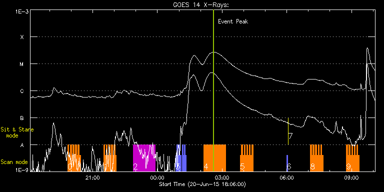 EIS Observation timeline overlay to GOES-Xray curve Code 1" 2" 40" 266" EIS Observations list for this event: STUDY ACRONYM ID DATE OBSERVED DESCRIPTION NOAA# TARGET 0 HH_Flare_raster_v6 | 47115 | 2015/06/20 19:50:13 | AR 12371 obs. | | Flare TIMELINE ID DATE OBSERVED FITS FILE XCEN (+W/-E) YCEN (+N/-S) DUR ----------------------------------------------------------------------------------------------------------------- 47115 | 2015/06/20 19:50:13.000 | eis_l0_20150620_195013.fits.gz | -325.33 | 186.75 | 3m32s 47115 | 2015/06/20 19:53:47.000 | eis_l0_20150620_195347.fits.gz | -324.87 | 186.75 | 3m32s 47115 | 2015/06/20 19:57:22.000 | eis_l0_20150620_195722.fits.gz | -324.33 | 186.75 | 3m31s 47115 | 2015/06/20 20:00:56.000 | eis_l0_20150620_200056.fits.gz | -323.79 | 186.67 | 3m32s 47115 | 2015/06/20 20:04:30.000 | eis_l0_20150620_200430.fits.gz | -323.32 | 186.67 | 3m32s 47115 | 2015/06/20 20:08:05.000 | eis_l0_20150620_200805.fits.gz | -322.78 | 186.52 | 3m32s 47115 | 2015/06/20 20:11:39.000 | eis_l0_20150620_201139.fits.gz | -322.32 | 186.59 | 3m32s 47115 | 2015/06/20 20:15:14.000 | eis_l0_20150620_201514.fits.gz | -321.78 | 186.52 | 3m31s 47115 | 2015/06/20 20:18:47.000 | eis_l0_20150620_201847.fits.gz | -321.32 | 186.75 | 3m32s 47115 | 2015/06/20 20:22:22.000 | eis_l0_20150620_202222.fits.gz | -320.77 | 186.59 | 3m31s 1 HH_Flare_raster_v6 | 47116 | 2015/06/20 21:30:13 | AR 12371 obs. | | Flare TIMELINE ID DATE OBSERVED FITS FILE XCEN (+W/-E) YCEN (+N/-S) DUR ----------------------------------------------------------------------------------------------------------------- 47116 | 2015/06/20 21:30:13.000 | eis_l0_20150620_213013.fits.gz | -310.29 | 180.52 | 3m31s 47116 | 2015/06/20 21:33:47.000 | eis_l0_20150620_213347.fits.gz | -309.75 | 180.36 | 3m32s 47116 | 2015/06/20 21:37:22.000 | eis_l0_20150620_213722.fits.gz | -309.29 | 180.44 | 3m31s 47116 | 2015/06/20 21:40:55.000 | eis_l0_20150620_214055.fits.gz | -308.75 | 180.36 | 3m31s 47116 | 2015/06/20 21:44:29.000 | eis_l0_20150620_214429.fits.gz | -308.28 | 180.28 | 3m32s 47116 | 2015/06/20 21:48:04.000 | eis_l0_20150620_214804.fits.gz | -307.74 | 180.36 | 3m31s 47116 | 2015/06/20 21:51:38.000 | eis_l0_20150620_215138.fits.gz | -307.28 | 180.28 | 3m32s 47116 | 2015/06/20 21:55:13.000 | eis_l0_20150620_215513.fits.gz | -306.74 | 180.28 | 3m31s 47116 | 2015/06/20 21:58:47.000 | eis_l0_20150620_215847.fits.gz | -306.20 | 180.28 | 3m31s 47116 | 2015/06/20 22:02:21.000 | eis_l0_20150620_220221.fits.gz | -305.73 | 180.44 | 3m32s 2 HPW021_VEL_120x512v1 | 47118 | 2015/06/20 22:52:27 | AR 12371 obs. | | Active Region TIMELINE ID DATE OBSERVED FITS FILE XCEN (+W/-E) YCEN (+N/-S) DUR ----------------------------------------------------------------------------------------------------------------- 47118 | 2015/06/20 22:52:27.000 | eis_l0_20150620_225227.fits.gz | -284.51 | 91.28 | 1h1m52s 3 PRY_slot_context_v3 | 47119 | 2015/06/21 00:50:33 | Spectral atlas of AR | 2371 | Active Region TIMELINE ID DATE OBSERVED FITS FILE XCEN (+W/-E) YCEN (+N/-S) DUR ----------------------------------------------------------------------------------------------------------------- 47119 | 2015/06/21 00:50:33.000 | eis_l0_20150621_005033.fits.gz | -282.24 | 90.82 | 2m57s 47119 | 2015/06/21 00:53:34.000 | eis_l0_20150621_005334.fits.gz | -281.85 | 90.90 | 2m56s 47119 | 2015/06/21 00:56:34.000 | eis_l0_20150621_005634.fits.gz | -281.47 | 90.90 | 2m56s 47119 | 2015/06/21 00:59:34.000 | eis_l0_20150621_005934.fits.gz | -280.93 | 90.82 | 2m56s 47119 | 2015/06/21 01:02:34.000 | eis_l0_20150621_010234.fits.gz | -280.54 | 90.82 | 2m56s 47119 | 2015/06/21 01:08:34.000 | eis_l0_20150621_010834.fits.gz | -279.61 | 90.90 | 2m57s 47119 | 2015/06/21 01:11:35.000 | eis_l0_20150621_011135.fits.gz | -279.30 | 90.82 | 2m55s 47119 | 2015/06/21 01:14:34.000 | eis_l0_20150621_011434.fits.gz | -278.76 | 90.98 | 2m57s 47119 | 2015/06/21 01:17:35.000 | eis_l0_20150621_011735.fits.gz | -278.38 | 90.90 | 2m56s 4 Atlas_60 | 47120 | 2015/06/21 02:08:34 | Spectral atlas of AR | 2371 | Quiet Sun TIMELINE ID DATE OBSERVED FITS FILE XCEN (+W/-E) YCEN (+N/-S) DUR ----------------------------------------------------------------------------------------------------------------- 47120 | 2015/06/21 02:08:34.000 | eis_l0_20150621_020834.fits.gz | -265.71 | 214.90 | 1h1m40s 5 HH_Flare_raster_v6 | 47117 | 2015/06/21 03:50:13 | AR 12371 obs. | 2371 | Flare TIMELINE ID DATE OBSERVED FITS FILE XCEN (+W/-E) YCEN (+N/-S) DUR ----------------------------------------------------------------------------------------------------------------- 47117 | 2015/06/21 03:50:13.000 | eis_l0_20150621_035013.fits.gz | -243.64 | 180.59 | 3m31s 47117 | 2015/06/21 03:53:47.000 | eis_l0_20150621_035347.fits.gz | -243.18 | 180.59 | 3m31s 47117 | 2015/06/21 03:57:21.000 | eis_l0_20150621_035721.fits.gz | -242.63 | 180.51 | 3m31s 47117 | 2015/06/21 04:00:55.000 | eis_l0_20150621_040055.fits.gz | -242.17 | 180.59 | 3m32s 47117 | 2015/06/21 04:04:30.000 | eis_l0_20150621_040430.fits.gz | -241.63 | 180.43 | 3m32s 47117 | 2015/06/21 04:08:05.000 | eis_l0_20150621_040805.fits.gz | -241.01 | 180.43 | 3m31s 47117 | 2015/06/21 04:11:39.000 | eis_l0_20150621_041139.fits.gz | -240.55 | 180.43 | 3m31s 47117 | 2015/06/21 04:15:13.000 | eis_l0_20150621_041513.fits.gz | -240.01 | 180.51 | 3m32s 47117 | 2015/06/21 04:18:47.000 | eis_l0_20150621_041847.fits.gz | -239.54 | 180.43 | 3m32s 47117 | 2015/06/21 04:22:22.000 | eis_l0_20150621_042222.fits.gz | -239.08 | 180.43 | 3m31s 6 PRY_slot_contextLITE | 47061 | 2015/06/21 05:59:20 | XRT synoptic | 2371 | Active Region TIMELINE ID DATE OBSERVED FITS FILE XCEN (+W/-E) YCEN (+N/-S) DUR ----------------------------------------------------------------------------------------------------------------- 47061 | 2015/06/21 05:59:20.000 | eis_l0_20150621_055920.fits.gz | -15.29 | -0.50 | 2m56s 7 XRT_synop_AIA | 47062 | 2015/06/21 06:03:26 | XRT synoptic | 2371 | Quiet Sun TIMELINE ID DATE OBSERVED FITS FILE XCEN (+