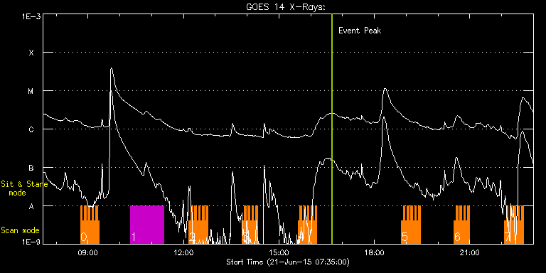 EIS Observation timeline overlay to GOES-Xray curve Code 1" 2" 40" 266" EIS Observations list for this event: STUDY ACRONYM ID DATE OBSERVED DESCRIPTION NOAA# TARGET 0 HH_Flare_raster_v6 | 47124 | 2015/06/21 08:45:40 | AR 12371 obs. | 2371 | Flare TIMELINE ID DATE OBSERVED FITS FILE XCEN (+W/-E) YCEN (+N/-S) DUR ----------------------------------------------------------------------------------------------------------------- 47124 | 2015/06/21 08:45:40.000 | eis_l0_20150621_084540.fits.gz | -203.30 | 191.82 | 3m32s 47124 | 2015/06/21 08:49:15.000 | eis_l0_20150621_084915.fits.gz | -202.76 | 191.82 | 3m31s 47124 | 2015/06/21 08:52:49.000 | eis_l0_20150621_085249.fits.gz | -202.29 | 191.82 | 3m32s 47124 | 2015/06/21 08:56:23.000 | eis_l0_20150621_085623.fits.gz | -201.83 | 191.82 | 3m32s 47124 | 2015/06/21 08:59:58.000 | eis_l0_20150621_085958.fits.gz | -201.21 | 191.74 | 3m31s 47124 | 2015/06/21 09:03:31.000 | eis_l0_20150621_090331.fits.gz | -200.67 | 191.66 | 3m31s 47124 | 2015/06/21 09:07:05.000 | eis_l0_20150621_090705.fits.gz | -200.21 | 191.74 | 3m32s 47124 | 2015/06/21 09:10:40.000 | eis_l0_20150621_091040.fits.gz | -199.67 | 191.74 | 3m31s 47124 | 2015/06/21 09:14:14.000 | eis_l0_20150621_091414.fits.gz | -199.20 | 191.74 | 3m32s 47124 | 2015/06/21 09:17:49.000 | eis_l0_20150621_091749.fits.gz | -198.66 | 191.74 | 3m31s 1 HPW021_VEL_120x512v1 | 47121 | 2015/06/21 10:20:27 | AR 12371 obs. | | Active Region TIMELINE ID DATE OBSERVED FITS FILE XCEN (+W/-E) YCEN (+N/-S) DUR ----------------------------------------------------------------------------------------------------------------- 47121 | 2015/06/21 10:20:27.000 | eis_l0_20150621_102027.fits.gz | -157.46 | 60.66 | 1h1m52s 2 HH_Flare_raster_v6 | 47131 | 2015/06/21 12:10:26 | AR 12371 obs. | 2371 | Flare TIMELINE ID DATE OBSERVED FITS FILE XCEN (+W/-E) YCEN (+N/-S) DUR ----------------------------------------------------------------------------------------------------------------- 47131 | 2015/06/21 12:10:26.000 | eis_l0_20150621_121026.fits.gz | -208.54 | 146.35 | 3m32s 47131 | 2015/06/21 12:14:01.000 | eis_l0_20150621_121401.fits.gz | -208.07 | 146.35 | 3m31s 47131 | 2015/06/21 12:17:35.000 | eis_l0_20150621_121735.fits.gz | -207.46 | 146.43 | 3m31s 47131 | 2015/06/21 12:21:09.000 | eis_l0_20150621_122109.fits.gz | -206.84 | 146.28 | 3m31s 47131 | 2015/06/21 12:24:43.000 | eis_l0_20150621_122443.fits.gz | -206.45 | 146.28 | 3m31s 47131 | 2015/06/21 12:28:16.000 | eis_l0_20150621_122816.fits.gz | -205.91 | 146.28 | 3m32s 47131 | 2015/06/21 12:31:51.000 | eis_l0_20150621_123151.fits.gz | -205.37 | 146.28 | 3m31s 47131 | 2015/06/21 12:35:25.000 | eis_l0_20150621_123525.fits.gz | -204.83 | 146.35 | 3m32s 47131 | 2015/06/21 12:39:00.000 | eis_l0_20150621_123900.fits.gz | -204.29 | 146.28 | 3m32s 47131 | 2015/06/21 12:42:34.000 | eis_l0_20150621_124234.fits.gz | -203.75 | 146.43 | 3m31s 3 HH_Flare_raster_v6 | 47147 | 2015/06/21 13:50:40 | AR 12371 obs. | | Flare TIMELINE ID DATE OBSERVED FITS FILE XCEN (+W/-E) YCEN (+N/-S) DUR ----------------------------------------------------------------------------------------------------------------- 47147 | 2015/06/21 13:50:40.000 | eis_l0_20150621_135040.fits.gz | -192.38 | 155.20 | 3m32s 47147 | 2015/06/21 13:54:14.000 | eis_l0_20150621_135414.fits.gz | -191.84 | 155.20 | 3m32s 47147 | 2015/06/21 13:57:49.000 | eis_l0_20150621_135749.fits.gz | -191.30 | 155.04 | 3m32s 47147 | 2015/06/21 14:01:23.000 | eis_l0_20150621_140123.fits.gz | -190.76 | 155.20 | 3m32s 47147 | 2015/06/21 14:04:58.000 | eis_l0_20150621_140458.fits.gz | -190.29 | 155.20 | 3m31s 47147 | 2015/06/21 14:08:32.000 | eis_l0_20150621_140832.fits.gz | -189.83 | 155.20 | 3m31s 47147 | 2015/06/21 14:12:06.000 | eis_l0_20150621_141206.fits.gz | -189.21 | 155.12 | 3m32s 47147 | 2015/06/21 14:15:41.000 | eis_l0_20150621_141541.fits.gz | -188.75 | 155.12 | 3m32s 4 HH_Flare_raster_v6 | 47132 | 2015/06/21 15:35:40 | AR 12371 obs. | | Flare TIMELINE ID DATE OBSERVED FITS FILE XCEN (+W/-E) YCEN (+N/-S) DUR ----------------------------------------------------------------------------------------------------------------- 47132 | 2015/06/21 15:35:40.000 | eis_l0_20150621_153540.fits.gz | -151.82 | 187.04 | 3m31s 47132 | 2015/06/21 15:39:14.000 | eis_l0_20150621_153914.fits.gz | -151.27 | 186.89 | 3m32s 47132 | 2015/06/21 15:42:48.000 | eis_l0_20150621_154248.fits.gz | -150.73 | 186.97 | 3m31s 47132 | 2015/06/21 15:46:22.000 | eis_l0_20150621_154622.fits.gz | -150.19 | 186.97 | 3m32s 47132 | 2015/06/21 15:49:56.000 | eis_l0_20150621_154956.fits.gz | -149.65 | 186.89 | 3m32s 47132 | 2015/06/21 15:53:31.000 | eis_l0_20150621_155331.fits.gz | -149.19 | 186.81 | 3m31s 47132 | 2015/06/21 15:57:05.000 | eis_l0_20150621_155705.fits.gz | -148.65 | 186.89 | 3m31s 47132 | 2015/06/21 16:00:39.000 | eis_l0_20150621_160039.fits.gz | -148.03 | 186.89 | 3m32s 47132 | 2015/06/21 16:04:14.000 | eis_l0_20150621_160414.fits.gz | -147.57 | 186.89 | 3m31s 47132 | 2015/06/21 16:07:48.000 | eis_l0_20150621_160748.fits.gz | -147.03 | 186.81 | 3m32s 5 HH_Flare_raster_v6 | 47130 | 2015/06/21 18:50:40 | AR 12371 obs. | | Flare TIMELINE ID DATE OBSERVED FITS FILE XCEN (+W/-E) YCEN (+N/-S) DUR ----------------------------------------------------------------------------------------------------------------- 47130 | 2015/06/21 18:50:40.000 | eis_l0_20150621_185040.fits.gz | -113.21 | 190.66 | 3m31s 47130 | 2015/06/21 18:54:14.000 | eis_l0_20150621_185414.fits.gz | -112.67 | 190.74 | 3m31s 47130 | 2015/06/21 18:57:48.000 | eis_l0_20150621_185748.fits.gz | -112.13 | 190.50 | 3m32s 47130 | 2015/06/21 19:01:22.000 | eis_l0_20150621_190122.fits.gz | -111.59 | 190.58 | 3m32s 47130 | 2015/06/21 19:04:57.000 | eis_l0_20150621_190457.fits.gz | -111.12 | 190.50 | 3m32s 47130 | 2015/06/21 19:08:32.000 | eis_l0_20150621_190832.fits.gz | -110.50 | 190.50 | 3m31s 47130 | 2015/06/21 19:12:06.000 | eis_l0_20150621_191206.fits.gz | -109.96 | 190.58 | 3m32s 47130 | 2015/06/21 19:15:41.000 | eis_l