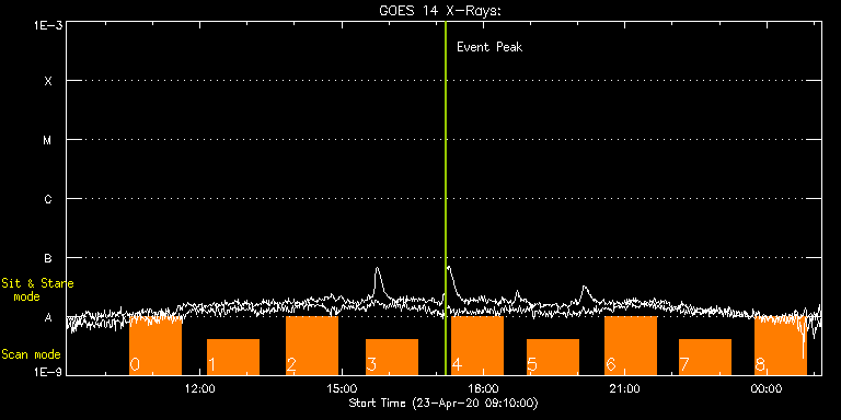 EIS Observation timeline overlay to GOES-Xray curve Code 1" 2" 40" 266" EIS Observations list for this event: STUDY ACRONYM ID DATE OBSERVED DESCRIPTION NOAA# TARGET 0 DHB_007 | 71780 | 2020/04/23 10:30:42 | EIS/IRIS Full-Disk Spectral Scans 8/15 | | Quiet Sun TIMELINE ID DATE OBSERVED FITS FILE XCEN (+W/-E) YCEN (+N/-S) DUR ----------------------------------------------------------------------------------------------------------------- 71780 | 2020/04/23 10:30:42.000 | eis_l0_20200423_103042.fits.gz | -21.84 | -294.35 | 1h5m22s 1 DHB_007 | 71769 | 2020/04/23 12:09:12 | EIS/IRIS Full-Disk Spectral Scans 9/15 | | Quiet Sun TIMELINE ID DATE OBSERVED FITS FILE XCEN (+W/-E) YCEN (+N/-S) DUR ----------------------------------------------------------------------------------------------------------------- 71769 | 2020/04/23 12:09:12.000 | eis_l0_20200423_120912.fits.gz | -21.77 | -763.68 | 1h5m26s 2 DHB_007 | 71781 | 2020/04/23 13:50:12 | EIS/IRIS Full-Disk Spectral Scans 9/15 | | Quiet Sun TIMELINE ID DATE OBSERVED FITS FILE XCEN (+W/-E) YCEN (+N/-S) DUR ----------------------------------------------------------------------------------------------------------------- 71781 | 2020/04/23 13:50:12.000 | eis_l0_20200423_135012.fits.gz | -21.77 | -1235.45 | 1h5m21s 3 DHB_007 | 71771 | 2020/04/23 15:31:12 | EIS/IRIS Full-Disk Spectral Scans 10/1 | | Quiet Sun TIMELINE ID DATE OBSERVED FITS FILE XCEN (+W/-E) YCEN (+N/-S) DUR ----------------------------------------------------------------------------------------------------------------- 71771 | 2020/04/23 15:31:12.000 | eis_l0_20200423_153112.fits.gz | -432.80 | 919.23 | 1h5m27s 4 DHB_007 | 71782 | 2020/04/23 17:20:12 | EIS/IRIS Full-Disk Spectral Scans 10/1 | | Quiet Sun TIMELINE ID DATE OBSERVED FITS FILE XCEN (+W/-E) YCEN (+N/-S) DUR ----------------------------------------------------------------------------------------------------------------- 71782 | 2020/04/23 17:20:12.000 | eis_l0_20200423_172012.fits.gz | -412.16 | 560.60 | 1h5m21s 5 DHB_007 | 71772 | 2020/04/23 18:55:42 | EIS/IRIS Full-Disk Spectral Scans 11/1 | 2760 | Quiet Sun TIMELINE ID DATE OBSERVED FITS FILE XCEN (+W/-E) YCEN (+N/-S) DUR ----------------------------------------------------------------------------------------------------------------- 71772 | 2020/04/23 18:55:42.000 | eis_l0_20200423_185542.fits.gz | -469.02 | 185.42 | 1h5m26s 6 DHB_007 | 71783 | 2020/04/23 20:35:12 | EIS/IRIS Full-Disk Spectral Scans 11/1 | 2760 | Quiet Sun TIMELINE ID DATE OBSERVED FITS FILE XCEN (+W/-E) YCEN (+N/-S) DUR ----------------------------------------------------------------------------------------------------------------- 71783 | 2020/04/23 20:35:12.000 | eis_l0_20200423_203512.fits.gz | -489.73 | -294.58 | 1h5m21s 7 DHB_007 | 71773 | 2020/04/23 22:09:42 | EIS/IRIS Full-Disk Spectral Scans 12/1 | | Quiet Sun TIMELINE ID DATE OBSERVED FITS FILE XCEN (+W/-E) YCEN (+N/-S) DUR ----------------------------------------------------------------------------------------------------------------- 71773 | 2020/04/23 22:09:42.000 | eis_l0_20200423_220942.fits.gz | -432.72 | -669.60 | 1h5m25s 8 DHB_007 | 71784 | 2020/04/23 23:45:12 | EIS/IRIS Full-Disk Spectral Scans 12/1 | | Quiet Sun TIMELINE ID DATE OBSERVED FITS FILE XCEN (+W/-E) YCEN (+N/-S) DUR ----------------------------------------------------------------------------------------------------------------- 71784 | 2020/04/23 23:45:12.000 | eis_l0_20200423_234512.fits.gz | -432.80 | -1141.44 | 1h5m20s : Check study information : Download file : View thumbnails For this event, also check for: