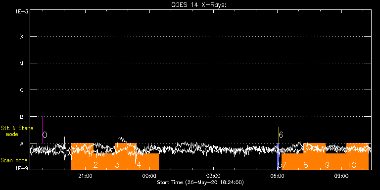 EIS Observation timeline overlay to GOES-Xray curve Code 1" 2" 40" 266" EIS Observations list for this event: STUDY ACRONYM ID DATE OBSERVED DESCRIPTION NOAA# TARGET 0 regcal070 | 72270 | 2020/05/26 18:59:12 | Flat field with overscan pixels (50*8) | | Engineering TIMELINE ID DATE OBSERVED FITS FILE XCEN (+W/-E) YCEN (+N/-S) DUR ----------------------------------------------------------------------------------------------------------------- 72270 | 2020/05/26 18:59:12.000 | eis_l0_20200526_185912.fits.gz | 530.99 | 689.69 | 2s 1 HPW021VEL260x512v2 | 72242 | 2020/05/26 20:21:21 | AR Study | | Active Region TIMELINE ID DATE OBSERVED FITS FILE XCEN (+W/-E) YCEN (+N/-S) DUR ----------------------------------------------------------------------------------------------------------------- 72242 | 2020/05/26 20:21:21.000 | eis_l0_20200526_202121.fits.gz | 524.13 | 488.53 | 1h0m44s 2 HPW021VEL260x512v2 | 72243 | 2020/05/26 21:22:12 | AR Study | | Active Region TIMELINE ID DATE OBSERVED FITS FILE XCEN (+W/-E) YCEN (+N/-S) DUR ----------------------------------------------------------------------------------------------------------------- 72243 | 2020/05/26 21:22:12.000 | eis_l0_20200526_212212.fits.gz | 530.08 | 488.30 | 1h0m45s 3 HPW021VEL260x512v2 | 72244 | 2020/05/26 22:23:04 | AR Study | | Active Region TIMELINE ID DATE OBSERVED FITS FILE XCEN (+W/-E) YCEN (+N/-S) DUR ----------------------------------------------------------------------------------------------------------------- 72244 | 2020/05/26 22:23:04.000 | eis_l0_20200526_222304.fits.gz | 536.03 | 488.07 | 1h0m45s 4 Atlas_60 | 72245 | 2020/05/26 23:23:56 | AR Study | | Quiet Sun TIMELINE ID DATE OBSERVED FITS FILE XCEN (+W/-E) YCEN (+N/-S) DUR ----------------------------------------------------------------------------------------------------------------- 72245 | 2020/05/26 23:23:56.000 | eis_l0_20200526_232356.fits.gz | 542.15 | 487.99 | 1h1m39s 5 PRY_slot_contextLITE | 72228 | 2020/05/27 06:00:20 | Point Monitoring | | Active Region TIMELINE ID DATE OBSERVED FITS FILE XCEN (+W/-E) YCEN (+N/-S) DUR ----------------------------------------------------------------------------------------------------------------- 72228 | 2020/05/27 06:00:20.000 | eis_l0_20200527_060020.fits.gz | -15.21 | -0.35 | 2m56s 6 XRT_synop_AIA | 72229 | 2020/05/27 06:03:34 | Point Monitoring | | Quiet Sun TIMELINE ID DATE OBSERVED FITS FILE XCEN (+W/-E) YCEN (+N/-S) DUR ----------------------------------------------------------------------------------------------------------------- 72229 | 2020/05/27 06:03:34.000 | eis_l0_20200527_060334.fits.gz | -132.49 | -0.35 | 10s 7 HPW021VEL260x512v2 | 72246 | 2020/05/27 06:12:20 | AR Study | | Active Region TIMELINE ID DATE OBSERVED FITS FILE XCEN (+W/-E) YCEN (+N/-S) DUR ----------------------------------------------------------------------------------------------------------------- 72246 | 2020/05/27 06:12:20.000 | eis_l0_20200527_061220.fits.gz | 579.73 | 486.76 | 1h0m45s 8 HPW021VEL260x512v2 | 72247 | 2020/05/27 07:13:12 | AR Study | | Active Region TIMELINE ID DATE OBSERVED FITS FILE XCEN (+W/-E) YCEN (+N/-S) DUR ----------------------------------------------------------------------------------------------------------------- 72247 | 2020/05/27 07:13:12.000 | eis_l0_20200527_071312.fits.gz | 585.14 | 486.52 | 1h0m45s 9 HPW021VEL260x512v2 | 72248 | 2020/05/27 08:14:04 | AR Study | | Active Region TIMELINE ID DATE OBSERVED FITS FILE XCEN (+W/-E) YCEN (+N/-S) DUR ----------------------------------------------------------------------------------------------------------------- 72248 | 2020/05/27 08:14:04.000 | eis_l0_20200527_081404.fits.gz | 590.55 | 486.29 | 1h0m45s 10 HPW021VEL260x512v2 | 72249 | 2020/05/27 09:14:56 | AR Study | | Active Region TIMELINE ID DATE OBSERVED FITS FILE XCEN (+W/-E) YCEN (+N/-S) DUR ----------------------------------------------------------------------------------------------------------------- 72249 | 2020/05/27 09:14:56.000 | eis_l0_20200527_091456.fits.gz | 595.88 | 486.14 | 1h0m45s : Check study information : Download file : View thumbnails For this event, also check for: