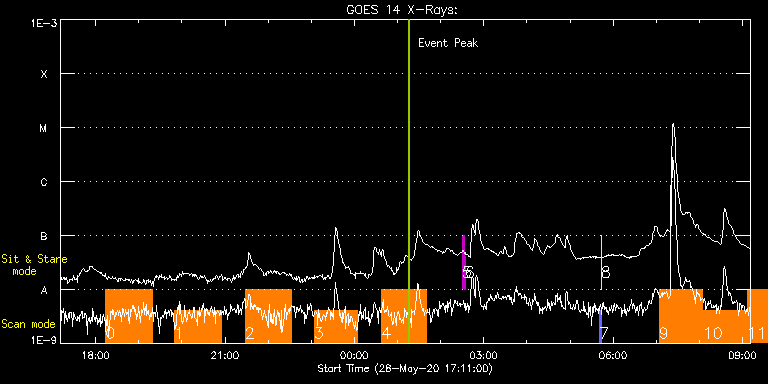 EIS Observation timeline overlay to GOES-Xray curve Code 1" 2" 40" 266" EIS Observations list for this event: STUDY ACRONYM ID DATE OBSERVED DESCRIPTION NOAA# TARGET 0 GDZ_PLUME1_2_300_50s | 72221 | 2020/05/28 18:13:42 | Pointing: N limb | | Coronal Hole TIMELINE ID DATE OBSERVED FITS FILE XCEN (+W/-E) YCEN (+N/-S) DUR ----------------------------------------------------------------------------------------------------------------- 72221 | 2020/05/28 18:13:42.000 | eis_l0_20200528_181342.fits.gz | -50.78 | 907.56 | 1h4m52s 1 GDZ_PLUME1_2_300_50s | 72222 | 2020/05/28 19:50:12 | Pointing: S limb | | Coronal Hole TIMELINE ID DATE OBSERVED FITS FILE XCEN (+W/-E) YCEN (+N/-S) DUR ----------------------------------------------------------------------------------------------------------------- 72222 | 2020/05/28 19:50:12.000 | eis_l0_20200528_195012.fits.gz | -9870.20 | -9971.20 | 1h4m51s 2 GDZ_PLUME1_2_300_50s | 72223 | 2020/05/28 21:27:42 | Pointing: W limb | | Coronal Hole TIMELINE ID DATE OBSERVED FITS FILE XCEN (+W/-E) YCEN (+N/-S) DUR ----------------------------------------------------------------------------------------------------------------- 72223 | 2020/05/28 21:27:42.000 | eis_l0_20200528_212742.fits.gz | 789.42 | 17.56 | 1h4m52s 3 HPW021VEL260x512v2 | 72258 | 2020/05/28 23:03:42 | AR stdudy | | Active Region TIMELINE ID DATE OBSERVED FITS FILE XCEN (+W/-E) YCEN (+N/-S) DUR ----------------------------------------------------------------------------------------------------------------- 72258 | 2020/05/28 23:03:42.000 | eis_l0_20200528_230342.fits.gz | 754.18 | 477.41 | 1h0m45s 4 Atlas_60 | 72259 | 2020/05/29 00:38:12 | AR study | | Quiet Sun TIMELINE ID DATE OBSERVED FITS FILE XCEN (+W/-E) YCEN (+N/-S) DUR ----------------------------------------------------------------------------------------------------------------- 72259 | 2020/05/29 00:38:12.000 | eis_l0_20200529_003812.fits.gz | 754.75 | 477.34 | 1h1m40s 5 regcal074 | 72271 | 2020/05/29 02:30:10 | Dark exposures including overscan pixe | | Engineering TIMELINE ID DATE OBSERVED FITS FILE XCEN (+W/-E) YCEN (+N/-S) DUR ----------------------------------------------------------------------------------------------------------------- 72271 | 2020/05/29 02:30:10.000 | eis_l0_20200529_023010.fits.gz | 14.51 | 205.58 | 3m22s 6 regcal076 | 72272 | 2020/05/29 02:33:59 | Flatfield, 1 exposure, led 100ms, ccd | | Engineering TIMELINE ID DATE OBSERVED FITS FILE XCEN (+W/-E) YCEN (+N/-S) DUR ----------------------------------------------------------------------------------------------------------------- 72272 | 2020/05/29 02:33:59.000 | eis_l0_20200529_023359.fits.gz | 14.59 | -50.42 | 2s 7 PRY_slot_contextLITE | 72232 | 2020/05/29 05:40:19 | Point Monitoring | | Active Region TIMELINE ID DATE OBSERVED FITS FILE XCEN (+W/-E) YCEN (+N/-S) DUR ----------------------------------------------------------------------------------------------------------------- 72232 | 2020/05/29 05:40:19.000 | eis_l0_20200529_054019.fits.gz | -15.21 | -0.50 | 2m56s 8 XRT_synop_AIA | 72233 | 2020/05/29 05:43:33 | Point Monitoring | | Quiet Sun TIMELINE ID DATE OBSERVED FITS FILE XCEN (+W/-E) YCEN (+N/-S) DUR ----------------------------------------------------------------------------------------------------------------- 72233 | 2020/05/29 05:43:33.000 | eis_l0_20200529_054333.fits.gz | -132.49 | -0.50 | 11s 9 HPW021VEL260x512v1 | 72260 | 2020/05/29 07:03:53 | AR Study | | Active Region TIMELINE ID DATE OBSERVED FITS FILE XCEN (+W/-E) YCEN (+N/-S) DUR ----------------------------------------------------------------------------------------------------------------- 72260 | 2020/05/29 07:03:53.000 | eis_l0_20200529_070353.fits.gz | 819.07 | 511.49 | 1h0m44s 10 HPW021VEL260x512v1 | 72261 | 2020/05/29 08:05:10 | AR Study | | Active Region TIMELINE ID DATE OBSERVED FITS FILE XCEN (+W/-E) YCEN (+N/-S) DUR ----------------------------------------------------------------------------------------------------------------- 72261 | 2020/05/29 08:05:10.000 | eis_l0_20200529_080510.fits.gz | 798.01 | 476.34 | 1h0m45s 11 HPW021VEL260x512v1 | 72262 | 2020/05/29 09:06:27 | AR Study | | Active Region TIMELINE ID DATE OBSERVED FITS FILE XCEN (+W/-E) YCEN (+N/-S) DUR ----------------------------------------------------------------------------------------------------------------- 72262 | 2020/05/29 09:06:27.000 | eis_l0_20200529_090627.fits.gz | 797.93 | 476.26 | 1h0m45s : Check study information : Download file : View thumbnails For this event, also check for: