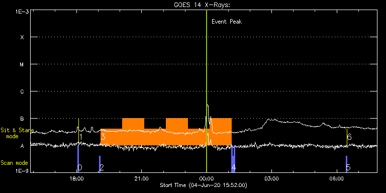 EIS Observation timeline overlay to GOES-Xray curve Code 1" 2" 40" 266" EIS Observations list for this event: STUDY ACRONYM ID DATE OBSERVED DESCRIPTION NOAA# TARGET 0 PRY_slot_contextLITE | 72336 | 2020/06/04 18:02:19 | Change of EIS pointing and alignment w | | Active Region TIMELINE ID DATE OBSERVED FITS FILE XCEN (+W/-E) YCEN (+N/-S) DUR ----------------------------------------------------------------------------------------------------------------- 72336 | 2020/06/04 18:02:19.000 | eis_l0_20200604_180219.fits.gz | -14.98 | -0.50 | 2m56s 1 XRT_synop_AIA | 72337 | 2020/06/04 18:05:34 | Change of EIS pointing and alignment w | | Quiet Sun TIMELINE ID DATE OBSERVED FITS FILE XCEN (+W/-E) YCEN (+N/-S) DUR ----------------------------------------------------------------------------------------------------------------- 72337 | 2020/06/04 18:05:34.000 | eis_l0_20200604_180534.fits.gz | -132.41 | -0.42 | 10s 2 PRY_slot_contextLITE | 72368 | 2020/06/04 19:02:55 | AR context image | | Active Region TIMELINE ID DATE OBSERVED FITS FILE XCEN (+W/-E) YCEN (+N/-S) DUR ----------------------------------------------------------------------------------------------------------------- 72368 | 2020/06/04 19:02:55.000 | eis_l0_20200604_190255.fits.gz | -190.11 | 438.58 | 2m56s 3 Flare_SNS_v2 | 72369 | 2020/06/04 19:06:17 | SNS flare watch | | Flare TIMELINE ID DATE OBSERVED FITS FILE XCEN (+W/-E) YCEN (+N/-S) DUR ----------------------------------------------------------------------------------------------------------------- 72369 | 2020/06/04 19:06:17.000 | eis_l0_20200604_190617.fits.gz | -175.16 | 438.50 | 1h0m18s 72369 | 2020/06/04 20:06:41.000 | eis_l0_20200604_200641.fits.gz | -167.90 | 438.66 | 1h0m19s 72369 | 2020/06/04 21:07:06.000 | eis_l0_20200604_210706.fits.gz | -160.64 | 438.43 | 1h0m19s 72369 | 2020/06/04 22:07:31.000 | eis_l0_20200604_220731.fits.gz | -153.45 | 438.50 | 1h0m20s 72369 | 2020/06/04 23:07:57.000 | eis_l0_20200604_230757.fits.gz | -146.11 | 438.43 | 1h0m18s 72369 | 2020/06/05 00:08:21.000 | eis_l0_20200605_000821.fits.gz | -138.77 | 438.20 | 1h0m20s 4 PRY_slot_contextLITE | 72370 | 2020/06/05 01:08:57 | AR context image | | Active Region TIMELINE ID DATE OBSERVED FITS FILE XCEN (+W/-E) YCEN (+N/-S) DUR ----------------------------------------------------------------------------------------------------------------- 72370 | 2020/06/05 01:08:57.000 | eis_l0_20200605_010857.fits.gz | -145.92 | 438.20 | 2m56s 72370 | 2020/06/05 01:11:57.000 | eis_l0_20200605_011157.fits.gz | -145.62 | 438.12 | 2m56s 72370 | 2020/06/05 01:14:57.000 | eis_l0_20200605_011457.fits.gz | -145.23 | 438.20 | 2m56s 5 PRY_slot_contextLITE | 72338 | 2020/06/05 06:25:12 | Change of EIS pointing and alignment w | | Active Region TIMELINE ID DATE OBSERVED FITS FILE XCEN (+W/-E) YCEN (+N/-S) DUR ----------------------------------------------------------------------------------------------------------------- 72338 | 2020/06/05 06:25:12.000 | eis_l0_20200605_062512.fits.gz | -15.21 | -0.50 | 2m56s 6 XRT_synop_AIA | 72339 | 2020/06/05 06:28:27 | Change of EIS pointing and alignment w | | Quiet Sun TIMELINE ID DATE OBSERVED FITS FILE XCEN (+W/-E) YCEN (+N/-S) DUR ----------------------------------------------------------------------------------------------------------------- 72339 | 2020/06/05 06:28:27.000 | eis_l0_20200605_062827.fits.gz | -132.49 | -0.50 | 10s : Check study information : Download file : View thumbnails For this event, also check for: