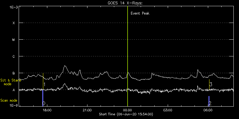 EIS Observation timeline overlay to GOES-Xray curve Code 1" 2" 40" 266" EIS Observations list for this event: STUDY ACRONYM ID DATE OBSERVED DESCRIPTION NOAA# TARGET 0 PRY_slot_contextLITE | 72344 | 2020/06/06 17:39:19 | Change of EIS pointing and alignment w | | Active Region TIMELINE ID DATE OBSERVED FITS FILE XCEN (+W/-E) YCEN (+N/-S) DUR ----------------------------------------------------------------------------------------------------------------- 72344 | 2020/06/06 17:39:19.000 | eis_l0_20200606_173919.fits.gz | -15.37 | -0.35 | 2m56s 1 XRT_synop_AIA | 72345 | 2020/06/06 17:42:34 | Change of EIS pointing and alignment w | | Quiet Sun TIMELINE ID DATE OBSERVED FITS FILE XCEN (+W/-E) YCEN (+N/-S) DUR ----------------------------------------------------------------------------------------------------------------- 72345 | 2020/06/06 17:42:34.000 | eis_l0_20200606_174234.fits.gz | -132.49 | -0.50 | 10s 2 PRY_slot_contextLITE | 72346 | 2020/06/07 06:02:26 | Change of EIS pointing and alignment w | | Active Region TIMELINE ID DATE OBSERVED FITS FILE XCEN (+W/-E) YCEN (+N/-S) DUR ----------------------------------------------------------------------------------------------------------------- 72346 | 2020/06/07 06:02:26.000 | eis_l0_20200607_060226.fits.gz | -15.21 | -0.42 | 2m56s 3 XRT_synop_AIA | 72347 | 2020/06/07 06:05:40 | Change of EIS pointing and alignment w | | Quiet Sun TIMELINE ID DATE OBSERVED FITS FILE XCEN (+W/-E) YCEN (+N/-S) DUR ----------------------------------------------------------------------------------------------------------------- 72347 | 2020/06/07 06:05:40.000 | eis_l0_20200607_060540.fits.gz | -132.49 | -0.58 | 10s : Check study information : Download file : View thumbnails For this event, also check for: