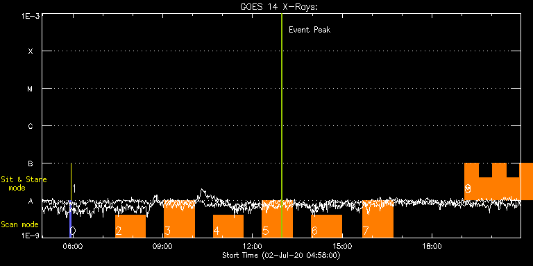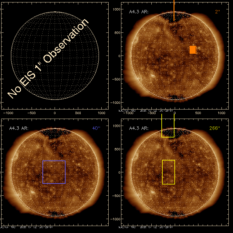 EIS Observation timeline overlay to GOES-Xray curve Code 1" 2" 40" 266" EIS Observations list for this event: STUDY ACRONYM ID DATE OBSERVED DESCRIPTION NOAA# TARGET 0 PRY_slot_contextLITE | 72893 | 2020/07/02 05:53:26 | Pointing Monitoring | | Active Region TIMELINE ID DATE OBSERVED FITS FILE XCEN (+W/-E) YCEN (+N/-S) DUR ----------------------------------------------------------------------------------------------------------------- 72893 | 2020/07/02 05:53:26.000 | eis_l0_20200702_055326.fits.gz | -15.29 | -0.35 | 2m56s 1 XRT_synop_AIA | 72894 | 2020/07/02 05:56:41 | Pointing Monitoring | | Quiet Sun TIMELINE ID DATE OBSERVED FITS FILE XCEN (+W/-E) YCEN (+N/-S) DUR ----------------------------------------------------------------------------------------------------------------- 72894 | 2020/07/02 05:56:41.000 | eis_l0_20200702_055641.fits.gz | -132.57 | -0.50 | 10s 2 dhb_atlas_120m_30" | 72872 | 2020/07/02 07:24:49 | Quiet Sun Network and Coronal Bright P | | Quiet Sun TIMELINE ID DATE OBSERVED FITS FILE XCEN (+W/-E) YCEN (+N/-S) DUR ----------------------------------------------------------------------------------------------------------------- 72872 | 2020/07/02 07:24:49.000 | eis_l0_20200702_072449.fits.gz | 355.34 | 125.88 | 1h0m50s 3 dhb_atlas_120m_30" | 72873 | 2020/07/02 09:03:13 | Quiet Sun Network and Coronal Bright P | | Quiet Sun TIMELINE ID DATE OBSERVED FITS FILE XCEN (+W/-E) YCEN (+N/-S) DUR ----------------------------------------------------------------------------------------------------------------- 72873 | 2020/07/02 09:03:13.000 | eis_l0_20200702_090313.fits.gz | 369.01 | 126.11 | 1h0m49s 4 dhb_atlas_120m_30" | 72874 | 2020/07/02 10:41:13 | Quiet Sun Network and Coronal Bright P | | Quiet Sun TIMELINE ID DATE OBSERVED FITS FILE XCEN (+W/-E) YCEN (+N/-S) DUR ----------------------------------------------------------------------------------------------------------------- 72874 | 2020/07/02 10:41:13.000 | eis_l0_20200702_104113.fits.gz | 382.45 | 126.50 | 1h0m48s 5 dhb_atlas_120m_30" | 72875 | 2020/07/02 12:19:43 | Quiet Sun Network and Coronal Bright P | | Quiet Sun TIMELINE ID DATE OBSERVED FITS FILE XCEN (+W/-E) YCEN (+N/-S) DUR ----------------------------------------------------------------------------------------------------------------- 72875 | 2020/07/02 12:19:43.000 | eis_l0_20200702_121943.fits.gz | 395.81 | 126.50 | 1h0m48s 6 dhb_atlas_120m_30" | 72876 | 2020/07/02 13:58:12 | Quiet Sun Network and Coronal Bright P | | Quiet Sun TIMELINE ID DATE OBSERVED FITS FILE XCEN (+W/-E) YCEN (+N/-S) DUR ----------------------------------------------------------------------------------------------------------------- 72876 | 2020/07/02 13:58:12.000 | eis_l0_20200702_135812.fits.gz | 409.18 | 126.81 | 1h0m49s 7 dhb_atlas_120m_30" | 72877 | 2020/07/02 15:41:12 | Quiet Sun Network and Coronal Bright P | | Quiet Sun TIMELINE ID DATE OBSERVED FITS FILE XCEN (+W/-E) YCEN (+N/-S) DUR ----------------------------------------------------------------------------------------------------------------- 72877 | 2020/07/02 15:41:12.000 | eis_l0_20200702_154112.fits.gz | 423.08 | 127.04 | 1h0m49s 8 XRT_synop_AIA | 72911 | 2020/07/02 19:05:33 | Polar CH (North) | | Quiet Sun TIMELINE ID DATE OBSERVED FITS FILE XCEN (+W/-E) YCEN (+N/-S) DUR ----------------------------------------------------------------------------------------------------------------- 72911 | 2020/07/02 19:05:33.000 | eis_l0_20200702_190533.fits.gz | -148.96 | 1008.62 | 10s 9 PCH_SNS_2x512 | 72912 | 2020/07/02 19:05:54 | Polar CH (North) | | Coronal Hole TIMELINE ID DATE OBSERVED FITS FILE XCEN (+W/-E) YCEN (+N/-S) DUR ----------------------------------------------------------------------------------------------------------------- 72912 | 2020/07/02 19:05:54.000 | eis_l0_20200702_190554.fits.gz | -16.95 | 1008.77 | 27m21s 72912 | 2020/07/02 19:33:21.000 | eis_l0_20200702_193321.fits.gz | -16.95 | 1008.62 | 27m20s 72912 | 2020/07/02 20:00:46.000 | eis_l0_20200702_200046.fits.gz | -17.03 | 1008.69 | 27m20s 72912 | 2020/07/02 20:28:12.000 | eis_l0_20200702_202812.fits.gz | -17.10 | 1008.77 | 27m20s 72912 | 2020/07/02 20:55:37.000 | eis_l0_20200702_205537.fits.gz | -17.03 | 1008.69 | 27m20s 72912 | 2020/07/02 21:23:03.000 | eis_l0_20200702_212303.fits.gz | -17.03 | 1008.62 | 27m20s 72912 | 2020/07/02 21:50:29.000 | eis_l0_20200702_215029.fits.gz | -17.03 | 1008.69 | 27m20s 72912 | 2020/07/02 22:17:54.000 | eis_l0_20200702_221754.fits.gz | -17.03 | 1008.54 | 27m22s 72912 | 2020/07/02 22:45:21.000 | eis_l0_20200702_224521.fits.gz | -16.95 | 1008.62 | 27m20s 72912 | 2020/07/02 23:12:47.000 | eis_l0_20200702_231247.fits.gz | -17.03 | 1008.62 | 27m20s 72912 | 2020/07/02 23:40:12.000 | eis_l0_20200702_234012.fits.gz | -17.03 | 1008.62 | 27m20s : Check study information : Download file : View thumbnails For this event, also check for: