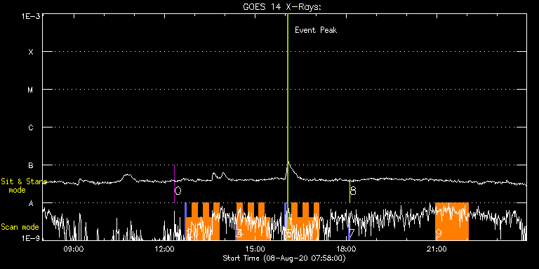EIS Observation timeline overlay to GOES-Xray curve Code 1" 2" 40" 266" EIS Observations list for this event: STUDY ACRONYM ID DATE OBSERVED DESCRIPTION NOAA# TARGET 0 regcal070 | 73468 | 2020/08/08 12:20:12 | Flat field with overscan pixels (50*8) | | Engineering TIMELINE ID DATE OBSERVED FITS FILE XCEN (+W/-E) YCEN (+N/-S) DUR ----------------------------------------------------------------------------------------------------------------- 73468 | 2020/08/08 12:20:12.000 | eis_l0_20200808_122012.fits.gz | -242.57 | 434.08 | 2s 1 PRY_slot_context_v3 | 73462 | 2020/08/08 12:40:27 | Context raster for sunspot study | | Active Region TIMELINE ID DATE OBSERVED FITS FILE XCEN (+W/-E) YCEN (+N/-S) DUR ----------------------------------------------------------------------------------------------------------------- 73462 | 2020/08/08 12:40:27.000 | eis_l0_20200808_124027.fits.gz | -269.67 | 227.92 | 2m56s 2 Cool_loop_response | 73463 | 2020/08/08 12:43:48 | Sunspot loop study | | Active Region TIMELINE ID DATE OBSERVED FITS FILE XCEN (+W/-E) YCEN (+N/-S) DUR ----------------------------------------------------------------------------------------------------------------- 73463 | 2020/08/08 12:43:48.000 | eis_l0_20200808_124348.fits.gz | -249.72 | 242.92 | 10m49s 73463 | 2020/08/08 12:54:39.000 | eis_l0_20200808_125439.fits.gz | -248.25 | 242.77 | 10m49s 73463 | 2020/08/08 13:05:31.000 | eis_l0_20200808_130531.fits.gz | -246.79 | 242.77 | 10m48s 73463 | 2020/08/08 13:16:22.000 | eis_l0_20200808_131622.fits.gz | -245.40 | 242.77 | 10m48s 73463 | 2020/08/08 13:27:13.000 | eis_l0_20200808_132713.fits.gz | -243.93 | 242.54 | 10m49s 73463 | 2020/08/08 13:38:04.000 | eis_l0_20200808_133804.fits.gz | -242.54 | 242.54 | 10m49s 3 PRY_slot_context_v3 | 73464 | 2020/08/08 14:20:19 | Context raster for sunspot study | | Active Region TIMELINE ID DATE OBSERVED FITS FILE XCEN (+W/-E) YCEN (+N/-S) DUR ----------------------------------------------------------------------------------------------------------------- 73464 | 2020/08/08 14:20:19.000 | eis_l0_20200808_142019.fits.gz | -256.30 | 227.46 | 2m57s 4 Cool_loop_response | 73465 | 2020/08/08 14:23:41 | Sunspot loop study | | Active Region TIMELINE ID DATE OBSERVED FITS FILE XCEN (+W/-E) YCEN (+N/-S) DUR ----------------------------------------------------------------------------------------------------------------- 73465 | 2020/08/08 14:23:41.000 | eis_l0_20200808_142341.fits.gz | -236.28 | 242.38 | 10m49s 73465 | 2020/08/08 14:34:32.000 | eis_l0_20200808_143432.fits.gz | -234.89 | 242.23 | 10m49s 73465 | 2020/08/08 14:45:23.000 | eis_l0_20200808_144523.fits.gz | -233.50 | 242.30 | 10m49s 73465 | 2020/08/08 14:56:15.000 | eis_l0_20200808_145615.fits.gz | -232.03 | 242.23 | 10m48s 73465 | 2020/08/08 15:07:06.000 | eis_l0_20200808_150706.fits.gz | -230.56 | 242.15 | 10m49s 73465 | 2020/08/08 15:17:57.000 | eis_l0_20200808_151757.fits.gz | -229.10 | 242.23 | 10m49s 5 PRY_slot_context_v3 | 73466 | 2020/08/08 15:58:20 | Context raster for sunspot study | | Active Region TIMELINE ID DATE OBSERVED FITS FILE XCEN (+W/-E) YCEN (+N/-S) DUR ----------------------------------------------------------------------------------------------------------------- 73466 | 2020/08/08 15:58:20.000 | eis_l0_20200808_155820.fits.gz | -243.17 | 226.99 | 2m56s 6 Cool_loop_response | 73467 | 2020/08/08 16:01:41 | Sunspot loop study | | Active Region TIMELINE ID DATE OBSERVED FITS FILE XCEN (+W/-E) YCEN (+N/-S) DUR ----------------------------------------------------------------------------------------------------------------- 73467 | 2020/08/08 16:01:41.000 | eis_l0_20200808_160141.fits.gz | -223.23 | 241.99 | 10m49s 73467 | 2020/08/08 16:12:33.000 | eis_l0_20200808_161233.fits.gz | -221.68 | 241.92 | 10m49s 73467 | 2020/08/08 16:23:25.000 | eis_l0_20200808_162325.fits.gz | -220.29 | 241.84 | 10m48s 73467 | 2020/08/08 16:34:15.000 | eis_l0_20200808_163415.fits.gz | -218.82 | 241.76 | 10m49s 73467 | 2020/08/08 16:45:07.000 | eis_l0_20200808_164507.fits.gz | -217.35 | 241.99 | 10m48s 73467 | 2020/08/08 16:55:58.000 | eis_l0_20200808_165558.fits.gz | -215.89 | 241.61 | 10m48s 7 PRY_slot_contextLITE | 73459 | 2020/08/08 18:04:19 | Pointing monitoring | | Active Region TIMELINE ID DATE OBSERVED FITS FILE XCEN (+W/-E) YCEN (+N/-S) DUR ----------------------------------------------------------------------------------------------------------------- 73459 | 2020/08/08 18:04:19.000 | eis_l0_20200808_180419.fits.gz | -15.21 | -0.50 | 2m57s 8 XRT_synop_AIA | 73460 | 2020/08/08 18:07:34 | Pointing Monitoring | | Quiet Sun TIMELINE ID DATE OBSERVED FITS FILE XCEN (+W/-E) YCEN (+N/-S) DUR ----------------------------------------------------------------------------------------------------------------- 73460 | 2020/08/08 18:07:34.000 | eis_l0_20200808_180734.fits.gz | -132.49 | -0.42 | 10s 9 DHB_006 | 73470 | 2020/08/08 20:57:19 | Large abundance raster for AR and surr | | Active Region TIMELINE ID DATE OBSERVED FITS FILE XCEN (+W/-E) YCEN (+N/-S) DUR ----------------------------------------------------------------------------------------------------------------- 73470 | 2020/08/08 20:57:19.000 | eis_l0_20200808_205719.fits.gz | -202.76 | 205.84 | 1h5m24s : Check study information : Download file : View thumbnails For this event, also check for: