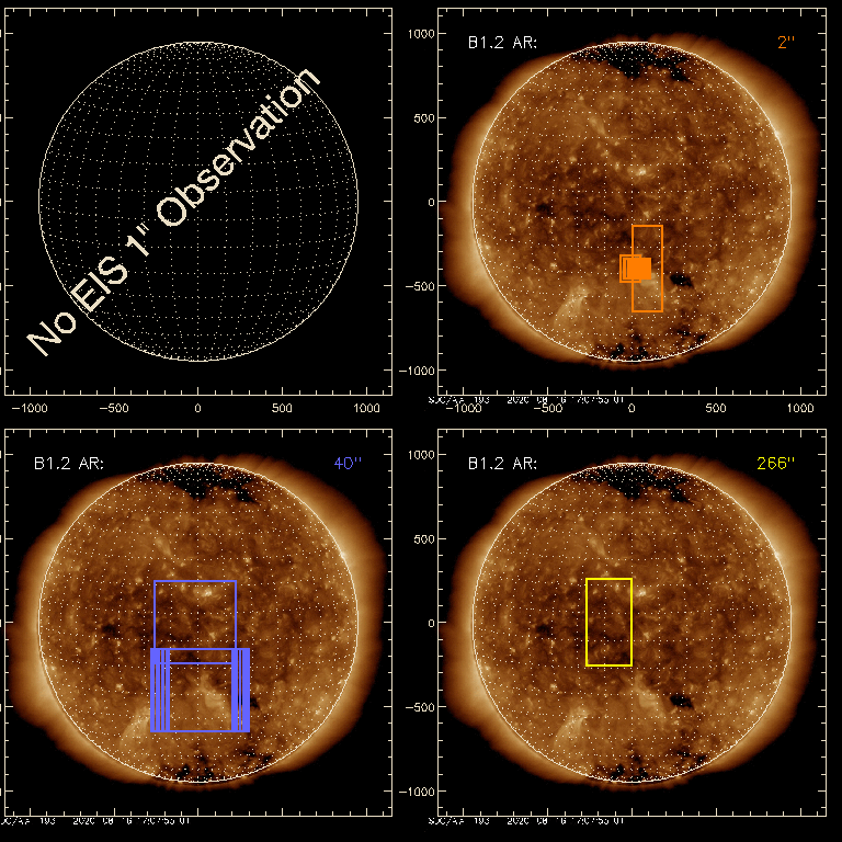 EIS Observation timeline overlay to GOES-Xray curve Code 1" 2" 40" 266" EIS Observations list for this event: STUDY ACRONYM ID DATE OBSERVED DESCRIPTION NOAA# TARGET 0 PRY_slot_contextLITE | 73638 | 2020/08/16 10:46:19 | HOP 396 Collaboration with Chandarayan | | Active Region TIMELINE ID DATE OBSERVED FITS FILE XCEN (+W/-E) YCEN (+N/-S) DUR ----------------------------------------------------------------------------------------------------------------- 73638 | 2020/08/16 10:46:19.000 | eis_l0_20200816_104619.fits.gz | -35.81 | -402.72 | 2m56s 1 cam_flare_hot1_study | 73639 | 2020/08/16 10:49:41 | HOP 396 Collaboration with Chandarayan | | Flare TIMELINE ID DATE OBSERVED FITS FILE XCEN (+W/-E) YCEN (+N/-S) DUR ----------------------------------------------------------------------------------------------------------------- 73639 | 2020/08/16 10:49:41.000 | eis_l0_20200816_104941.fits.gz | -21.61 | -402.80 | 4m50s 73639 | 2020/08/16 10:54:34.000 | eis_l0_20200816_105434.fits.gz | -20.83 | -402.87 | 4m50s 73639 | 2020/08/16 10:59:27.000 | eis_l0_20200816_105927.fits.gz | -20.29 | -402.95 | 4m50s 73639 | 2020/08/16 11:04:20.000 | eis_l0_20200816_110420.fits.gz | -19.44 | -402.87 | 4m50s 73639 | 2020/08/16 11:09:13.000 | eis_l0_20200816_110913.fits.gz | -18.75 | -402.95 | 4m50s 73639 | 2020/08/16 11:14:05.000 | eis_l0_20200816_111405.fits.gz | -18.13 | -402.87 | 4m51s 73639 | 2020/08/16 11:18:58.000 | eis_l0_20200816_111858.fits.gz | -17.43 | -402.87 | 4m50s 73639 | 2020/08/16 11:23:51.000 | eis_l0_20200816_112351.fits.gz | -16.66 | -402.87 | 4m50s 73639 | 2020/08/16 11:28:44.000 | eis_l0_20200816_112844.fits.gz | -15.97 | -402.80 | 4m50s 73639 | 2020/08/16 11:33:37.000 | eis_l0_20200816_113337.fits.gz | -15.19 | -402.95 | 4m50s 73639 | 2020/08/16 11:38:30.000 | eis_l0_20200816_113830.fits.gz | -14.58 | -402.95 | 4m50s 73639 | 2020/08/16 11:43:23.000 | eis_l0_20200816_114323.fits.gz | -13.73 | -402.72 | 4m50s 73639 | 2020/08/16 11:48:16.000 | eis_l0_20200816_114816.fits.gz | -13.11 | -402.87 | 4m50s 73639 | 2020/08/16 11:53:08.000 | eis_l0_20200816_115308.fits.gz | -12.41 | -402.95 | 4m50s 2 PRY_slot_contextLITE | 73640 | 2020/08/16 12:24:49 | NOAA12771 observations | | Active Region TIMELINE ID DATE OBSERVED FITS FILE XCEN (+W/-E) YCEN (+N/-S) DUR ----------------------------------------------------------------------------------------------------------------- 73640 | 2020/08/16 12:24:49.000 | eis_l0_20200816_122449.fits.gz | -21.60 | -402.64 | 2m56s 3 Atlas_60 | 73672 | 2020/08/16 12:28:11 | NOAA12771 observation | | Quiet Sun TIMELINE ID DATE OBSERVED FITS FILE XCEN (+W/-E) YCEN (+N/-S) DUR ----------------------------------------------------------------------------------------------------------------- 73672 | 2020/08/16 12:28:11.000 | eis_l0_20200816_122811.fits.gz | -6.39 | -402.72 | 1h1m39s 4 PRY_slot_contextLITE | 73642 | 2020/08/16 14:02:49 | HOP 396 Collaboration with Chandarayan | | Active Region TIMELINE ID DATE OBSERVED FITS FILE XCEN (+W/-E) YCEN (+N/-S) DUR ----------------------------------------------------------------------------------------------------------------- 73642 | 2020/08/16 14:02:49.000 | eis_l0_20200816_140249.fits.gz | -7.46 | -402.80 | 2m56s 5 cam_flare_hot1_study | 73643 | 2020/08/16 14:06:11 | HOP 396 Collaboration with Chandarayan | | Flare TIMELINE ID DATE OBSERVED FITS FILE XCEN (+W/-E) YCEN (+N/-S) DUR ----------------------------------------------------------------------------------------------------------------- 73643 | 2020/08/16 14:06:11.000 | eis_l0_20200816_140611.fits.gz | 6.74 | -402.87 | 4m49s 73643 | 2020/08/16 14:11:03.000 | eis_l0_20200816_141103.fits.gz | 7.44 | -402.95 | 4m51s 73643 | 2020/08/16 14:15:56.000 | eis_l0_20200816_141556.fits.gz | 8.14 | -403.03 | 4m50s 73643 | 2020/08/16 14:20:49.000 | eis_l0_20200816_142049.fits.gz | 8.83 | -402.80 | 4m50s 73643 | 2020/08/16 14:25:42.000 | eis_l0_20200816_142542.fits.gz | 9.53 | -403.03 | 4m50s 73643 | 2020/08/16 14:30:35.000 | eis_l0_20200816_143035.fits.gz | 10.22 | -402.95 | 4m50s 73643 | 2020/08/16 14:35:28.000 | eis_l0_20200816_143528.fits.gz | 10.92 | -402.87 | 4m50s 73643 | 2020/08/16 14:40:21.000 | eis_l0_20200816_144021.fits.gz | 11.61 | -402.80 | 4m50s 73643 | 2020/08/16 14:45:13.000 | eis_l0_20200816_144513.fits.gz | 12.38 | -402.72 | 4m51s 73643 | 2020/08/16 14:50:06.000 | eis_l0_20200816_145006.fits.gz | 13.08 | -403.03 | 4m50s 73643 | 2020/08/16 14:54:59.000 | eis_l0_20200816_145459.fits.gz | 13.70 | -402.87 | 4m50s 73643 | 2020/08/16 14:59:52.000 | eis_l0_20200816_145952.fits.gz | 14.47 | -402.87 | 4m50s 73643 | 2020/08/16 15:04:45.000 | eis_l0_20200816_150445.fits.gz | 15.16 | -402.95 | 4m50s 73643 | 2020/08/16 15:09:38.000 | eis_l0_20200816_150938.fits.gz | 15.86 | -402.80 | 4m50s 6 PRY_slot_contextLITE | 73644 | 2020/08/16 15:52:19 | HOP 396 Collaboration with Chandarayan | | Active Region TIMELINE ID DATE OBSERVED FITS FILE XCEN (+W/-E) YCEN (+N/-S) DUR ----------------------------------------------------------------------------------------------------------------- 73644 | 2020/08/16 15:52:19.000 | eis_l0_20200816_155219.fits.gz | 8.30 | -402.87 | 2m56s 7 cam_flare_hot1_study | 73645 | 2020/08/16 15:55:40 | HOP 396 Collaboration with Chandarayan | | Flare TIMELINE ID DATE OBSERVED FITS FILE XCEN (+W/-E) YCEN (+N/-S) DUR ----------------------------------------------------------------------------------------------------------------- 73645 | 2020/08/16 15:55:40.000 | eis_l0_20200816_155540.fits.gz | 22.50 | -402.72 | 4m51s 73645 | 2020/08/16 16:00:33.000 | eis_l0_20200816_160033.fits.gz | 23.20 | -402.87 | 4m50s 73645 | 2020/08/16 16:05:26.000 | eis_l0_20200816_160526.fits.gz | 23.82 | -402.87 | 4m50s 73645 | 2020/08/16 16:10:19.000 | eis_l0_20200816_161019.fits.gz | 24.59 | -402.80 | 4m50s 73645 | 2020/08/16 16:15:12.000 | eis_l0_20200816_161512.fits.gz | 25.21 | -402.87 | 4m50s 73645 | 2020/08/16 16:20:05.000 | eis_l0_20200816_162005.fits.gz | 25.90 | -402.80 | 4m50s 73645 | 20