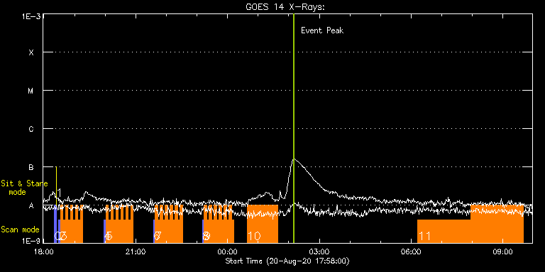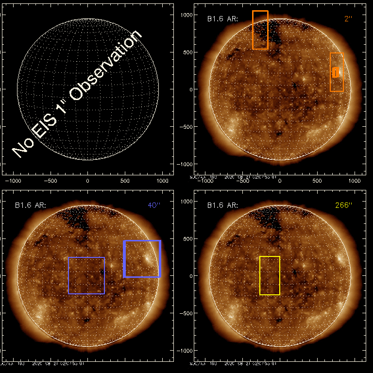 EIS Observation timeline overlay to GOES-Xray curve Code 1" 2" 40" 266" EIS Observations list for this event: STUDY ACRONYM ID DATE OBSERVED DESCRIPTION NOAA# TARGET 0 PRY_slot_contextLITE | 73754 | 2020/08/20 18:20:50 | pointing monitoring | | Active Region TIMELINE ID DATE OBSERVED FITS FILE XCEN (+W/-E) YCEN (+N/-S) DUR ----------------------------------------------------------------------------------------------------------------- 73754 | 2020/08/20 18:20:50.000 | eis_l0_20200820_182050.fits.gz | -15.21 | -0.65 | 2m57s 1 XRT_synop_AIA | 73755 | 2020/08/20 18:24:05 | pointing monitoring | | Quiet Sun TIMELINE ID DATE OBSERVED FITS FILE XCEN (+W/-E) YCEN (+N/-S) DUR ----------------------------------------------------------------------------------------------------------------- 73755 | 2020/08/20 18:24:05.000 | eis_l0_20200820_182405.fits.gz | -132.49 | -0.50 | 10s 2 PRY_slot_contextLITE | 73756 | 2020/08/20 18:28:58 | HOP 396 Collaboration with Chandarayan | 2772 | Active Region TIMELINE ID DATE OBSERVED FITS FILE XCEN (+W/-E) YCEN (+N/-S) DUR ----------------------------------------------------------------------------------------------------------------- 73756 | 2020/08/20 18:28:58.000 | eis_l0_20200820_182858.fits.gz | 719.48 | 221.67 | 2m56s 3 cam_flare_hot1_study | 73757 | 2020/08/20 18:32:19 | HOP 396 Collaboration with Chandarayan | | Flare TIMELINE ID DATE OBSERVED FITS FILE XCEN (+W/-E) YCEN (+N/-S) DUR ----------------------------------------------------------------------------------------------------------------- 73757 | 2020/08/20 18:32:19.000 | eis_l0_20200820_183219.fits.gz | 733.53 | 221.52 | 4m50s 73757 | 2020/08/20 18:37:12.000 | eis_l0_20200820_183712.fits.gz | 733.84 | 221.67 | 4m50s 73757 | 2020/08/20 18:42:05.000 | eis_l0_20200820_184205.fits.gz | 734.30 | 221.67 | 4m50s 73757 | 2020/08/20 18:46:58.000 | eis_l0_20200820_184658.fits.gz | 734.68 | 221.75 | 4m50s 73757 | 2020/08/20 18:51:50.000 | eis_l0_20200820_185150.fits.gz | 735.15 | 221.90 | 4m50s 73757 | 2020/08/20 18:56:43.000 | eis_l0_20200820_185643.fits.gz | 735.53 | 221.90 | 4m51s 73757 | 2020/08/20 19:01:36.000 | eis_l0_20200820_190136.fits.gz | 736.00 | 221.90 | 4m50s 73757 | 2020/08/20 19:06:29.000 | eis_l0_20200820_190629.fits.gz | 736.38 | 221.98 | 4m50s 73757 | 2020/08/20 19:11:21.000 | eis_l0_20200820_191121.fits.gz | 736.77 | 222.13 | 4m51s 4 PRY_slot_contextLITE | 73758 | 2020/08/20 19:57:50 | HOP 396 Collaboration with Chandarayan | 2772 | Active Region TIMELINE ID DATE OBSERVED FITS FILE XCEN (+W/-E) YCEN (+N/-S) DUR ----------------------------------------------------------------------------------------------------------------- 73758 | 2020/08/20 19:57:50.000 | eis_l0_20200820_195750.fits.gz | 726.89 | 222.75 | 2m56s 5 cam_flare_hot1_study | 73759 | 2020/08/20 20:01:12 | HOP 396 Collaboration with Chandarayan | | Flare TIMELINE ID DATE OBSERVED FITS FILE XCEN (+W/-E) YCEN (+N/-S) DUR ----------------------------------------------------------------------------------------------------------------- 73759 | 2020/08/20 20:01:12.000 | eis_l0_20200820_200112.fits.gz | 740.86 | 222.75 | 4m50s 73759 | 2020/08/20 20:06:04.000 | eis_l0_20200820_200604.fits.gz | 741.41 | 222.83 | 4m50s 73759 | 2020/08/20 20:10:57.000 | eis_l0_20200820_201057.fits.gz | 741.64 | 223.06 | 4m50s 73759 | 2020/08/20 20:15:49.000 | eis_l0_20200820_201549.fits.gz | 742.02 | 223.14 | 4m51s 73759 | 2020/08/20 20:20:42.000 | eis_l0_20200820_202042.fits.gz | 742.49 | 223.06 | 4m50s 73759 | 2020/08/20 20:25:35.000 | eis_l0_20200820_202535.fits.gz | 742.95 | 223.22 | 4m50s 73759 | 2020/08/20 20:30:28.000 | eis_l0_20200820_203028.fits.gz | 743.34 | 223.22 | 4m50s 73759 | 2020/08/20 20:35:21.000 | eis_l0_20200820_203521.fits.gz | 743.65 | 223.22 | 4m50s 73759 | 2020/08/20 20:40:14.000 | eis_l0_20200820_204014.fits.gz | 744.11 | 223.37 | 4m50s 73759 | 2020/08/20 20:45:07.000 | eis_l0_20200820_204507.fits.gz | 744.57 | 223.45 | 4m50s 73759 | 2020/08/20 20:50:00.000 | eis_l0_20200820_205000.fits.gz | 744.96 | 223.45 | 4m50s 6 PRY_slot_contextLITE | 73760 | 2020/08/20 21:34:50 | HOP 396 Collaboration with Chandarayan | 2772 | Active Region TIMELINE ID DATE OBSERVED FITS FILE XCEN (+W/-E) YCEN (+N/-S) DUR ----------------------------------------------------------------------------------------------------------------- 73760 | 2020/08/20 21:34:50.000 | eis_l0_20200820_213450.fits.gz | 734.85 | 224.07 | 2m56s 7 cam_flare_hot1_study | 73761 | 2020/08/20 21:38:11 | HOP 396 Collaboration with Chandarayan | | Flare TIMELINE ID DATE OBSERVED FITS FILE XCEN (+W/-E) YCEN (+N/-S) DUR ----------------------------------------------------------------------------------------------------------------- 73761 | 2020/08/20 21:38:11.000 | eis_l0_20200820_213811.fits.gz | 748.90 | 223.99 | 4m50s 73761 | 2020/08/20 21:43:04.000 | eis_l0_20200820_214304.fits.gz | 749.44 | 224.30 | 4m50s 73761 | 2020/08/20 21:47:57.000 | eis_l0_20200820_214757.fits.gz | 749.75 | 224.30 | 4m50s 73761 | 2020/08/20 21:52:50.000 | eis_l0_20200820_215250.fits.gz | 749.98 | 224.45 | 4m50s 73761 | 2020/08/20 21:57:43.000 | eis_l0_20200820_215743.fits.gz | 750.44 | 224.45 | 4m50s 73761 | 2020/08/20 22:02:35.000 | eis_l0_20200820_220235.fits.gz | 750.75 | 224.53 | 4m50s 73761 | 2020/08/20 22:07:28.000 | eis_l0_20200820_220728.fits.gz | 751.22 | 224.76 | 4m51s 73761 | 2020/08/20 22:12:21.000 | eis_l0_20200820_221221.fits.gz | 751.68 | 224.68 | 4m50s 73761 | 2020/08/20 22:17:14.000 | eis_l0_20200820_221714.fits.gz | 752.07 | 224.76 | 4m50s 73761 | 2020/08/20 22:22:07.000 | eis_l0_20200820_222207.fits.gz | 752.45 | 224.99 | 4m50s 73761 | 2020/08/20 22:27:00.000 | eis_l0_20200820_222700.fits.gz | 752.84 | 224.91 | 4m50s 8 PRY_slot_contextLITE | 73762 | 2020/08/20 23:10:50 | HOP 396 Collaboration with Chandarayan | 2772 | Active Region TIMELINE ID DATE OBSERVED FITS FILE XCEN (+W/-E) YCEN (+N/-S) DUR ----------------------------------------------------------------------------------------------------