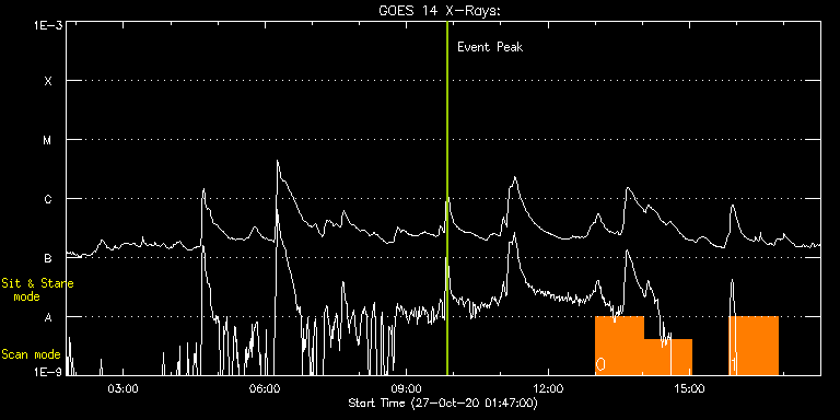 EIS Observation timeline overlay to GOES-Xray curve Code 1" 2" 40" 266" EIS Observations list for this event: STUDY ACRONYM ID DATE OBSERVED DESCRIPTION NOAA# TARGET 0 HPW021VEL260x512v2 | 74858 | 2020/10/27 13:00:40 | AR Observation | | Active Region TIMELINE ID DATE OBSERVED FITS FILE XCEN (+W/-E) YCEN (+N/-S) DUR ----------------------------------------------------------------------------------------------------------------- 74858 | 2020/10/27 13:00:40.000 | eis_l0_20201027_130040.fits.gz | 308.55 | -445.90 | 1h0m45s 74858 | 2020/10/27 14:01:33.000 | eis_l0_20201027_140133.fits.gz | 316.58 | -445.52 | 1h0m44s 1 Atlas_60 | 74860 | 2020/10/27 15:50:40 | AR Observation | | Quiet Sun TIMELINE ID DATE OBSERVED FITS FILE XCEN (+W/-E) YCEN (+N/-S) DUR ----------------------------------------------------------------------------------------------------------------- 74860 | 2020/10/27 15:50:40.000 | eis_l0_20201027_155040.fits.gz | 331.20 | -444.82 | 1h1m40s : Check study information : Download file : View thumbnails For this event, also check for: