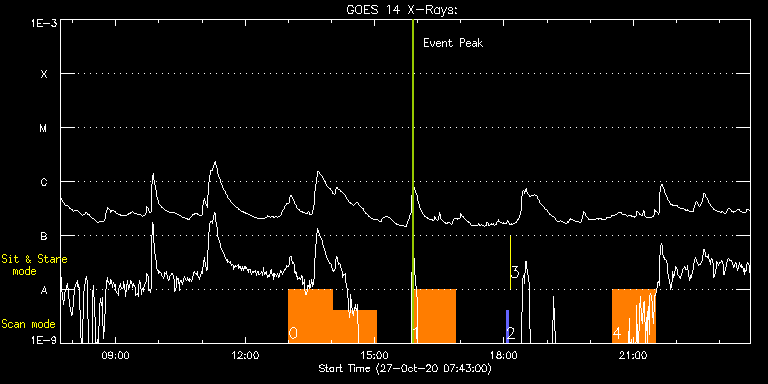 EIS Observation timeline overlay to GOES-Xray curve Code 1" 2" 40" 266" EIS Observations list for this event: STUDY ACRONYM ID DATE OBSERVED DESCRIPTION NOAA# TARGET 0 HPW021VEL260x512v2 | 74858 | 2020/10/27 13:00:40 | AR Observation | | Active Region TIMELINE ID DATE OBSERVED FITS FILE XCEN (+W/-E) YCEN (+N/-S) DUR ----------------------------------------------------------------------------------------------------------------- 74858 | 2020/10/27 13:00:40.000 | eis_l0_20201027_130040.fits.gz | 308.55 | -445.90 | 1h0m45s 74858 | 2020/10/27 14:01:33.000 | eis_l0_20201027_140133.fits.gz | 316.58 | -445.52 | 1h0m44s 1 Atlas_60 | 74860 | 2020/10/27 15:50:40 | AR Observation | | Quiet Sun TIMELINE ID DATE OBSERVED FITS FILE XCEN (+W/-E) YCEN (+N/-S) DUR ----------------------------------------------------------------------------------------------------------------- 74860 | 2020/10/27 15:50:40.000 | eis_l0_20201027_155040.fits.gz | 331.20 | -444.82 | 1h1m40s 2 PRY_slot_contextLITE | 74848 | 2020/10/27 18:03:20 | Pointing Monitoring | | Active Region TIMELINE ID DATE OBSERVED FITS FILE XCEN (+W/-E) YCEN (+N/-S) DUR ----------------------------------------------------------------------------------------------------------------- 74848 | 2020/10/27 18:03:20.000 | eis_l0_20201027_180320.fits.gz | -14.12 | -1.50 | 2m57s 3 XRT_synop_AIA | 74850 | 2020/10/27 18:08:26 | Pointing Monitoring | | Quiet Sun TIMELINE ID DATE OBSERVED FITS FILE XCEN (+W/-E) YCEN (+N/-S) DUR ----------------------------------------------------------------------------------------------------------------- 74850 | 2020/10/27 18:08:26.000 | eis_l0_20201027_180826.fits.gz | -131.57 | -1.42 | 11s 4 HPW021VEL260x512v2 | 74867 | 2020/10/27 20:30:19 | AR Observation | 2778 | Active Region TIMELINE ID DATE OBSERVED FITS FILE XCEN (+W/-E) YCEN (+N/-S) DUR ----------------------------------------------------------------------------------------------------------------- 74867 | 2020/10/27 20:30:19.000 | eis_l0_20201027_203019.fits.gz | 367.09 | -443.20 | 1h0m45s : Check study information : Download file : View thumbnails For this event, also check for: